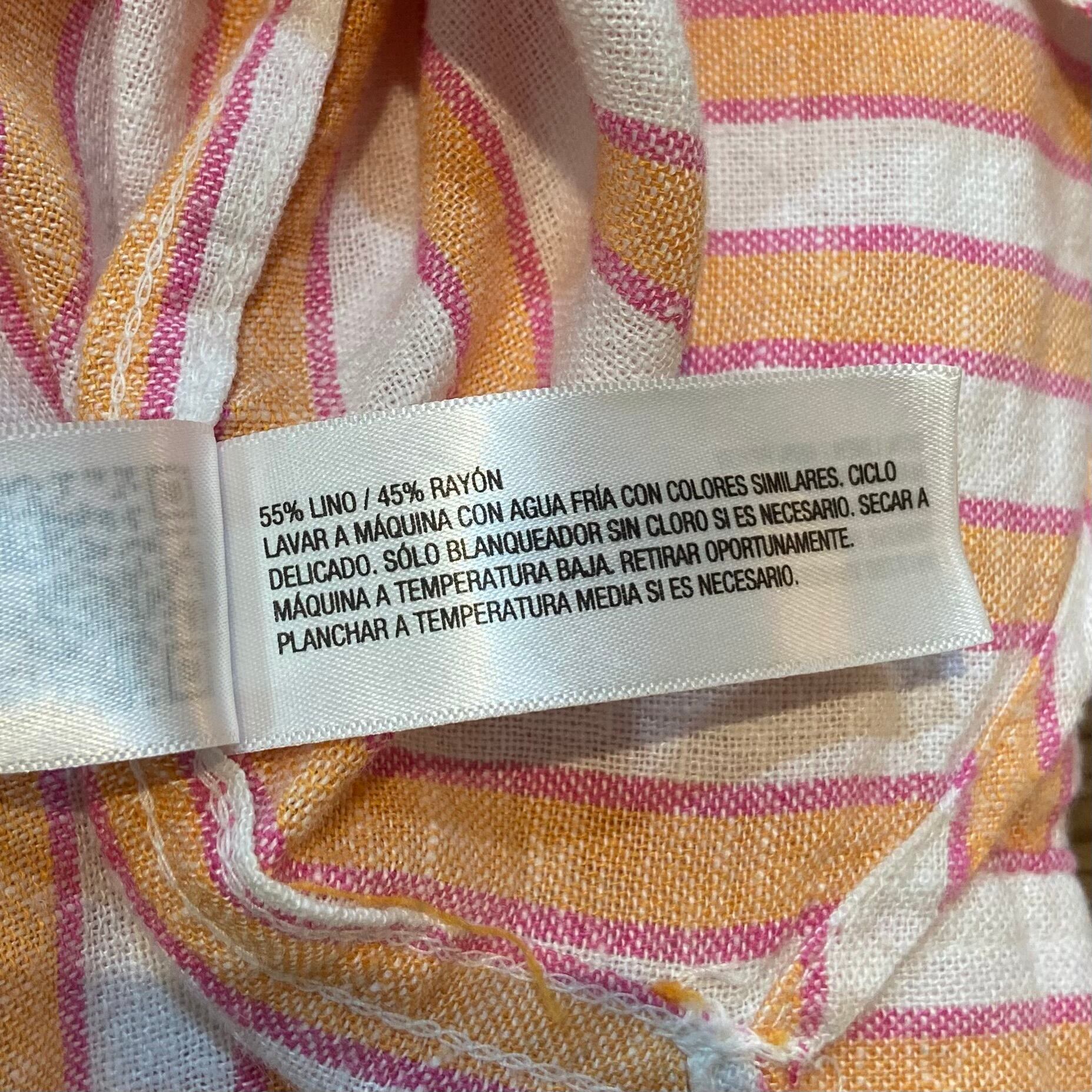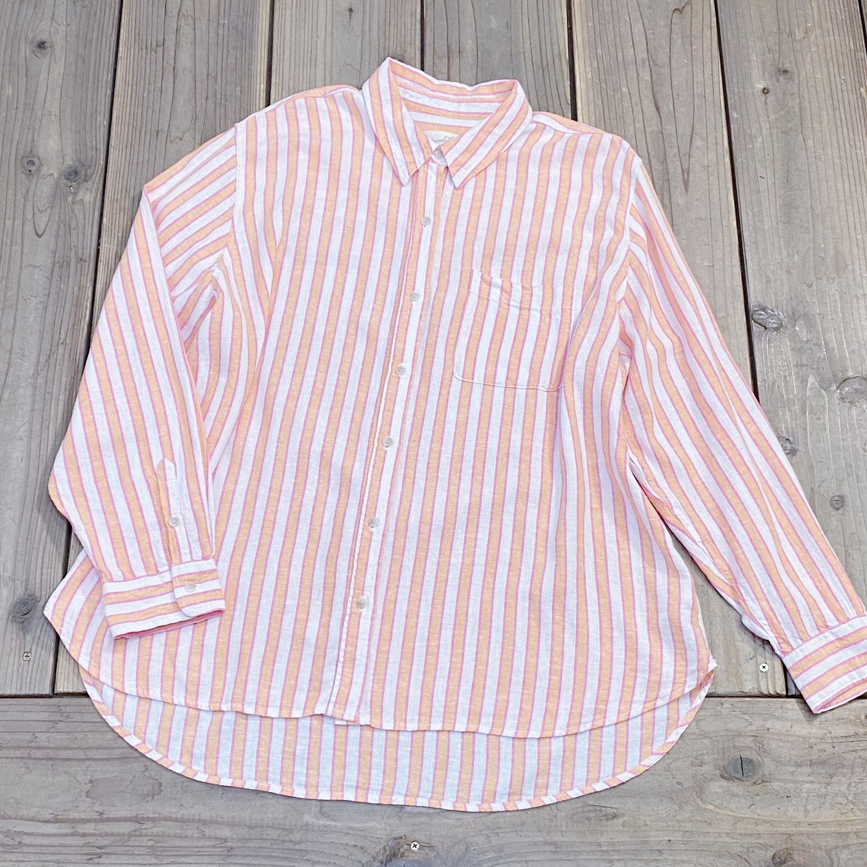 Orange and pink stripe linen long sleeves shirt