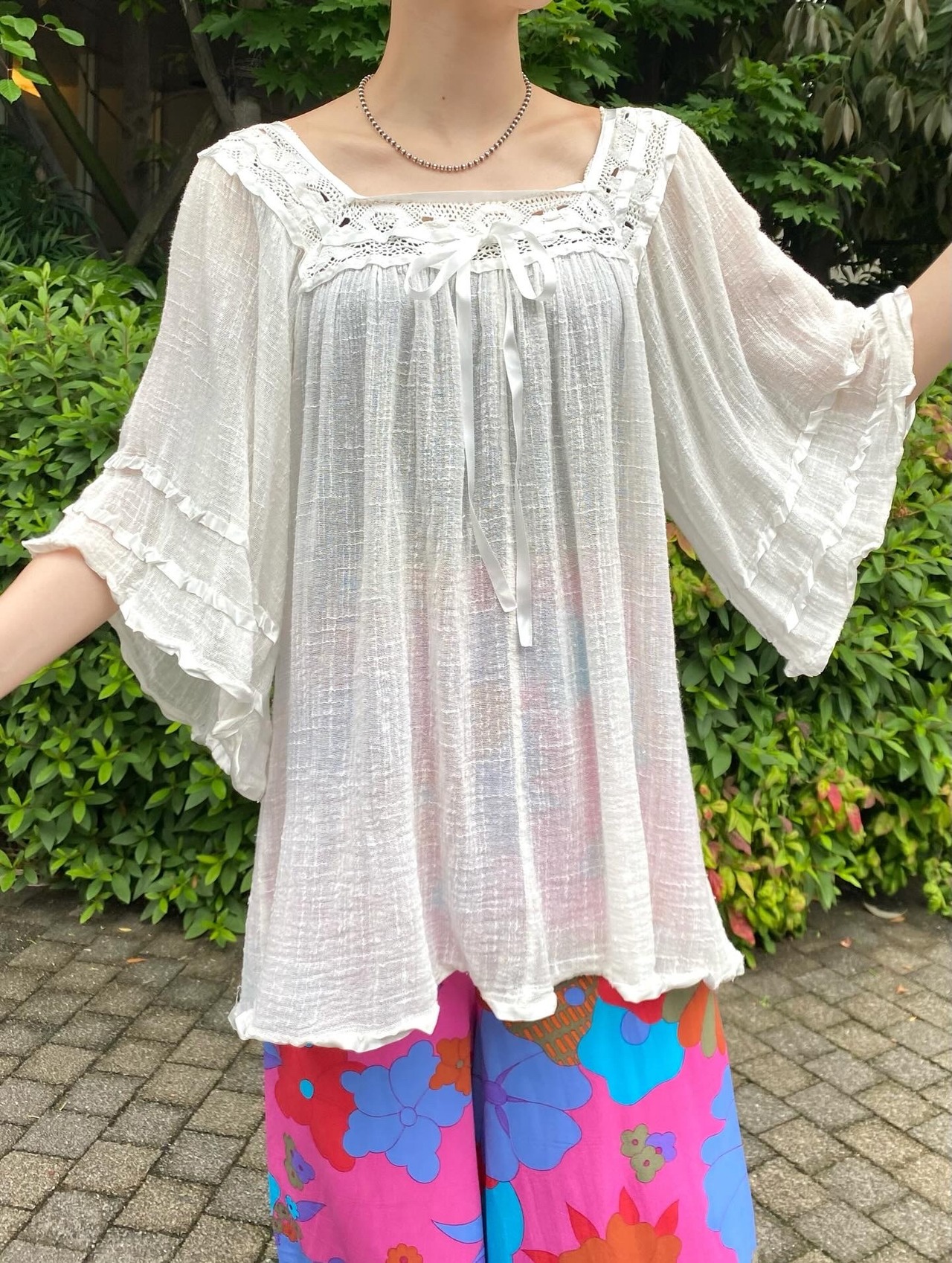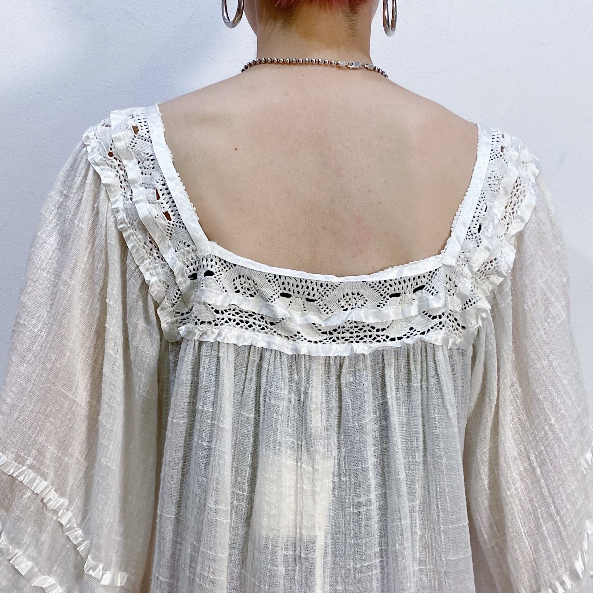 ふわふわと柔らかなコットンガーゼ素材がたまらない、70年代のギリシャチュニックです。
