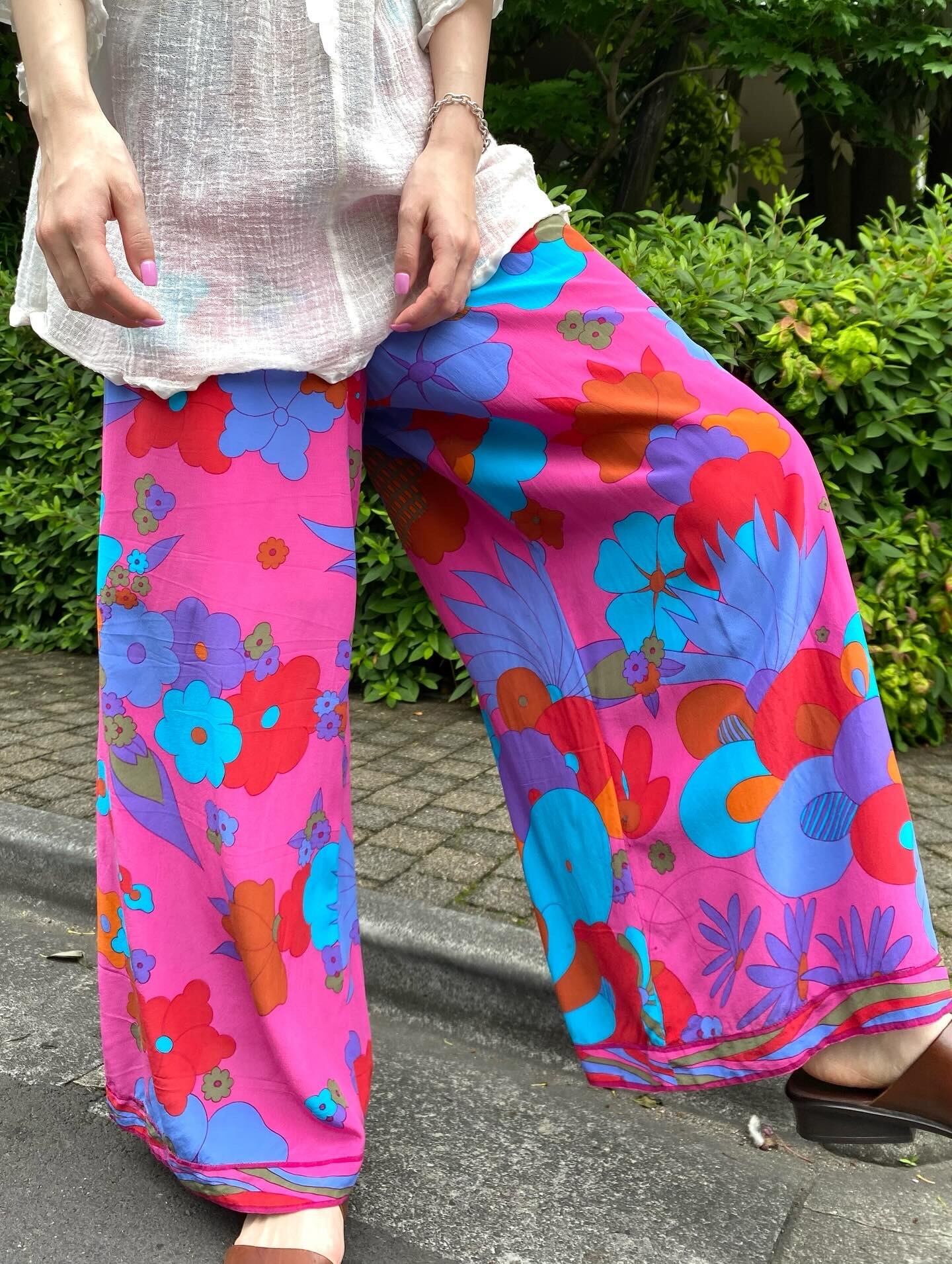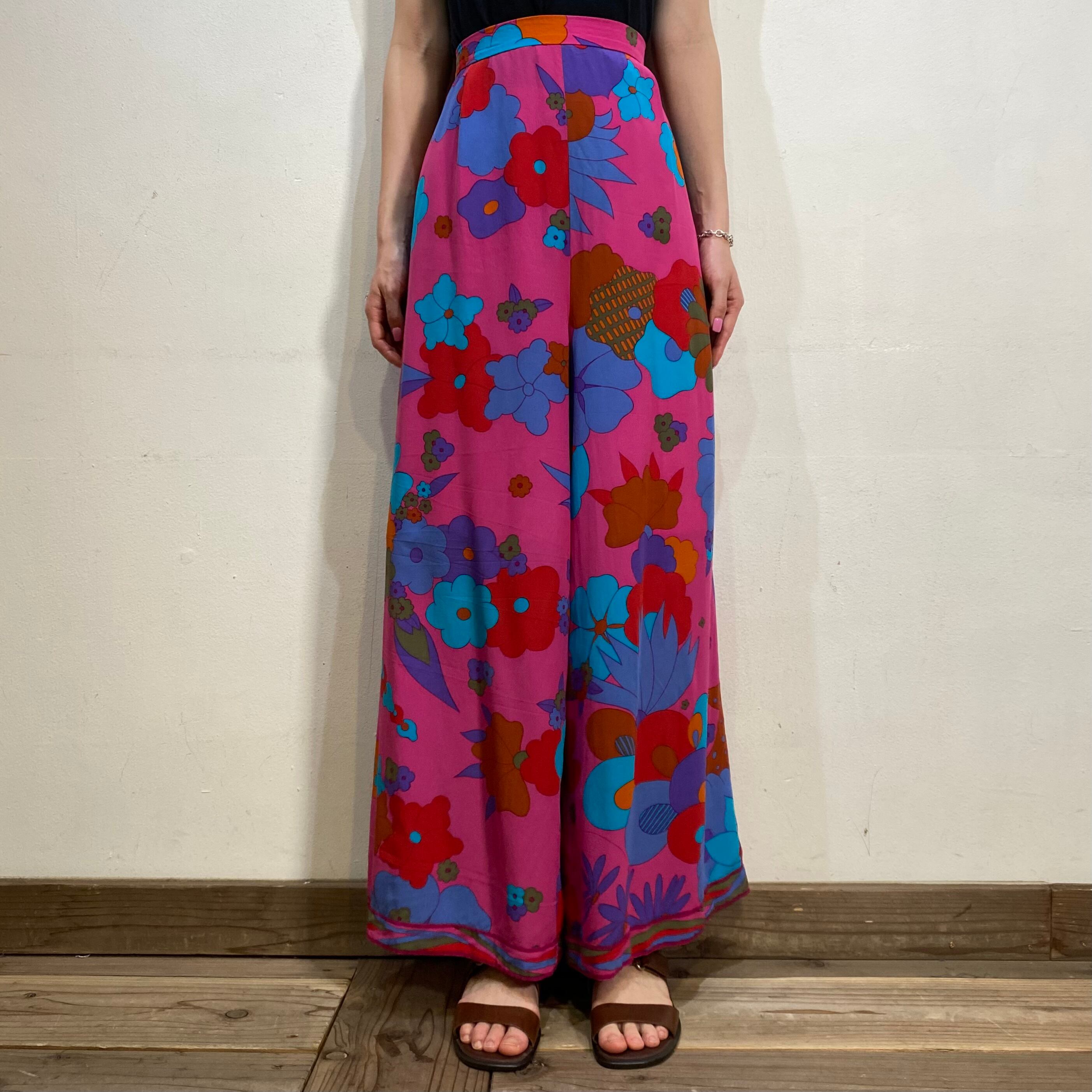 ポップでアートなお花柄が可愛い60年代のワイドパンツです。
