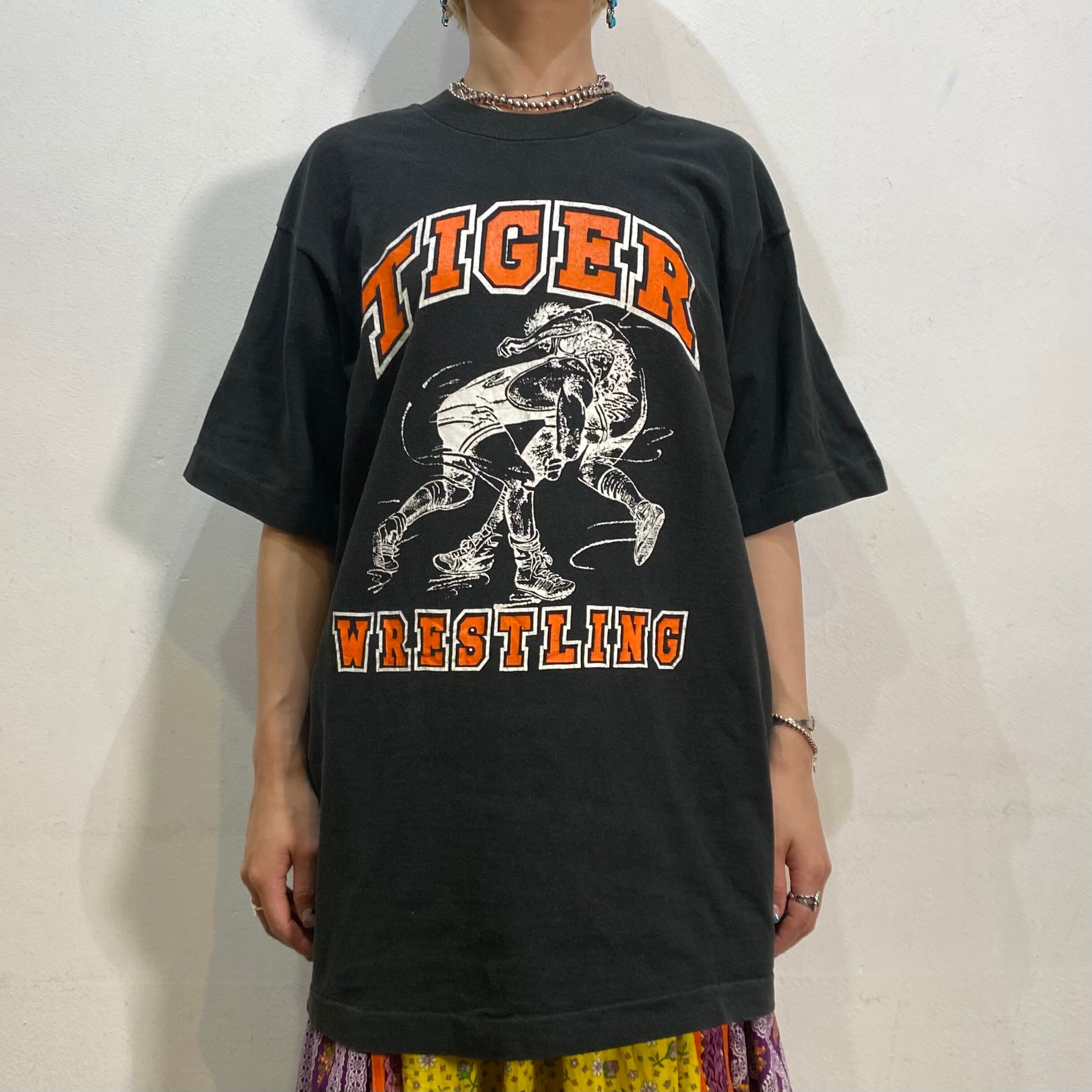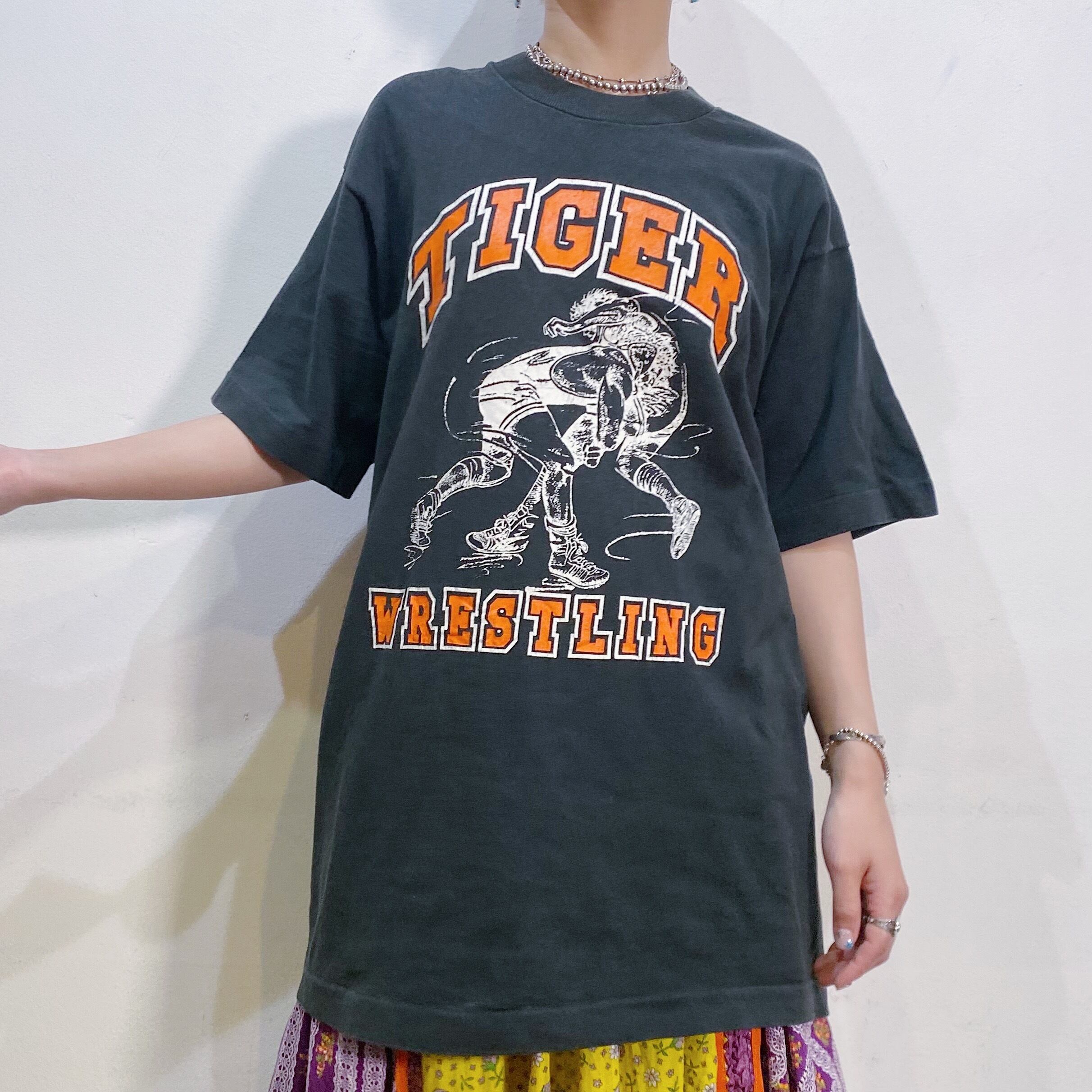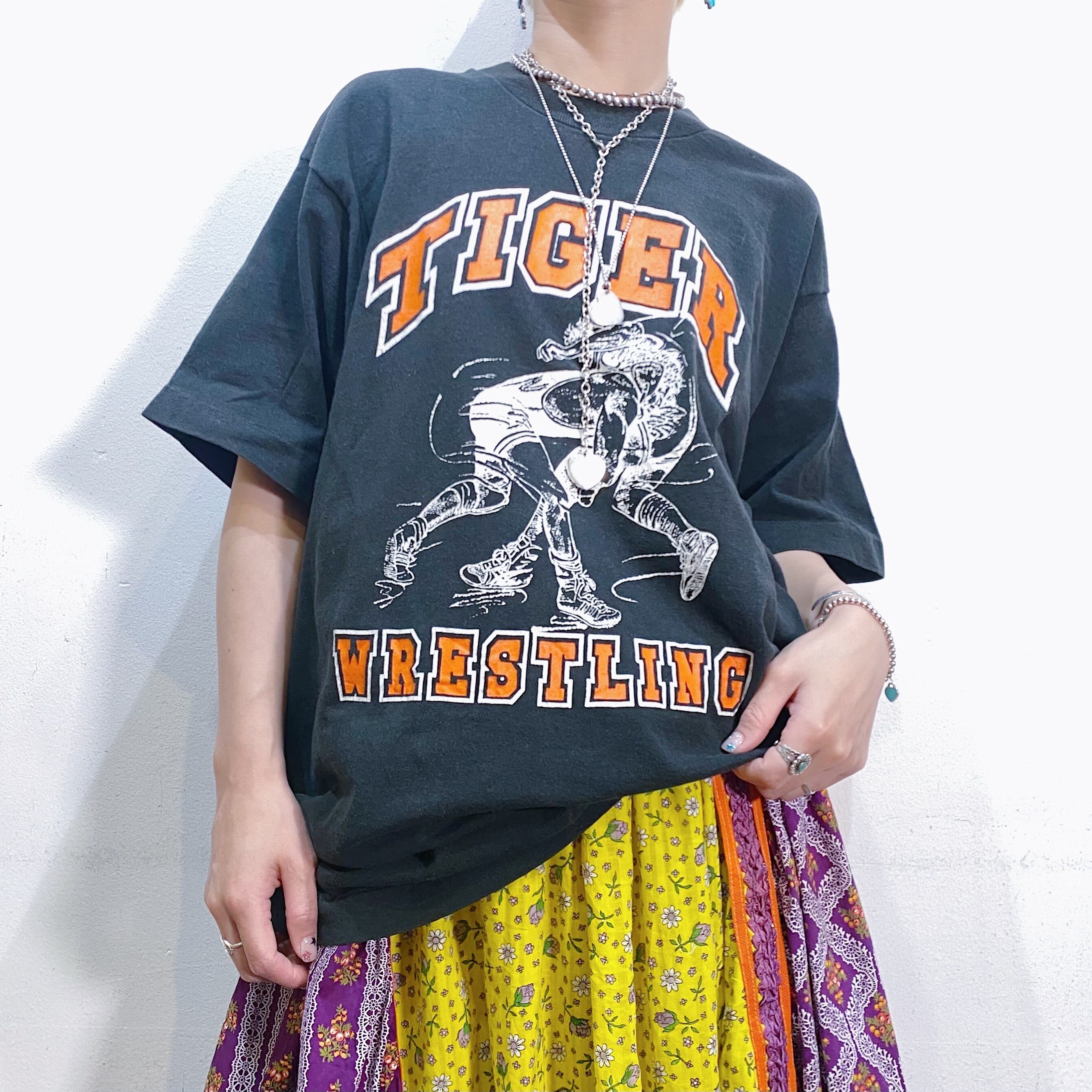 フロントのプリントはレスリングモチーフで、バックの大きなメッセージロゴがぐっとくる一枚。