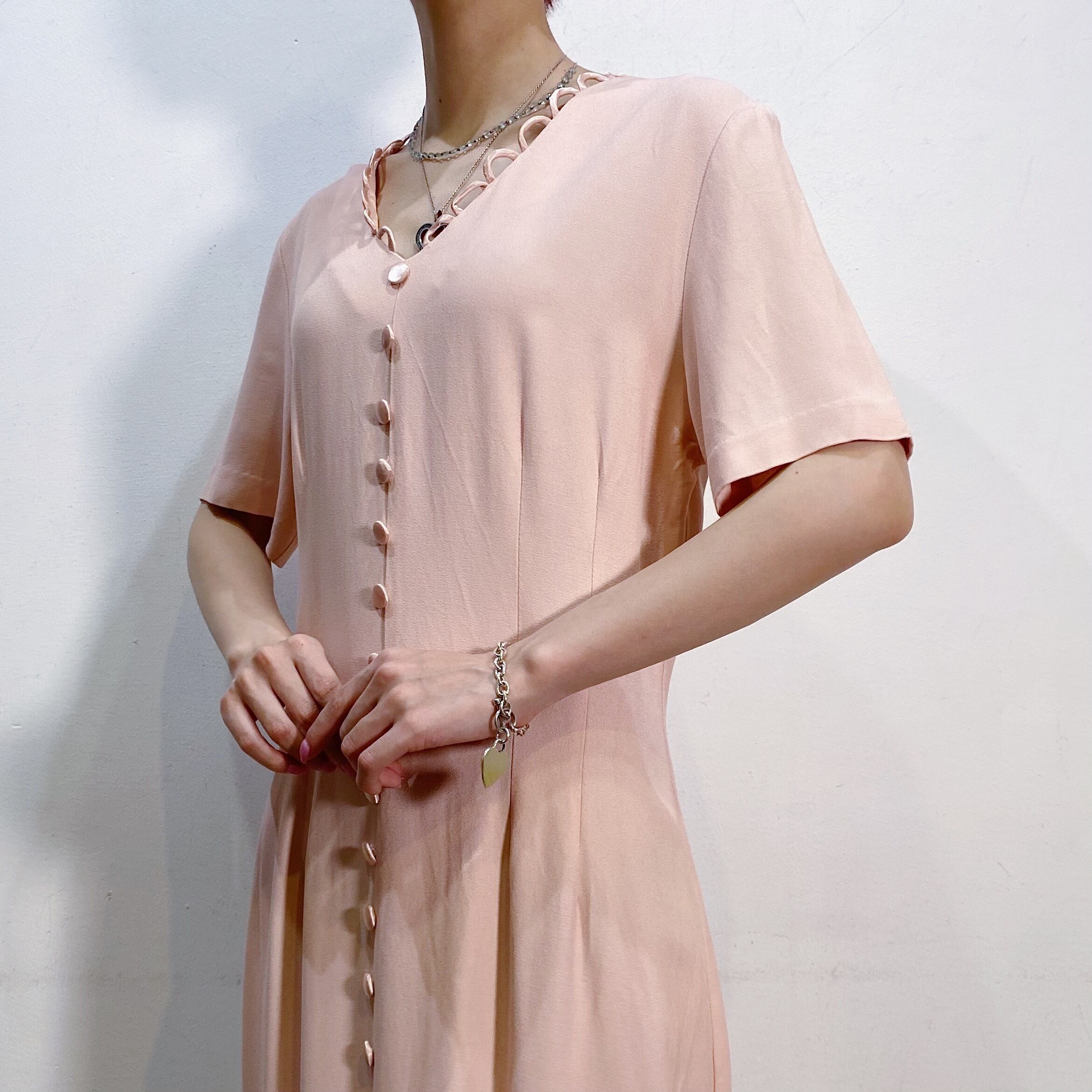 淡いベビーピンクカラーが素敵な80年代のロングワンピースです。