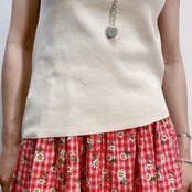 ベージュカラーで使い勝手のいい、リブノースリーブトップです。