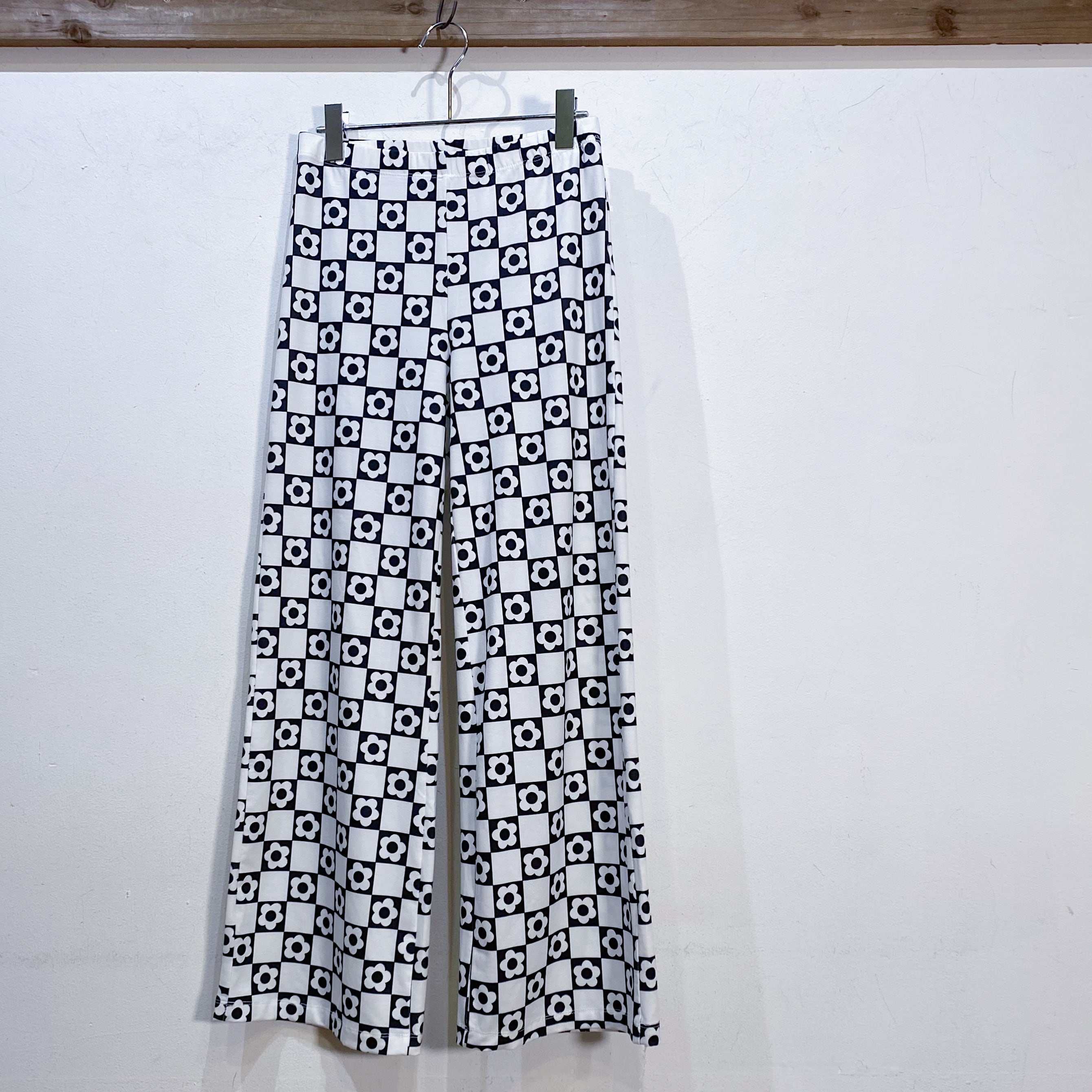 White and black flower printed easy pants