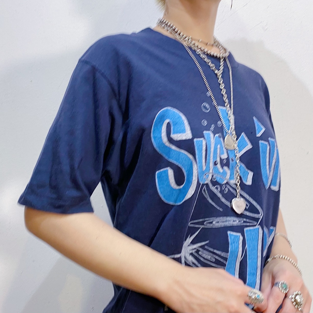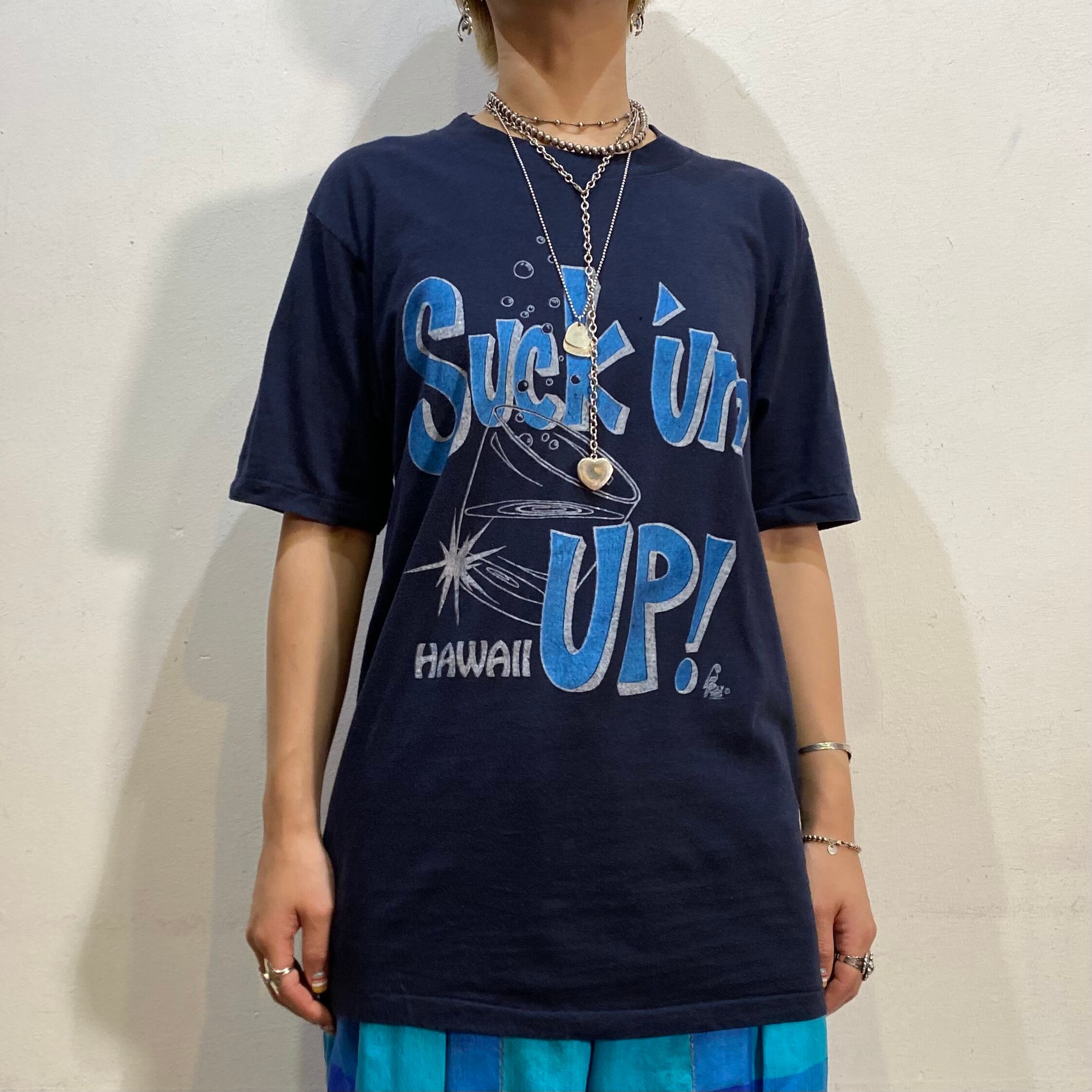 “suck um up!” 飲み干せ〜!という意味のロゴにコップのデザインが印象的なビンテージTシャツ。
