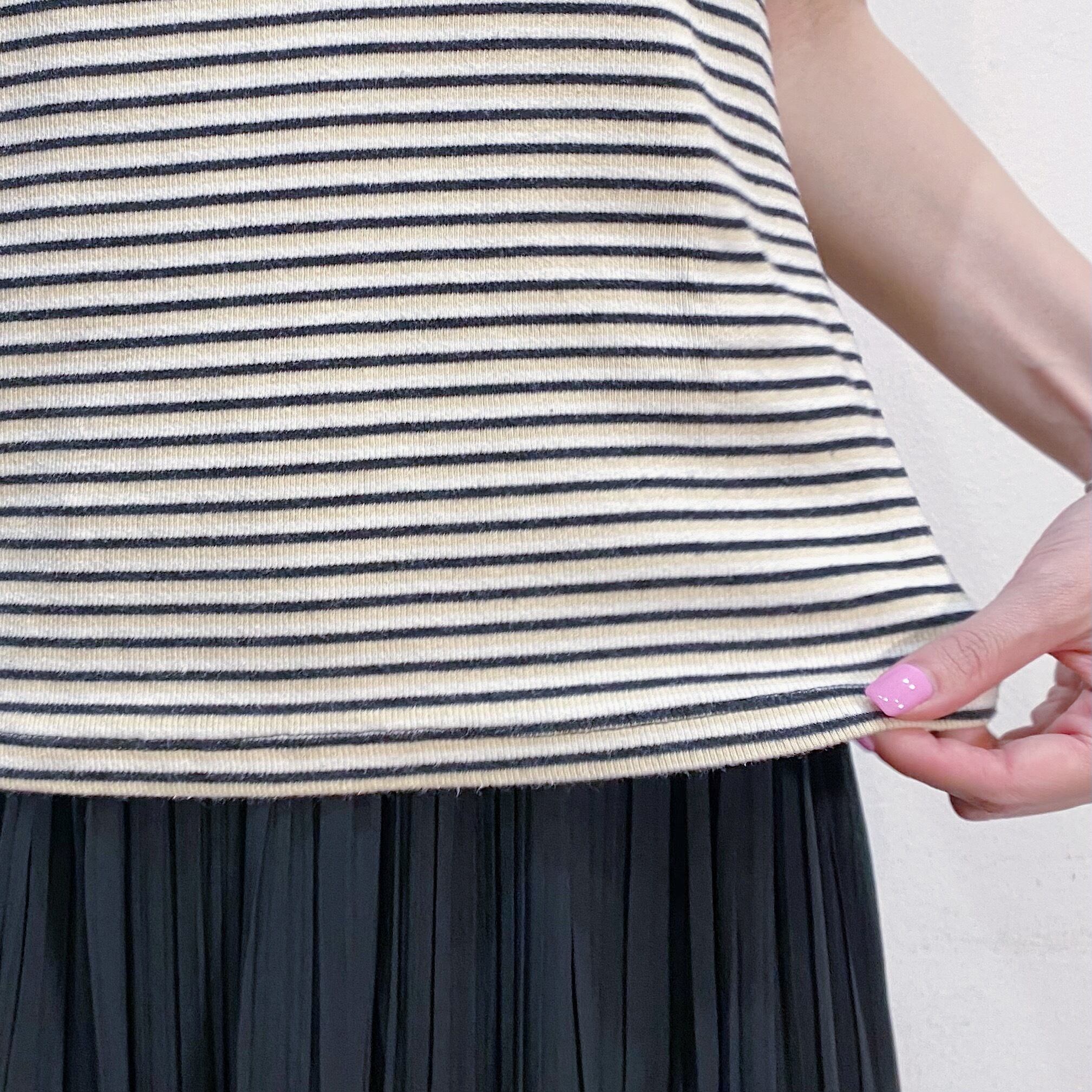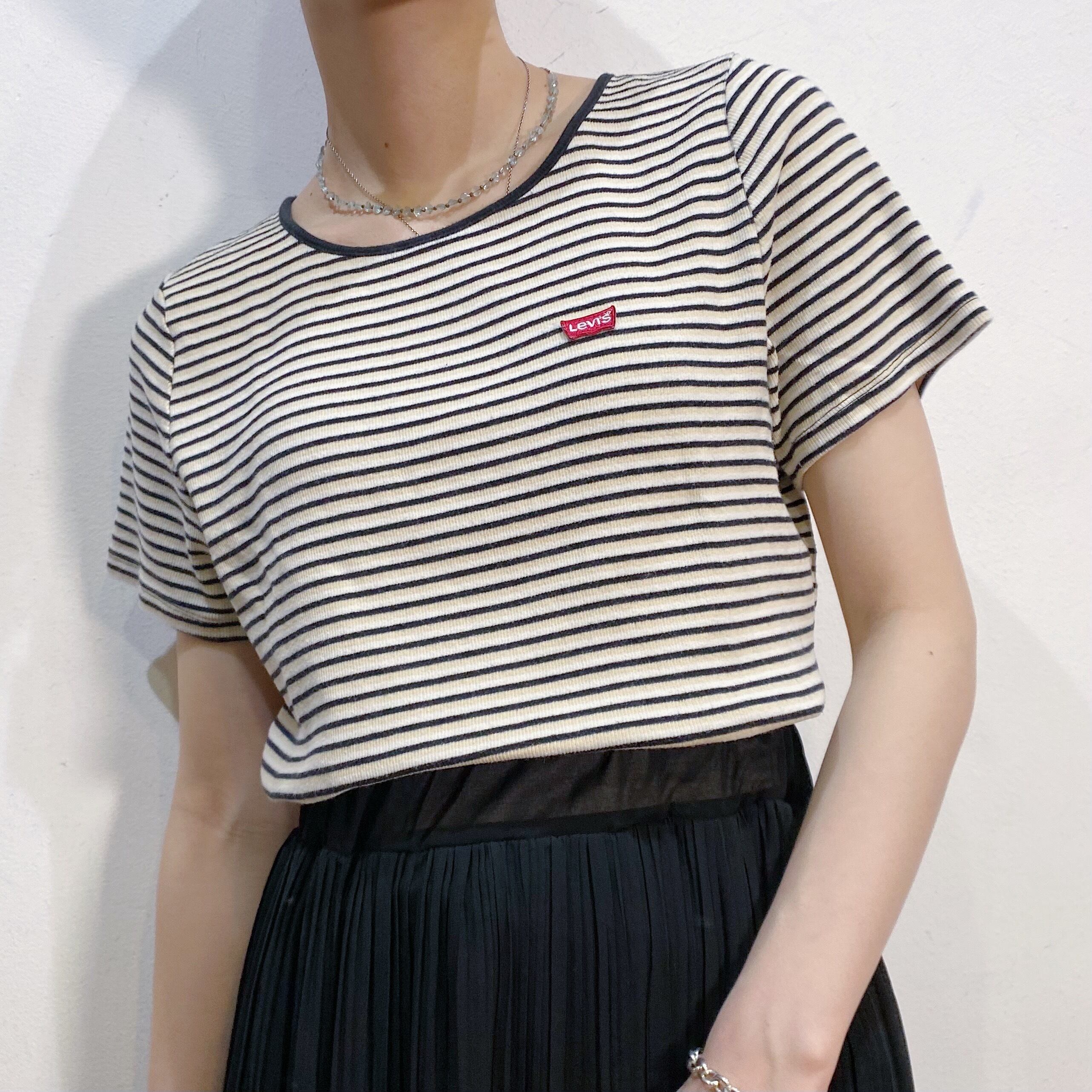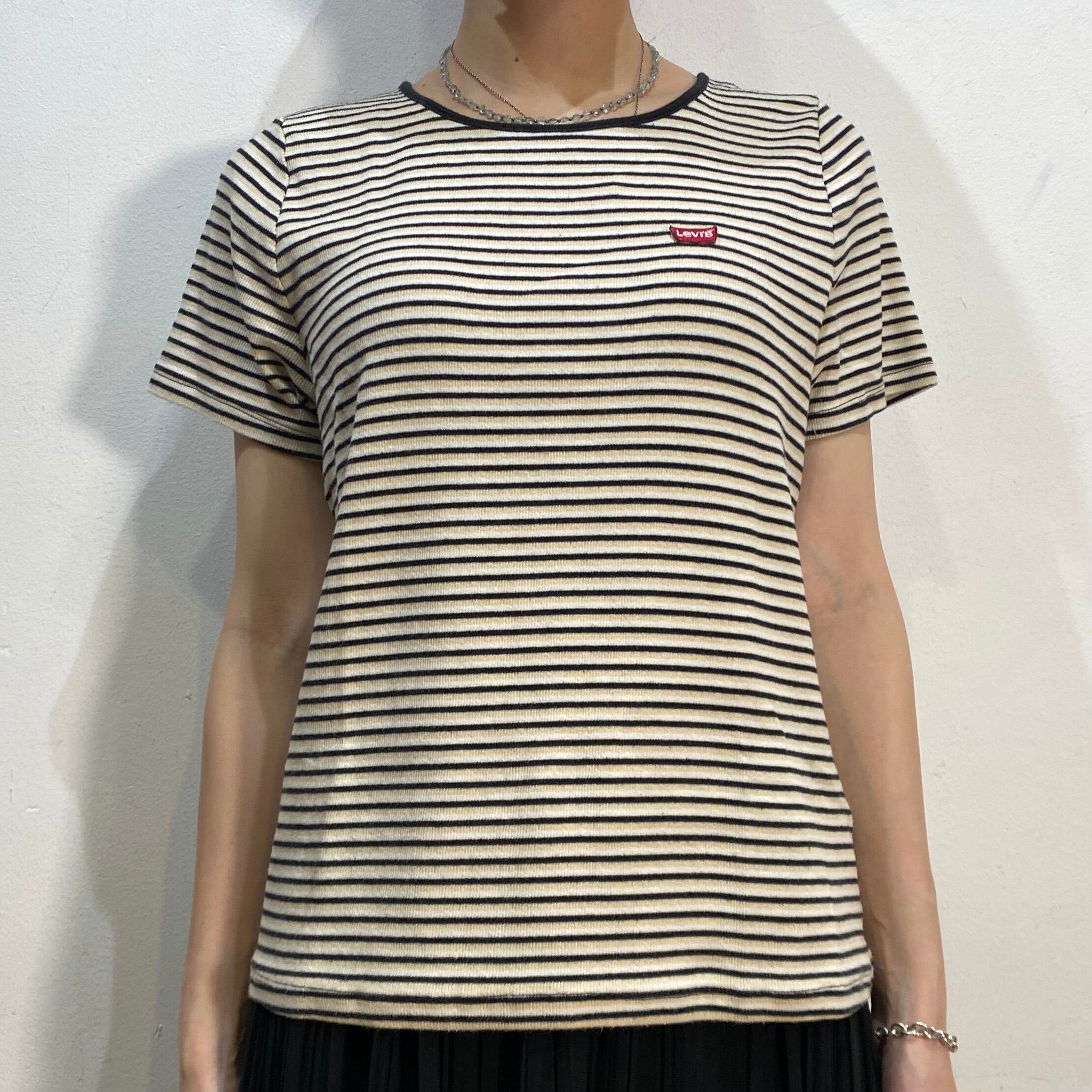 黒とベージュのストライプで着こなしやすい、Levi'sのTシャツです。