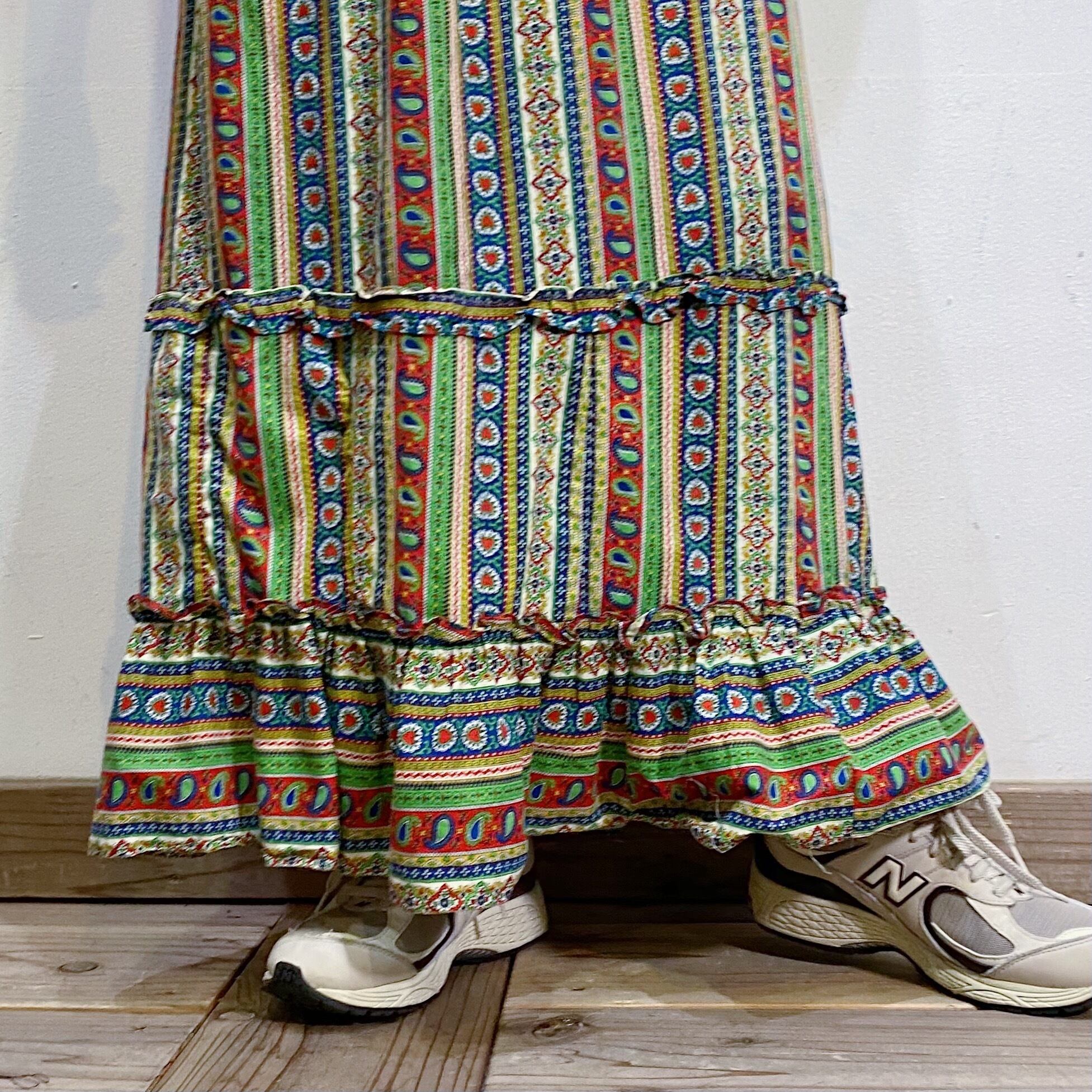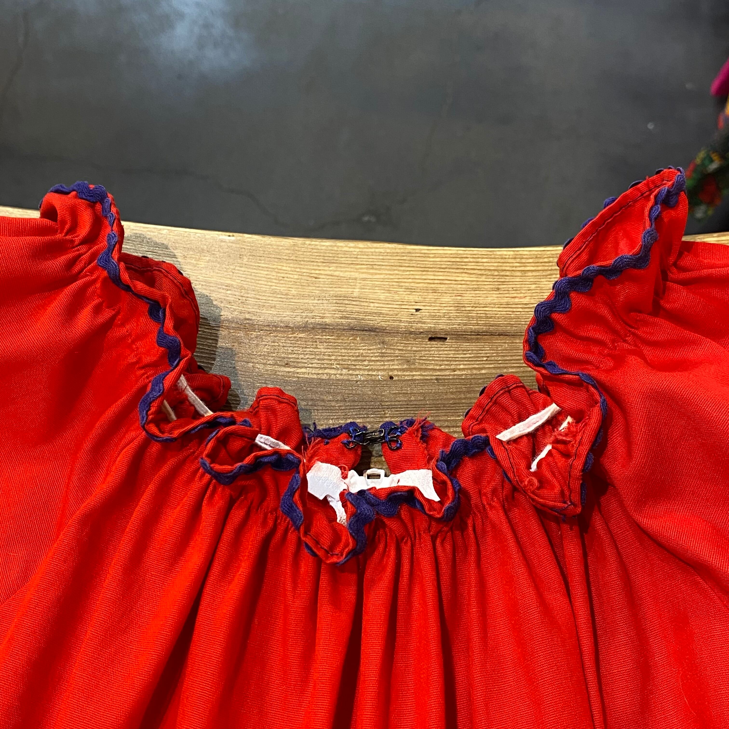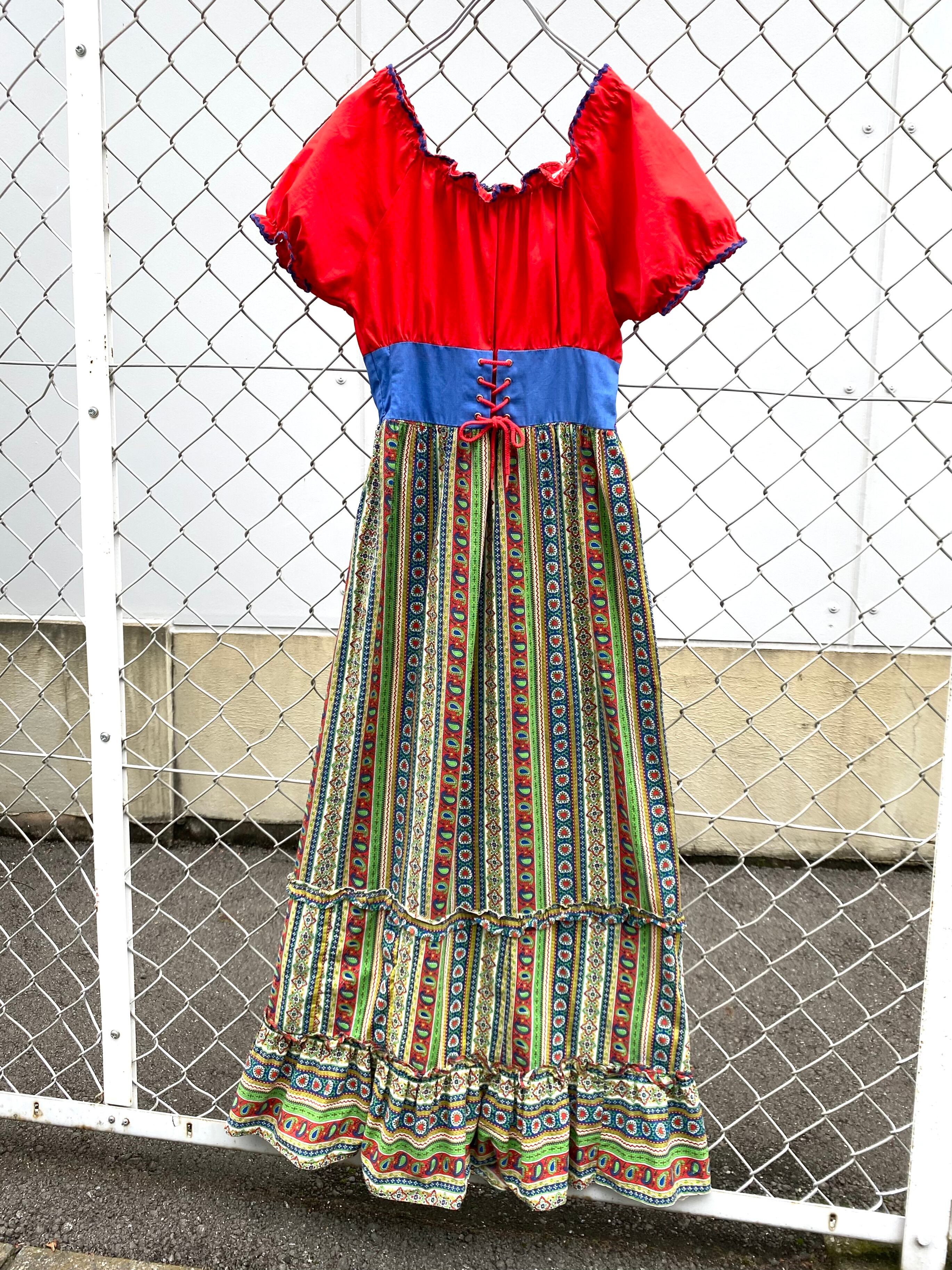 トップスとスカートをドッキングさせたようなデザインが可愛い、70年代のワンピースです。