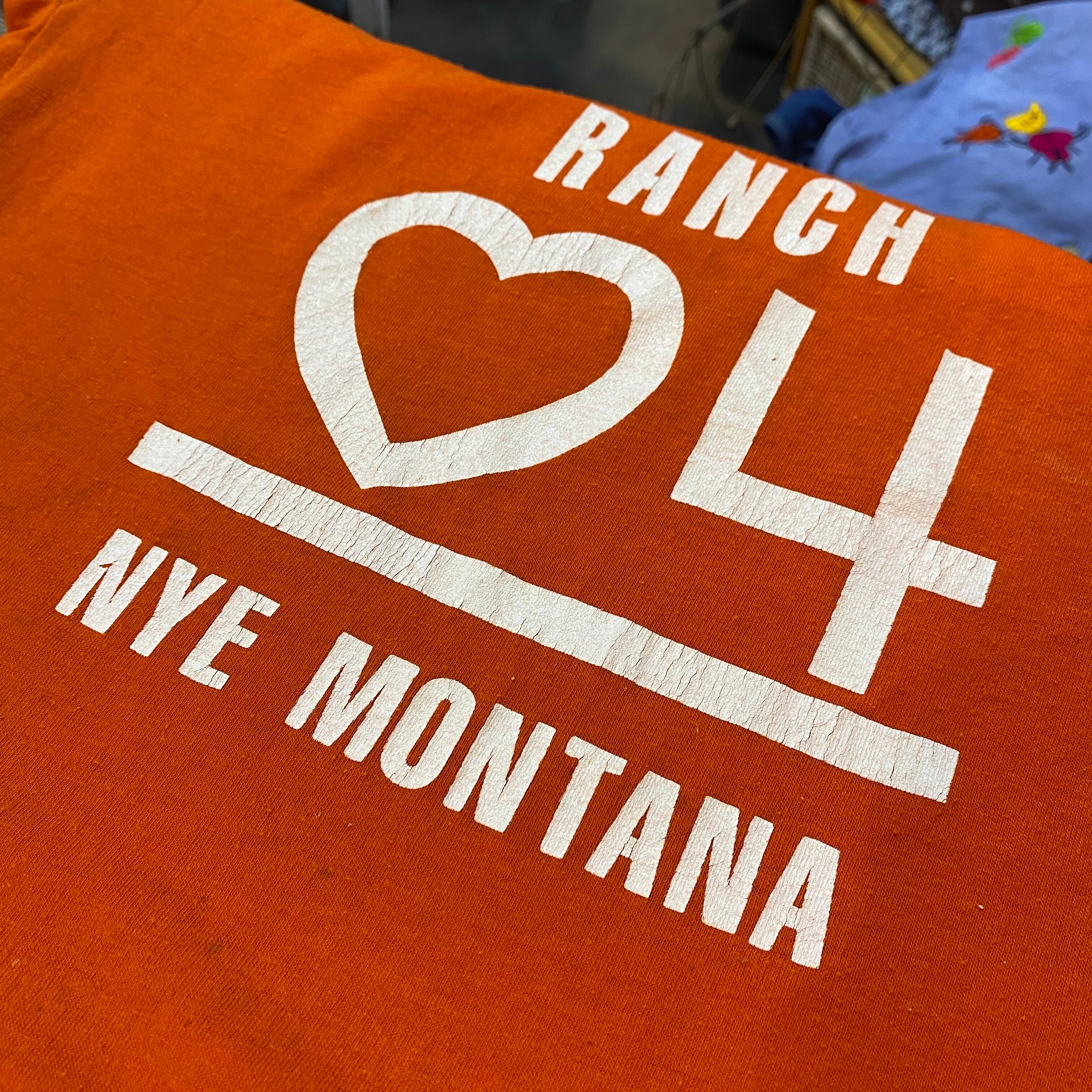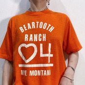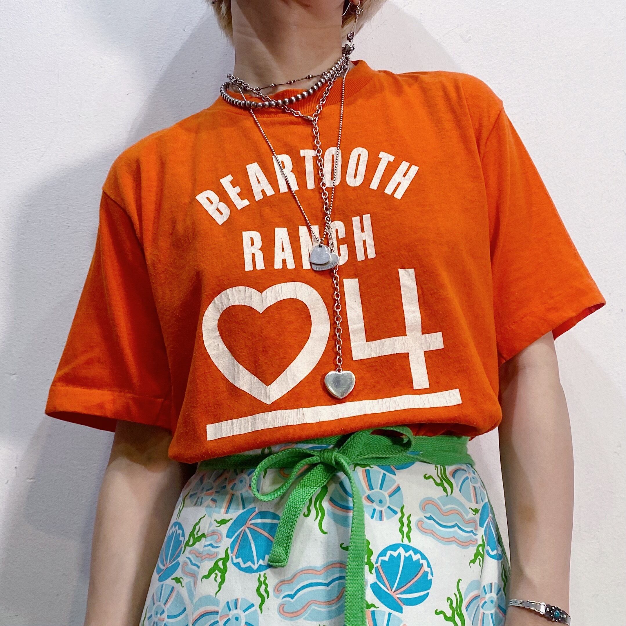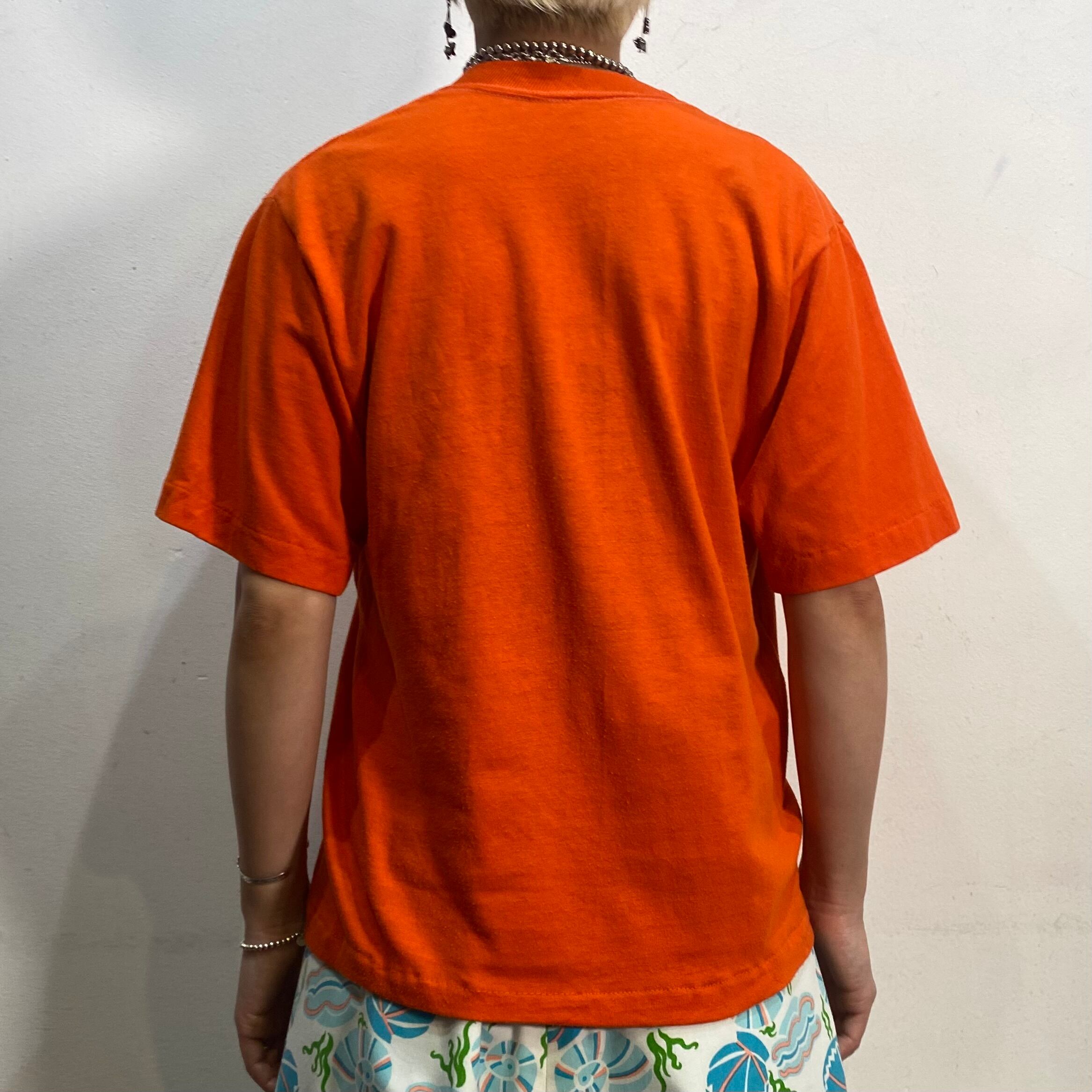 ハッピーなオレンジカラーにハートのプリントが可愛い、80年代のTシャツです。
