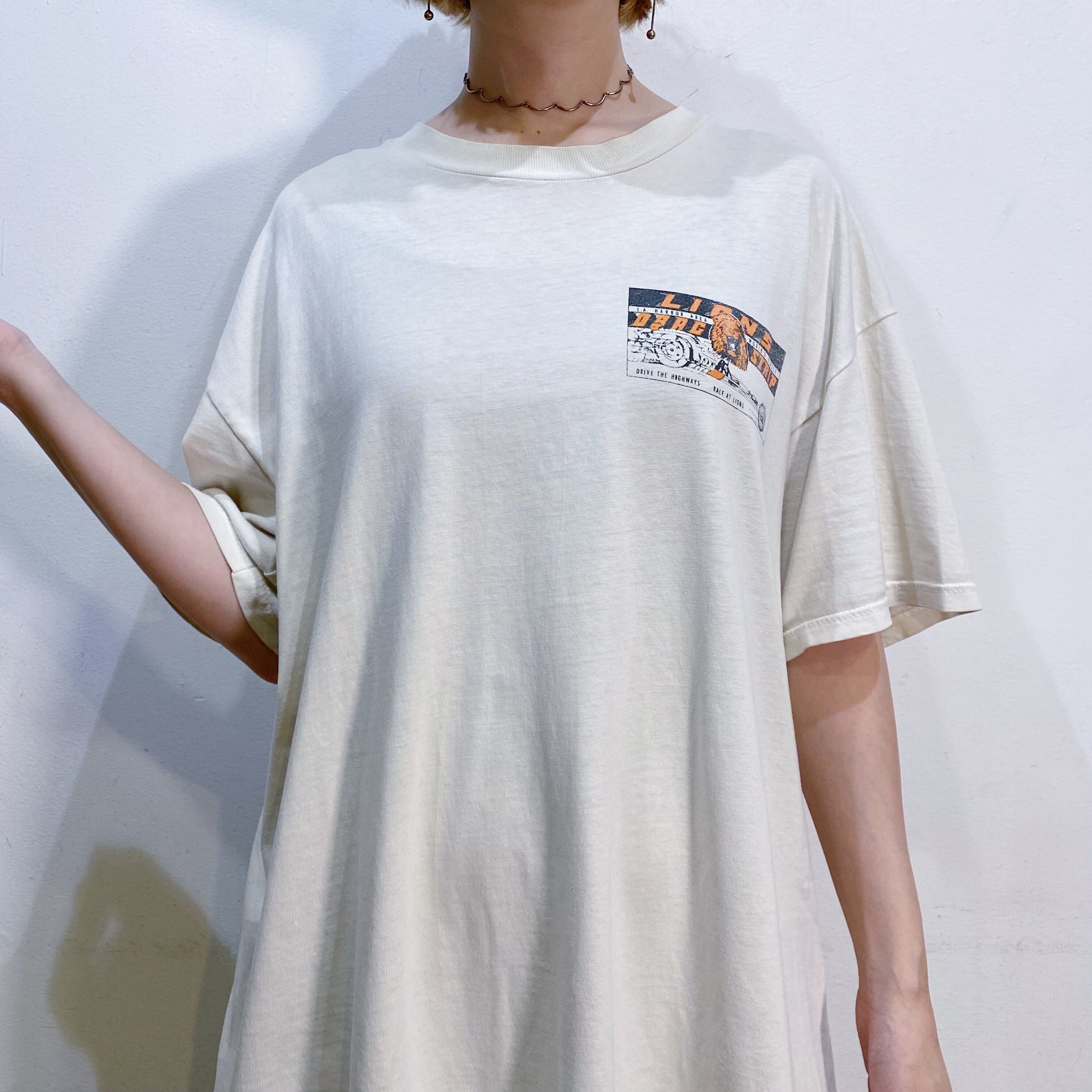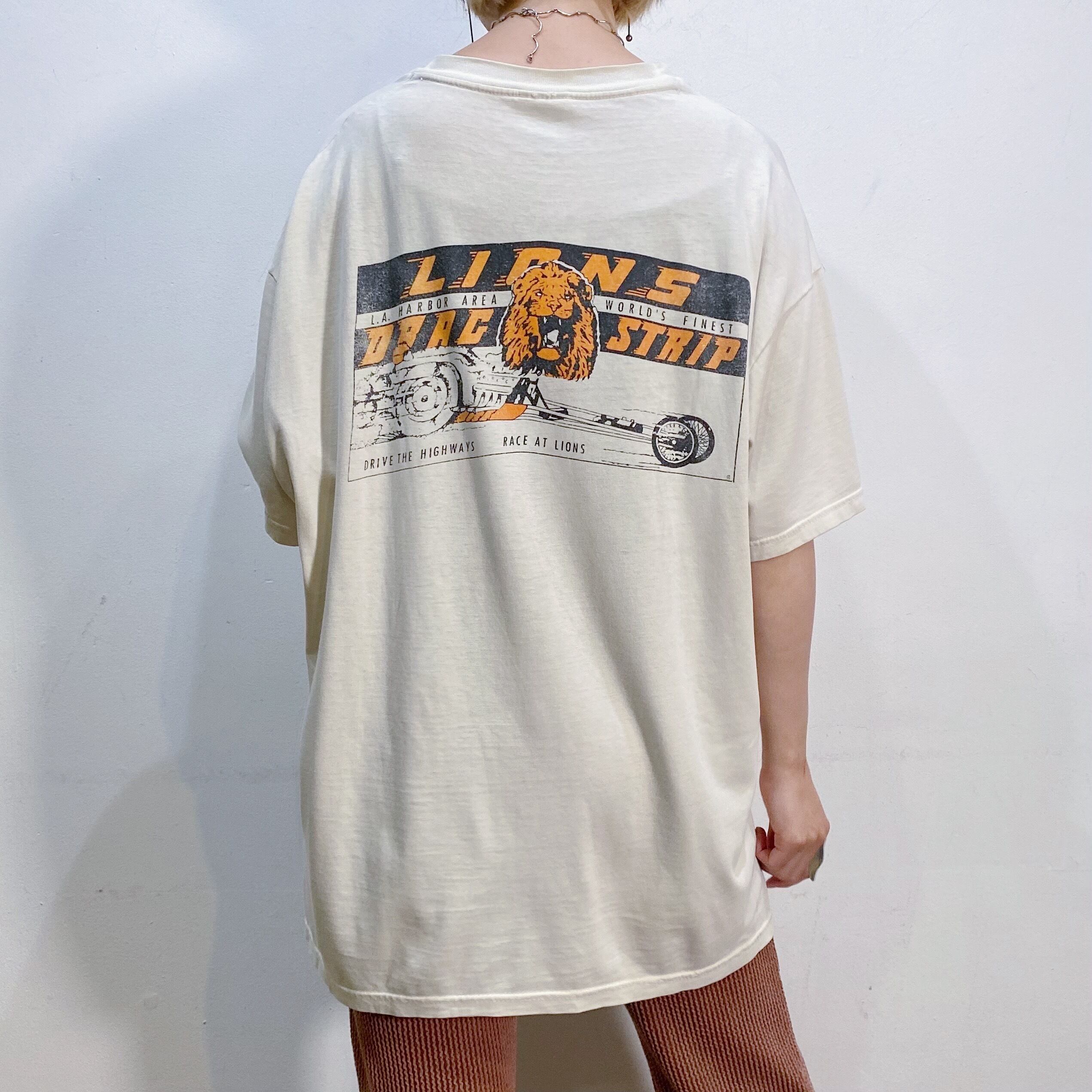 ライオンと車のプリントに、ヴィンテージらしい程よいくたっと感もあって雰囲気のある一枚。
