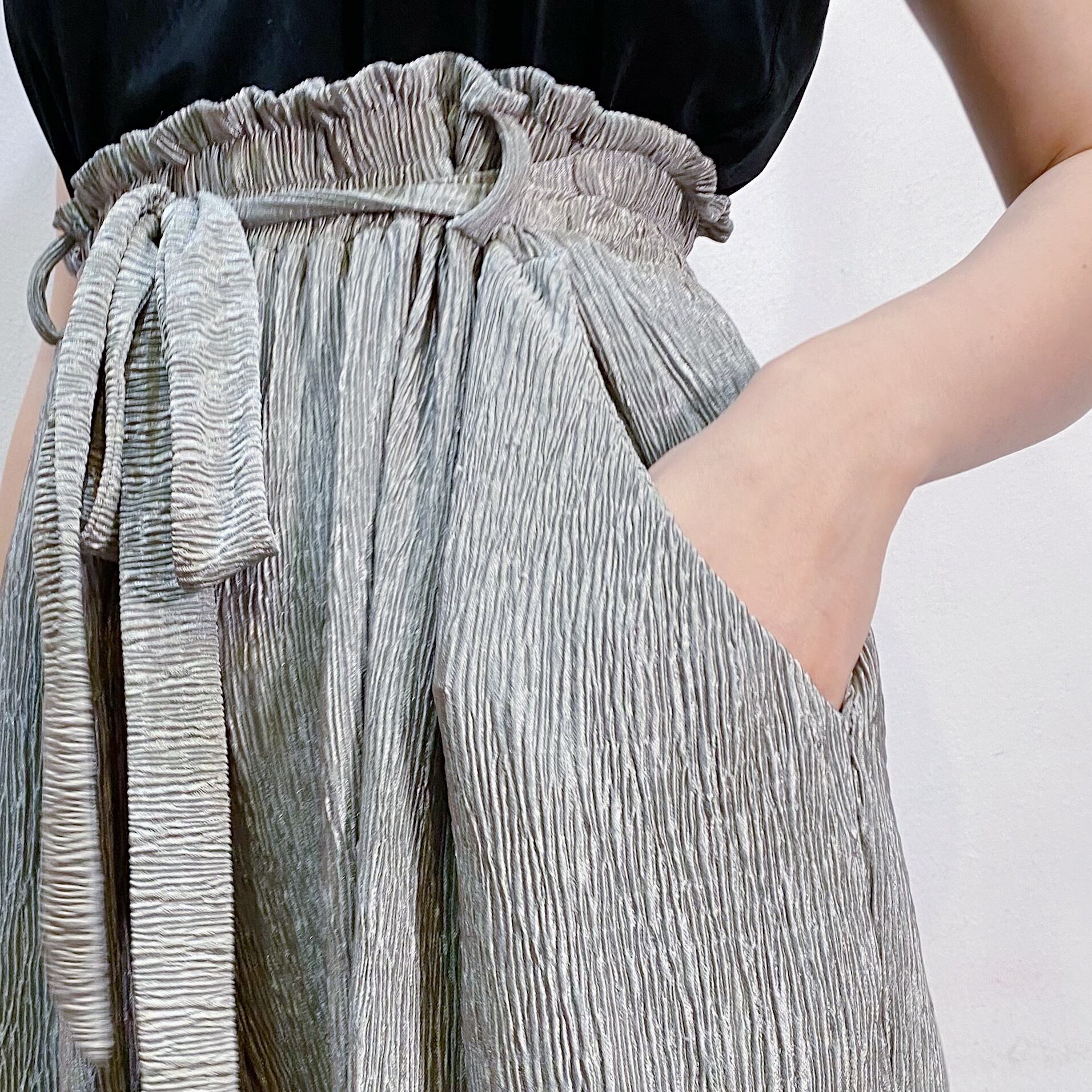 ウエストのリボンが可愛いのでトップスをINして着こなしても、丈の短いワンピースなどの下にレイヤードしたスタイルもおすすめ。