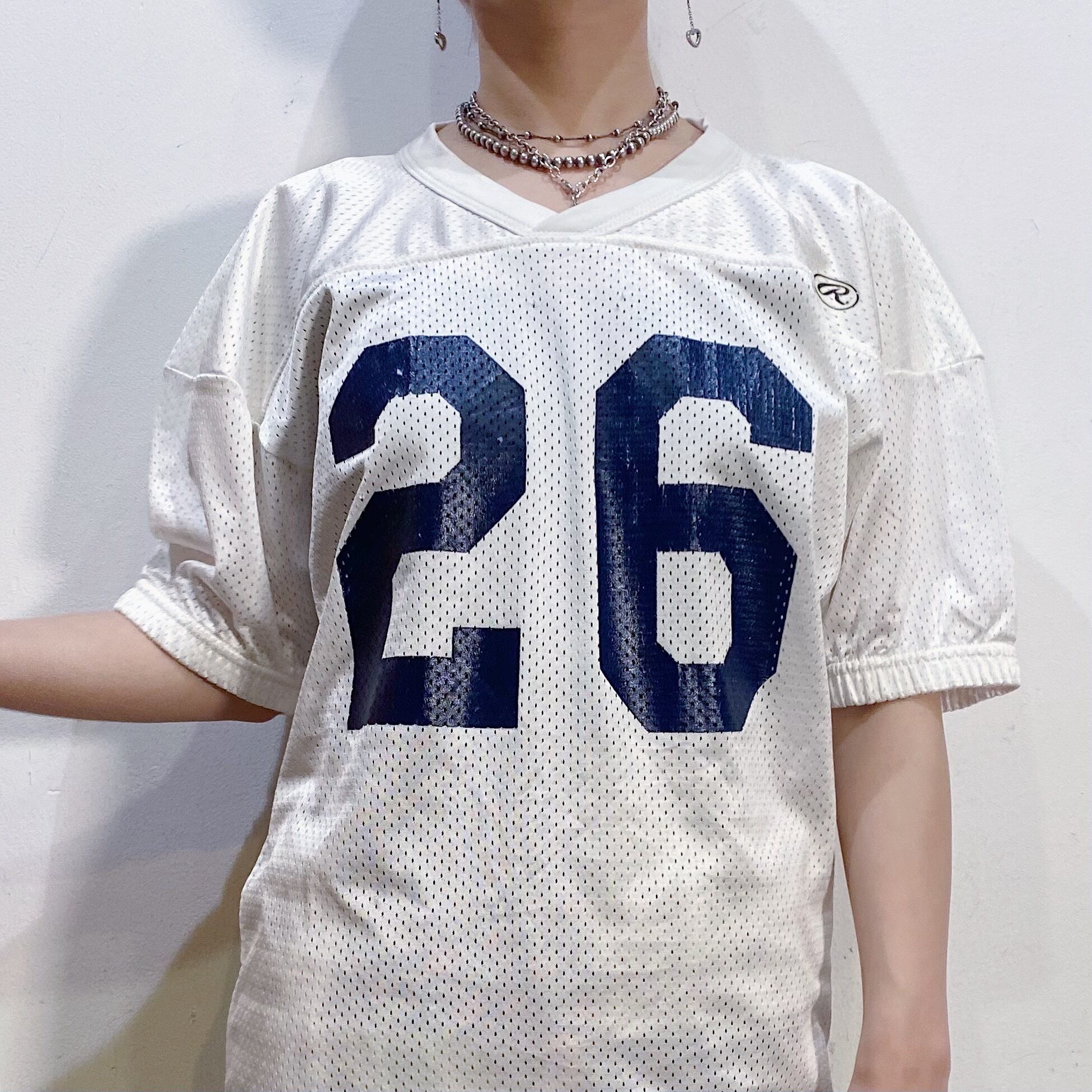 ホワイトカラーでコーディネートに取り入れやすい、フットボールTです。