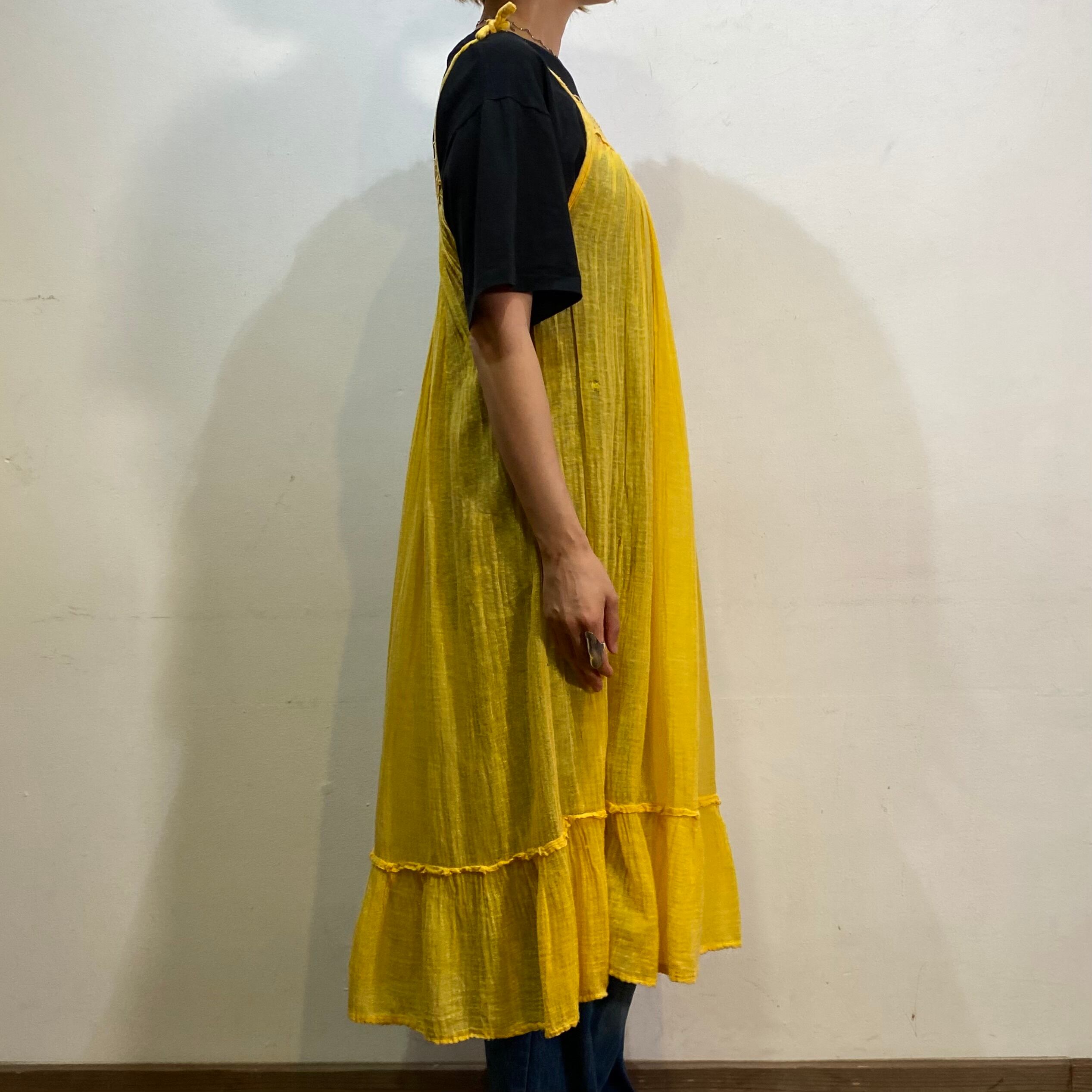 70s yellow cotton gaze cami dress