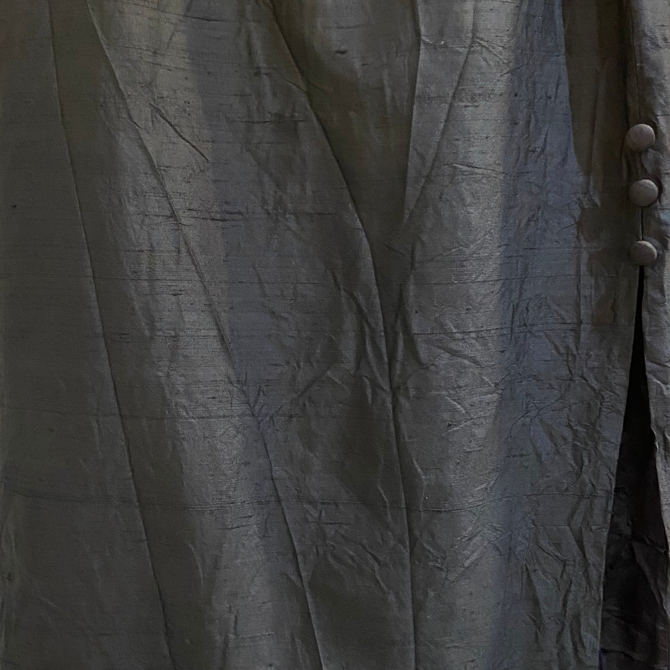 サイドにはロングスリット入りで、ボタンのデザインもありさりげなくポイントに。