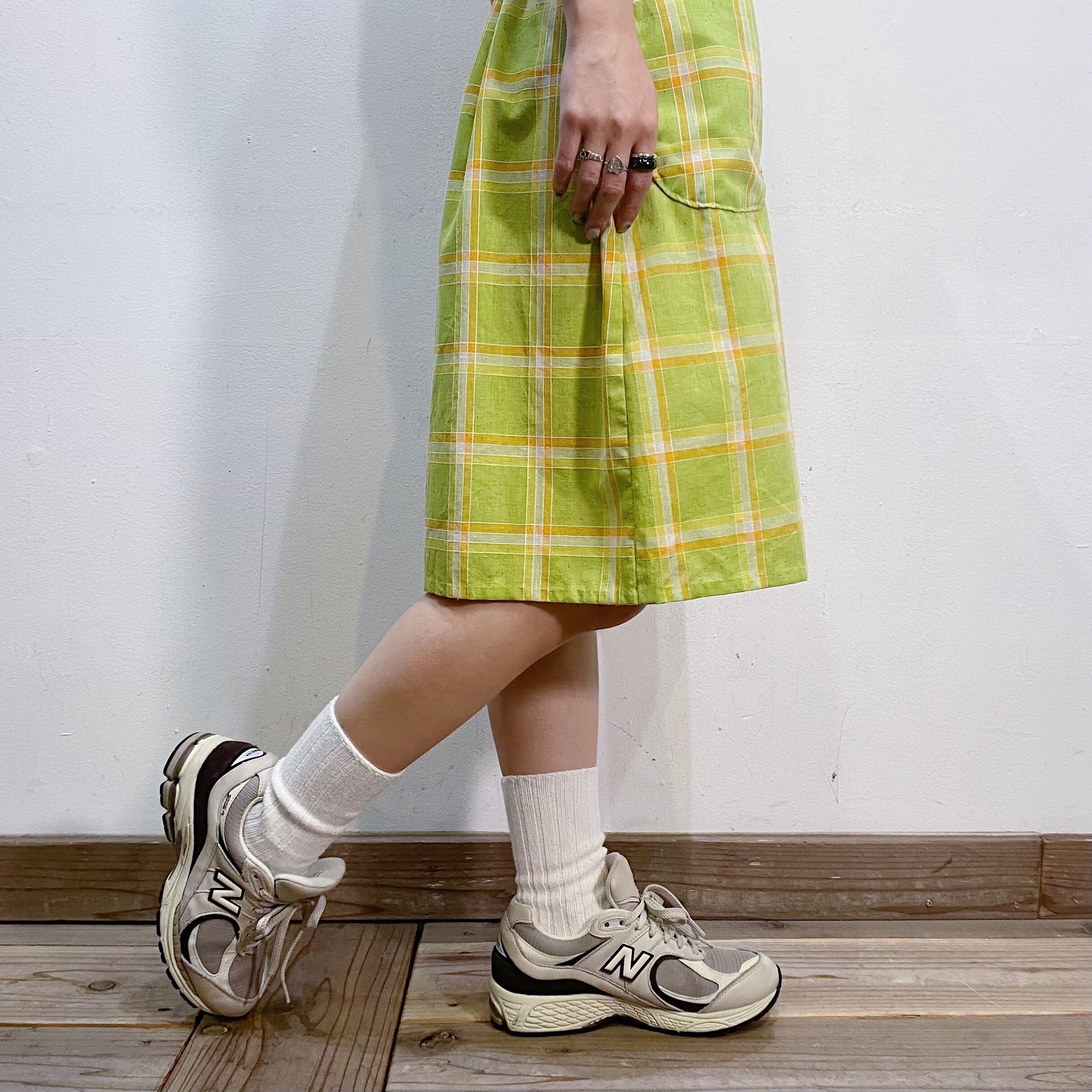 ライムグリーン・オレンジ・イエローのチェック柄が可愛い、70年代のジャンプスーツです。