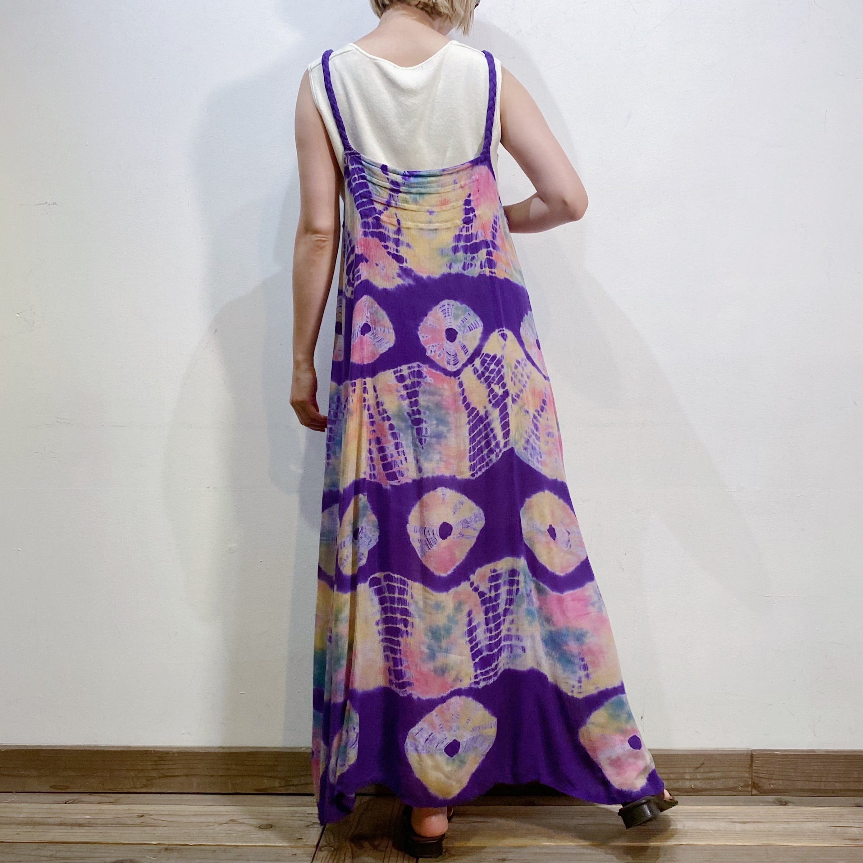 パープルベースのタイダイが可愛い、80年代のキャミワンピースです。