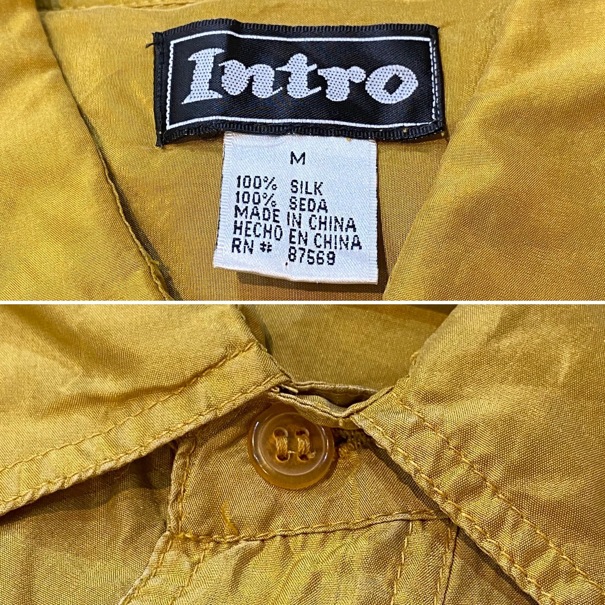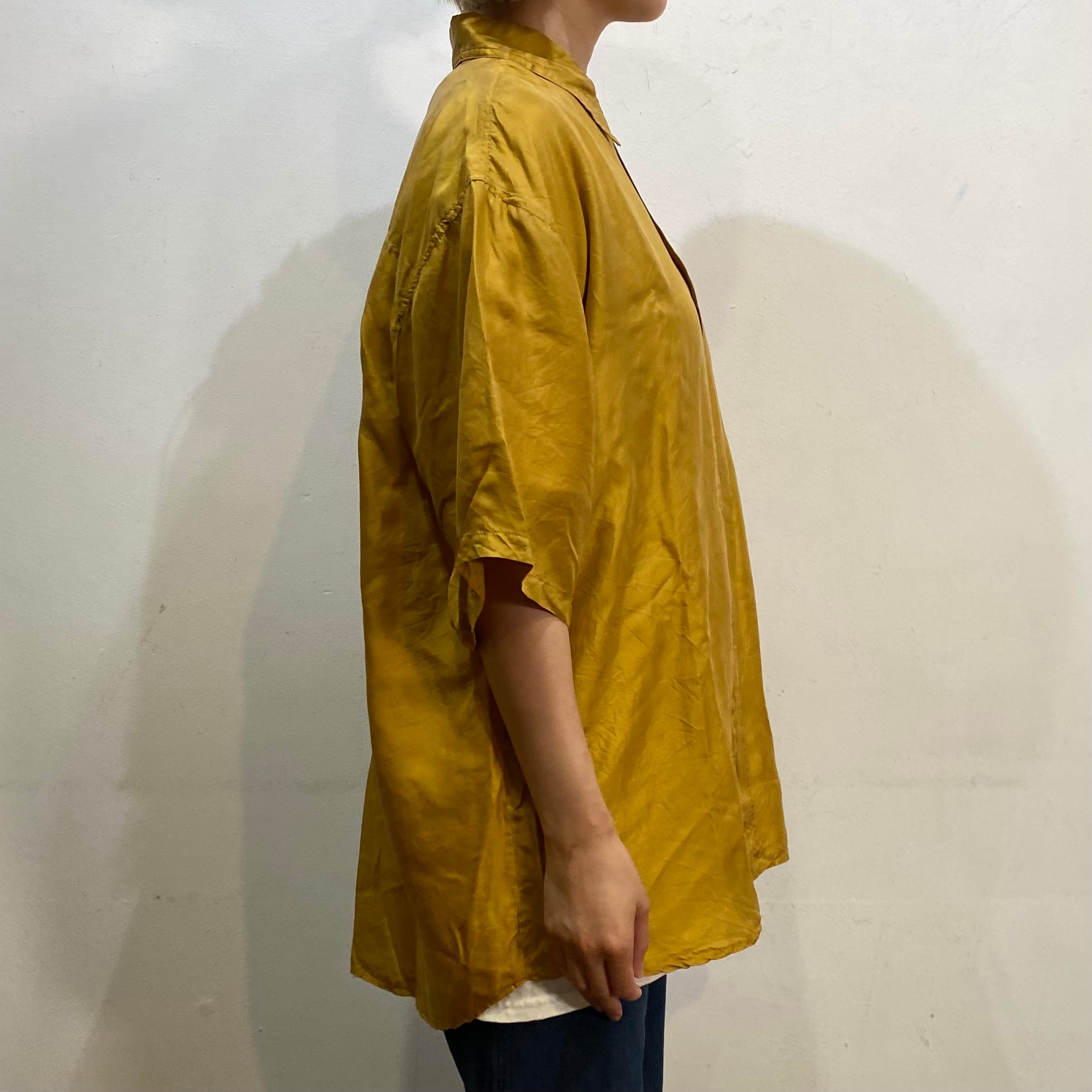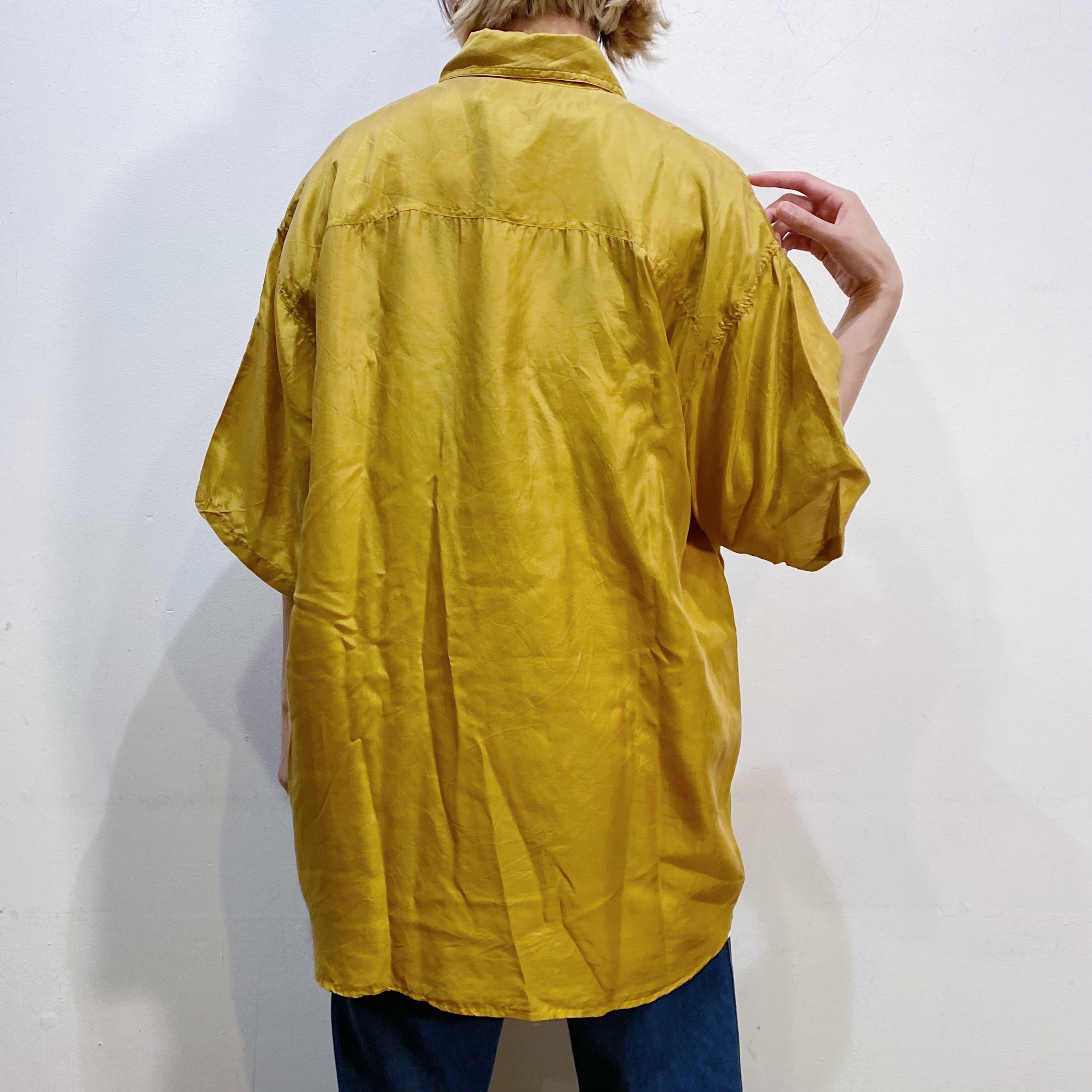 マスタードイエローの色合いが可愛い、シルク素材の半袖シャツです。