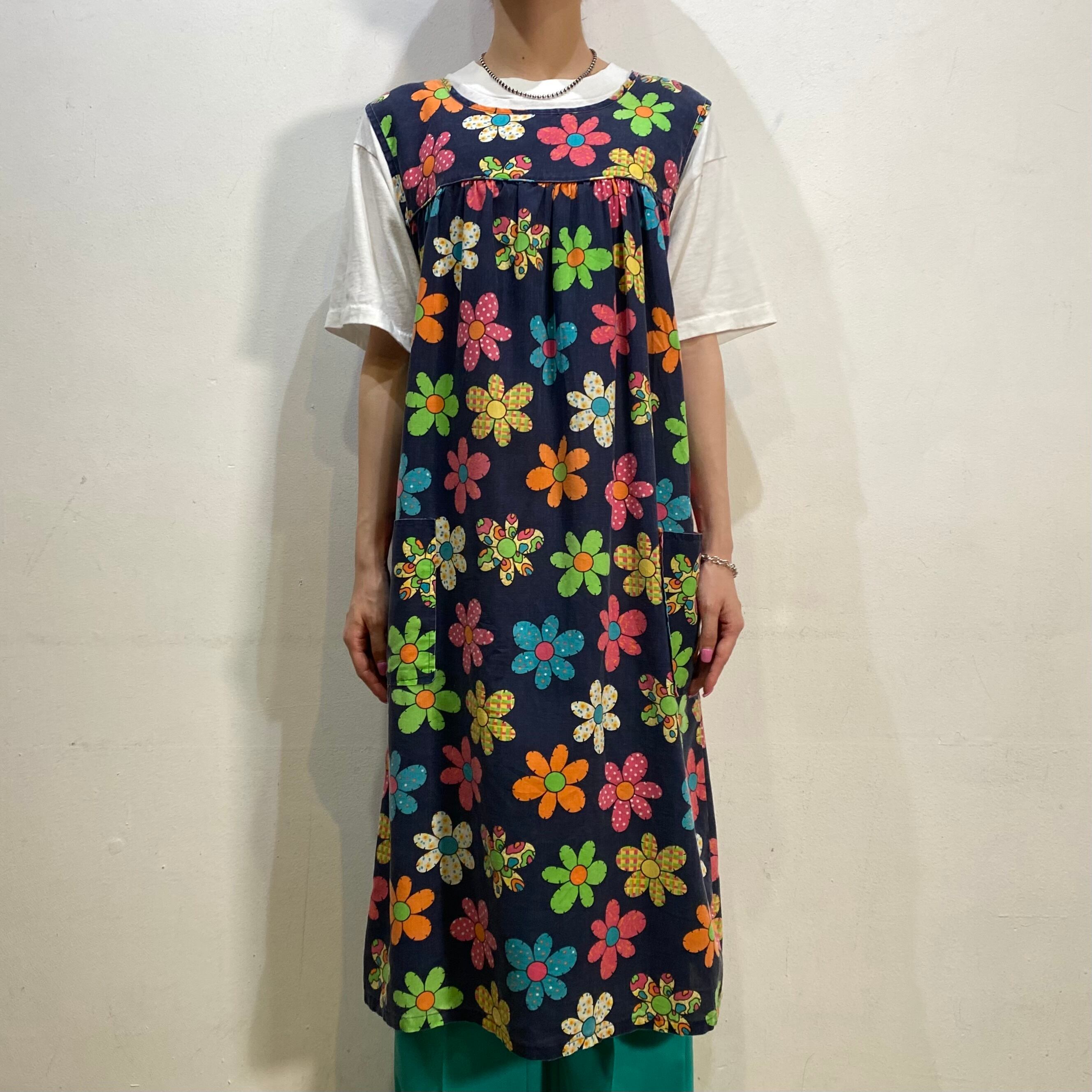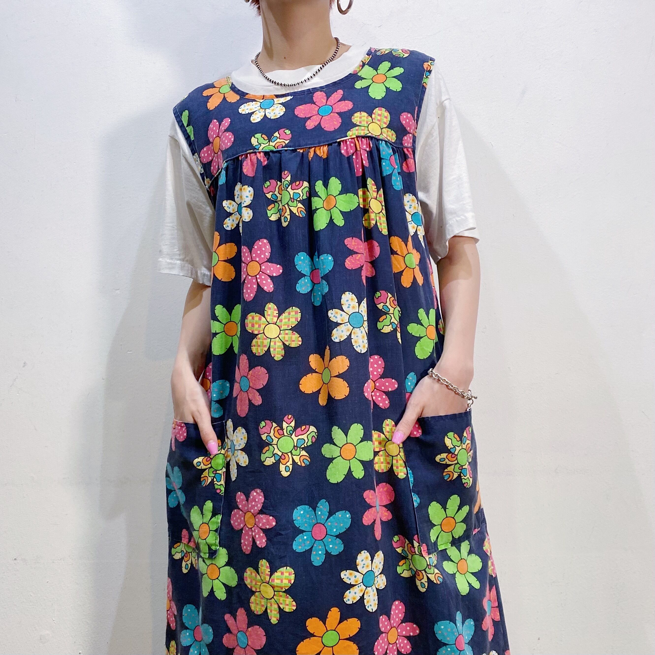 いろんな柄お花がパッチされたようなプリントの、90年代ワンピースです。