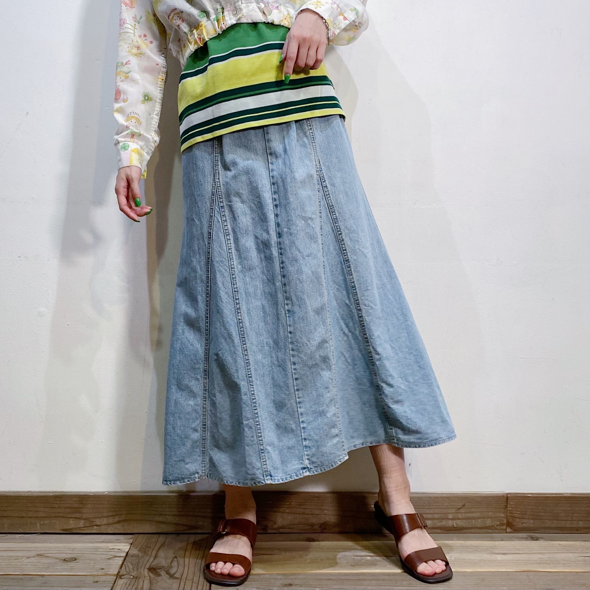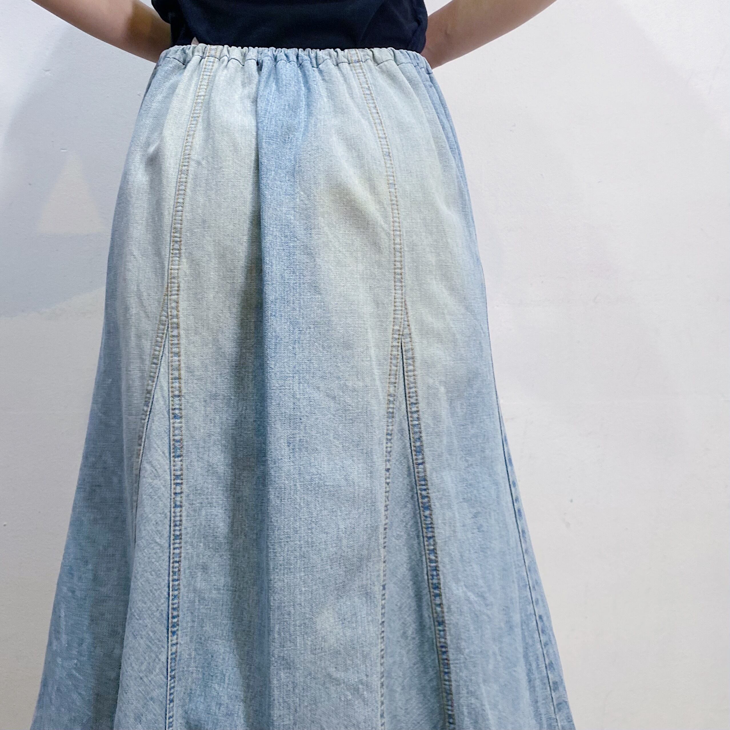 アイスブルーでコーディネートに取り入れやすい、90年代のデニムスカートです。