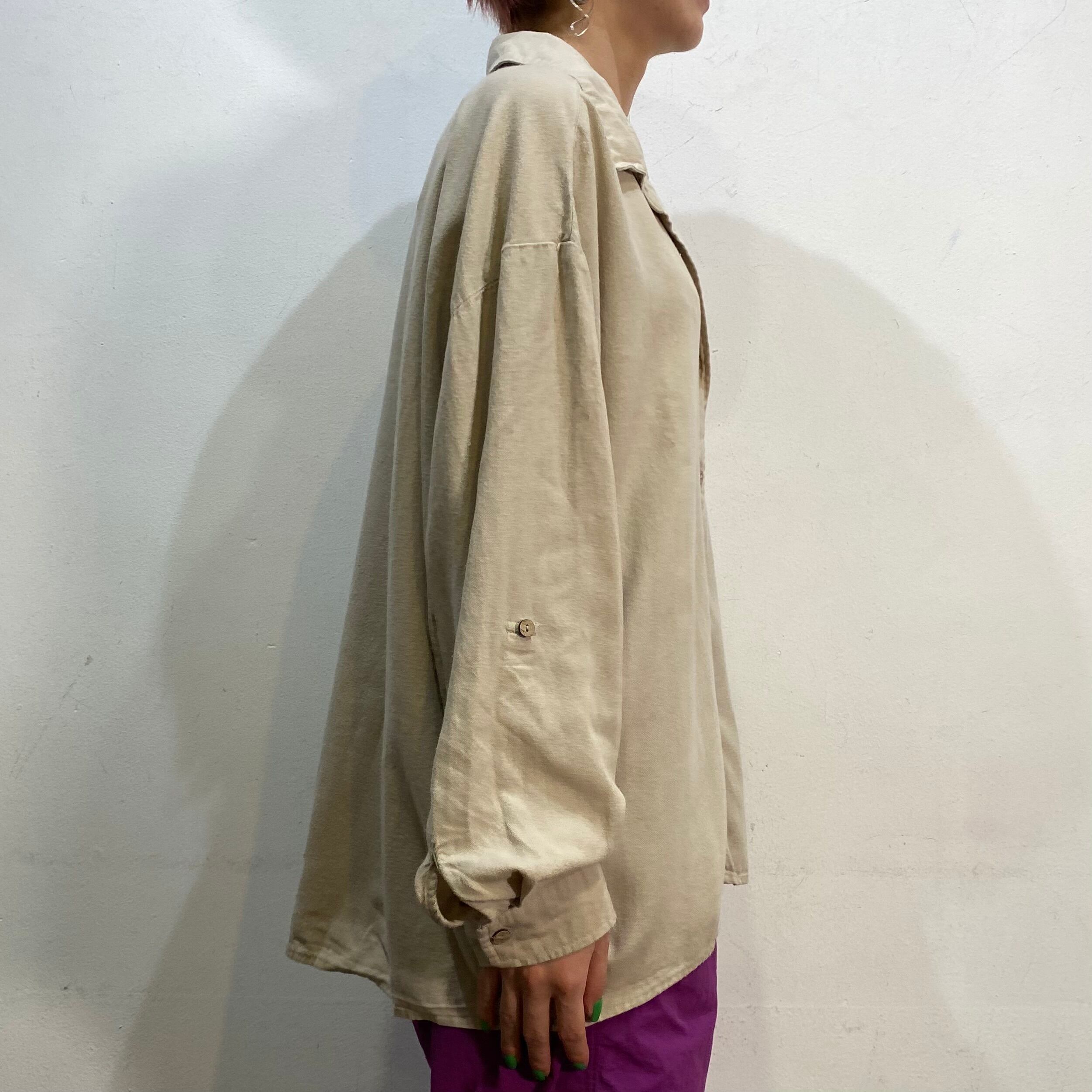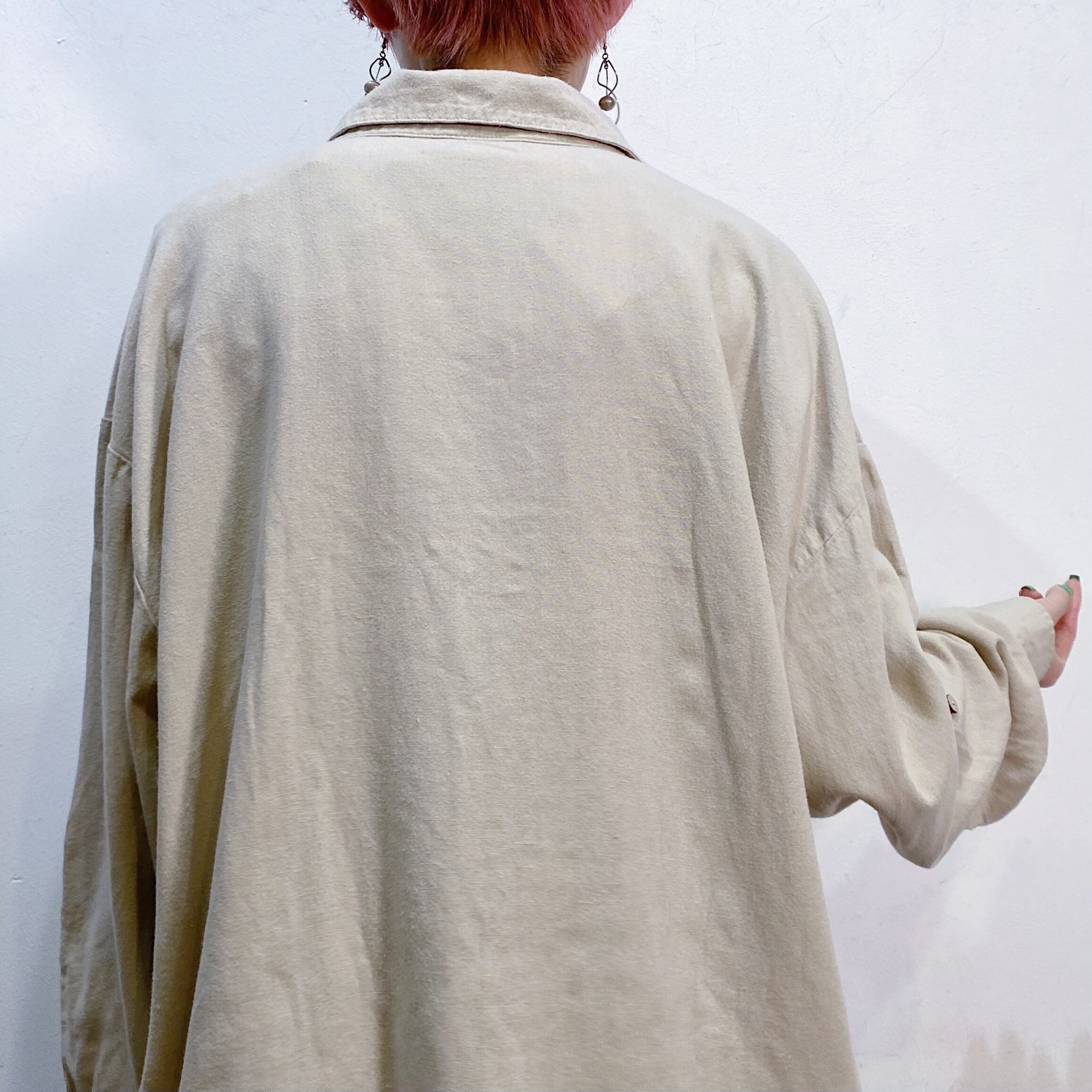 ライトベージュカラーで大変使い勝手のいいリネンシャツです。
