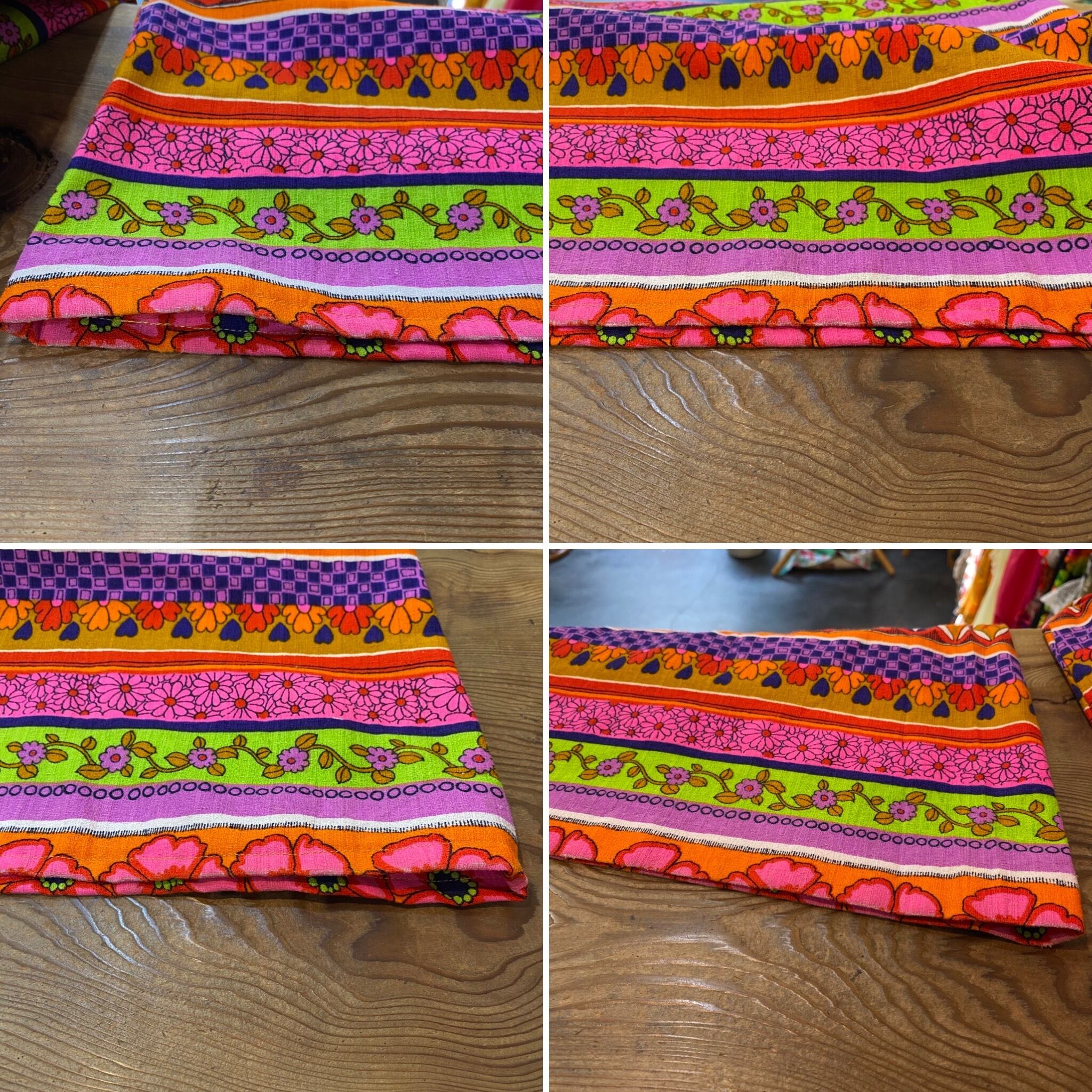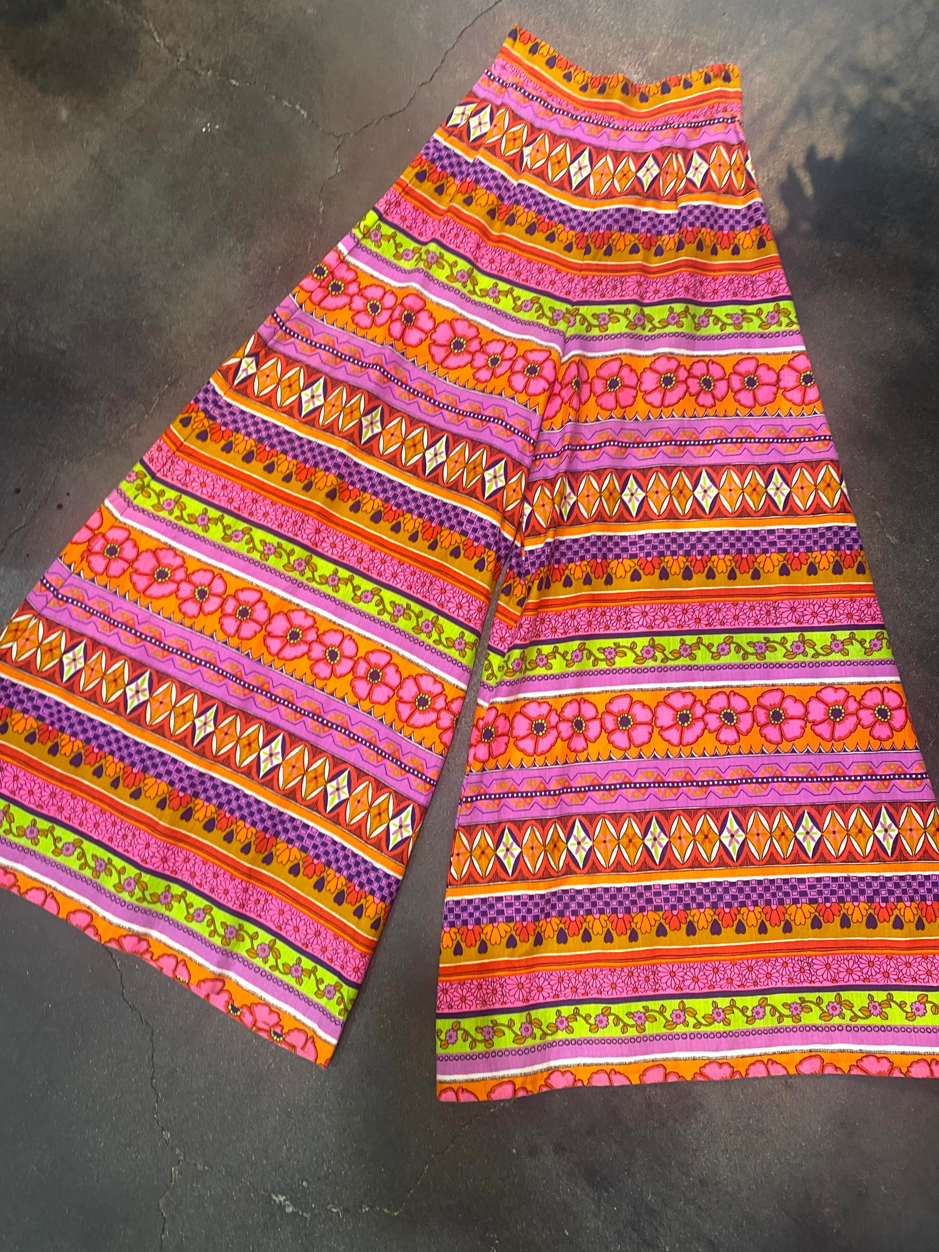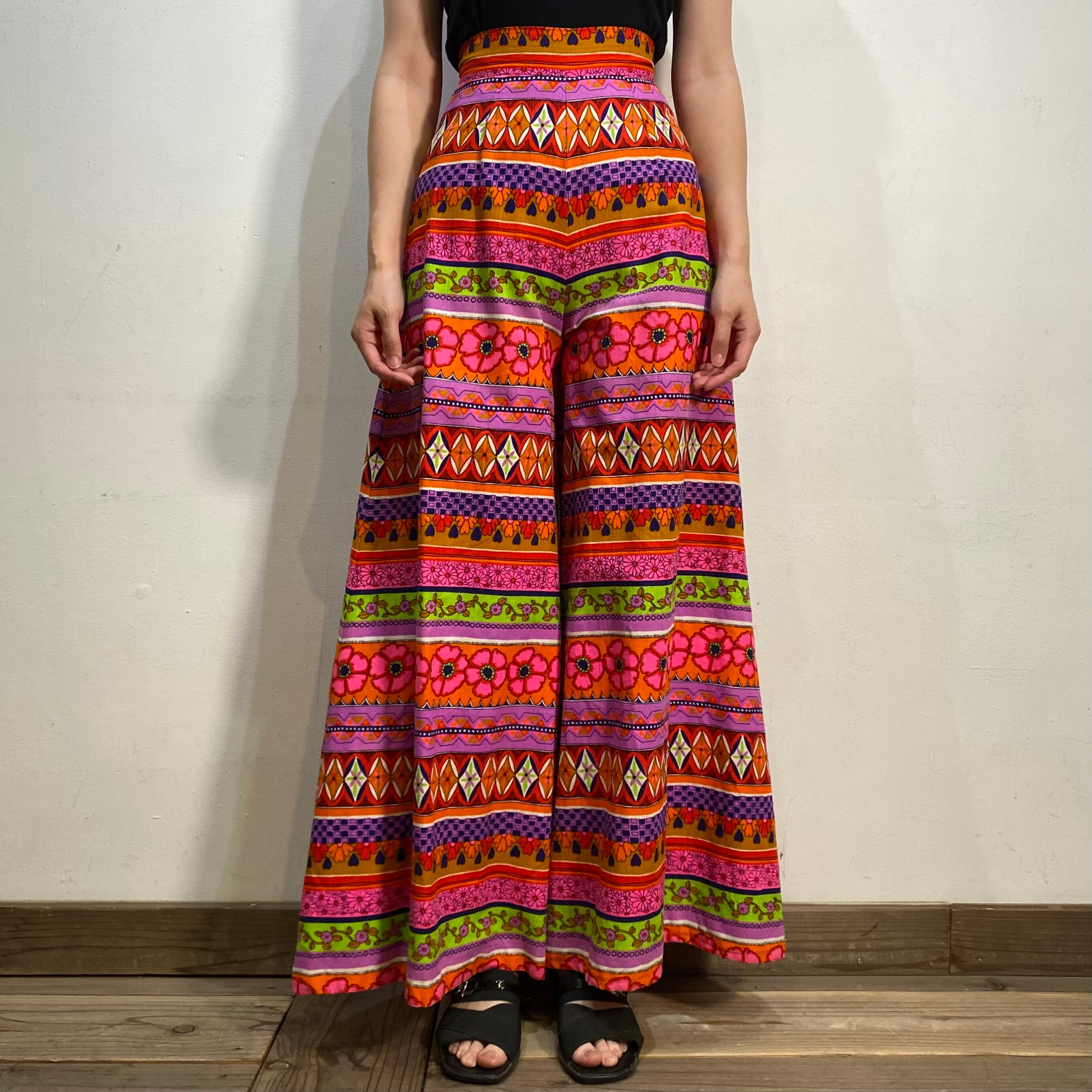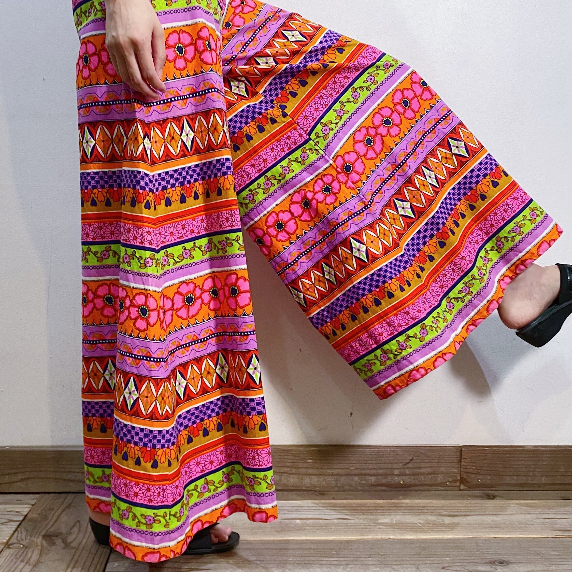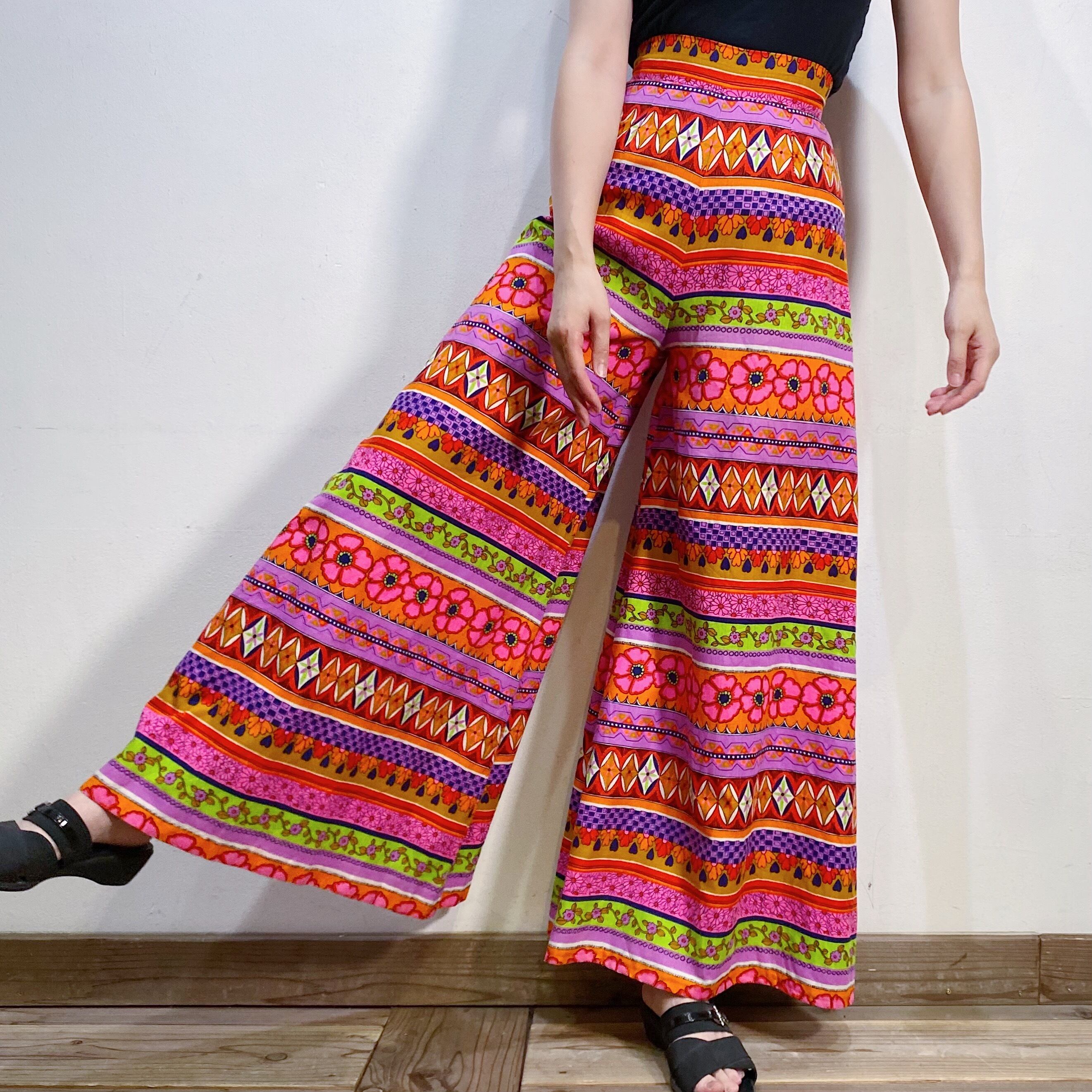 ピンクやオレンジのカラフルな色合わせが可愛い、70年代のパンツです。