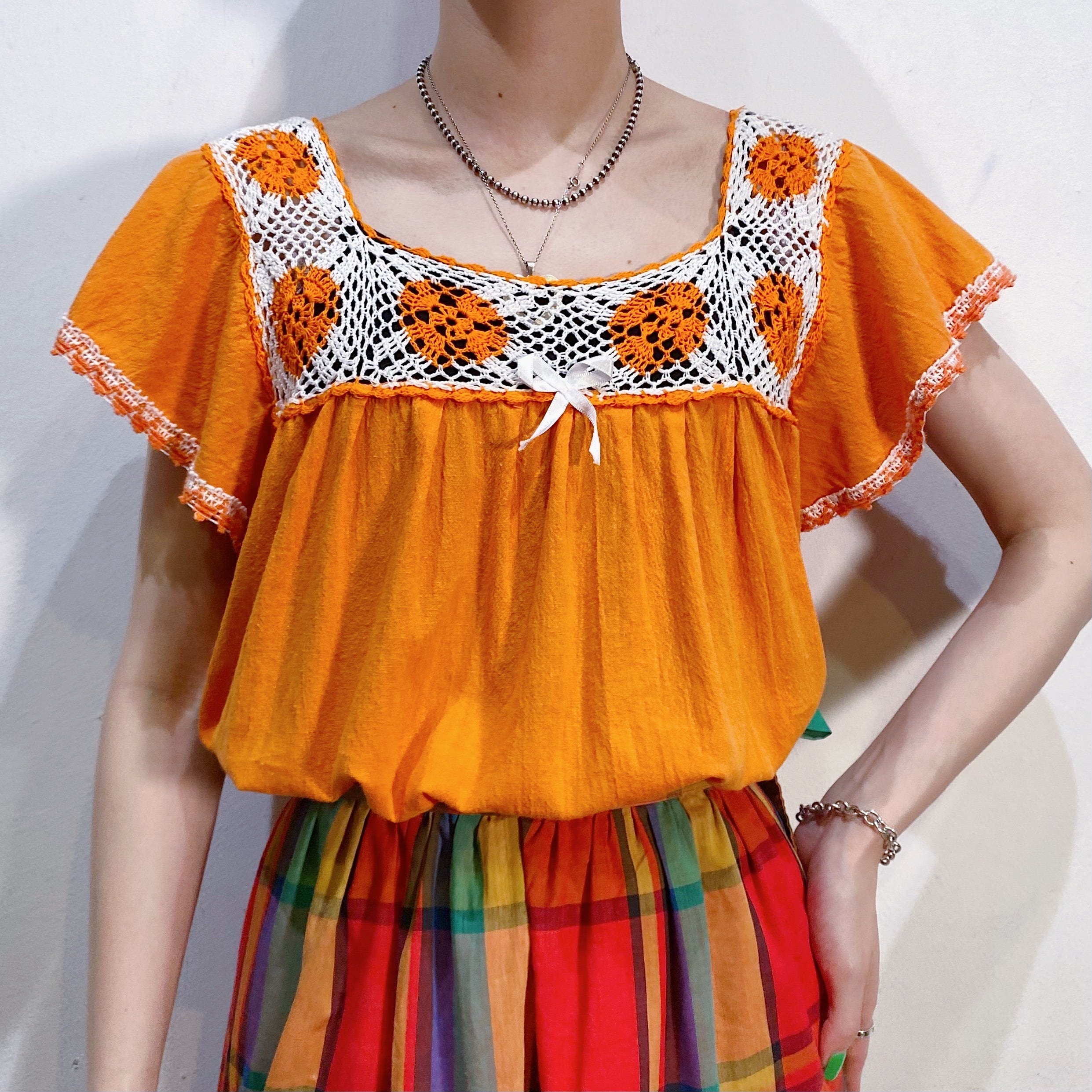 ハッピーなオレンジの色合いが可愛い、メキシコのガーゼチュニックです。
