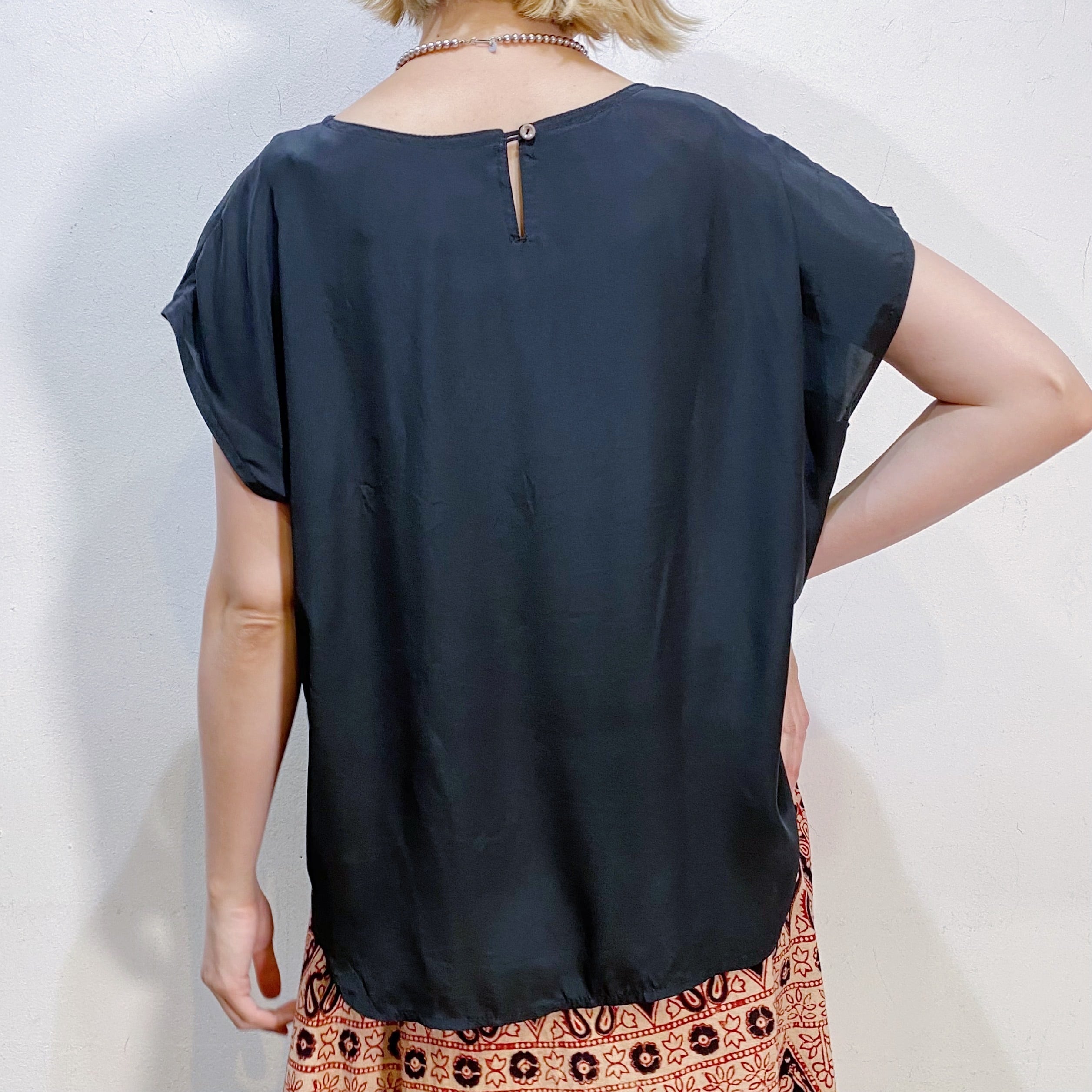 ブラックカラーで使い勝手の良い、半袖トップスです。