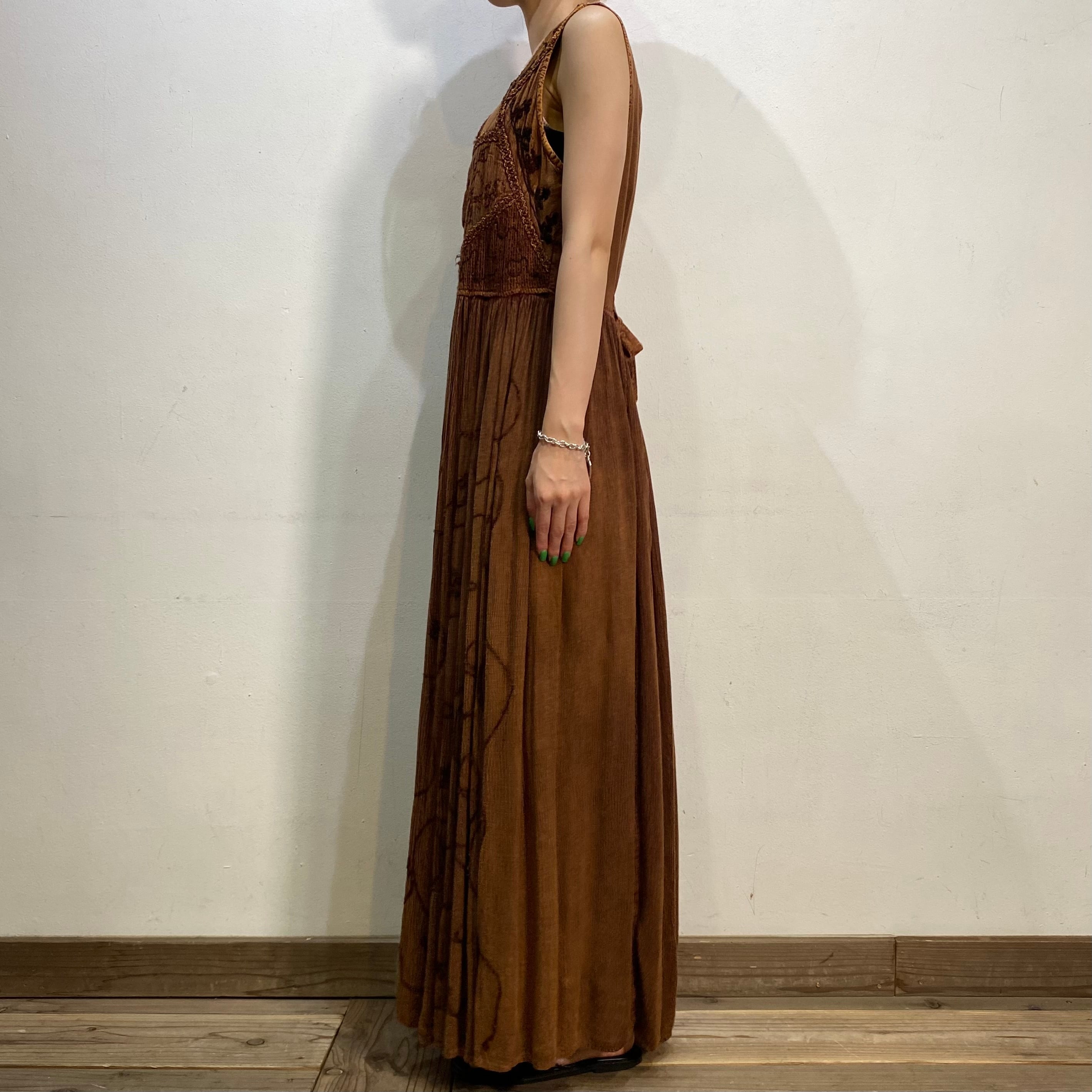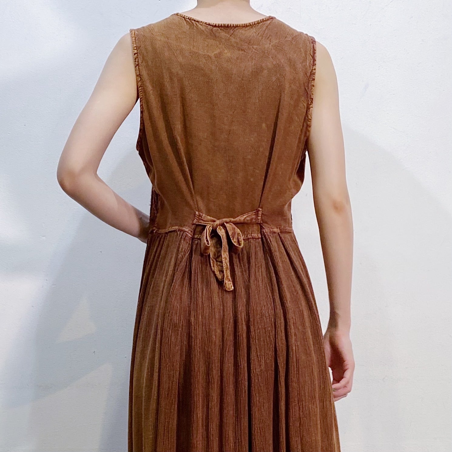 こっくりとした色合いのブラウンで着こなしやすい、インドレーヨンのノースリーブワンピースです。