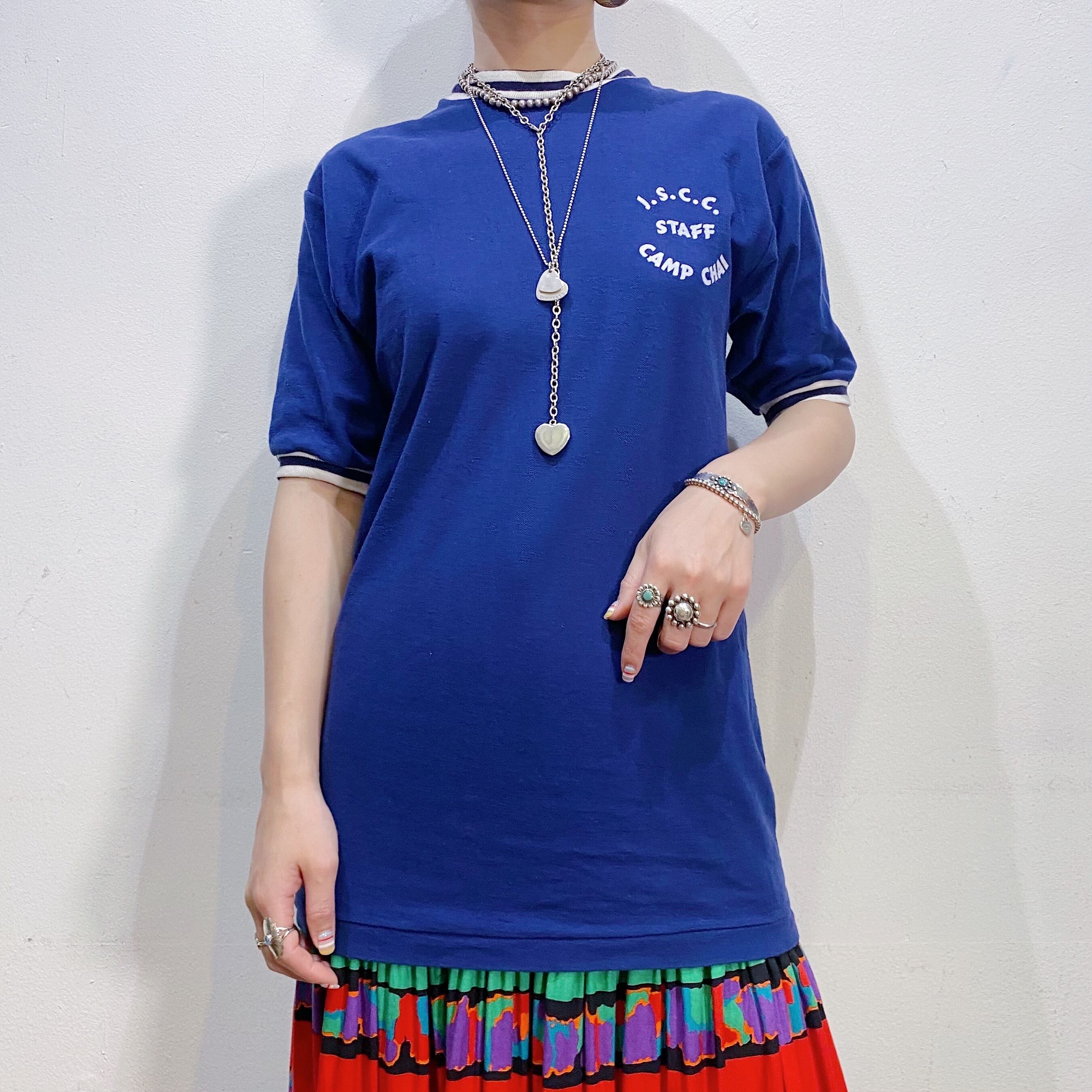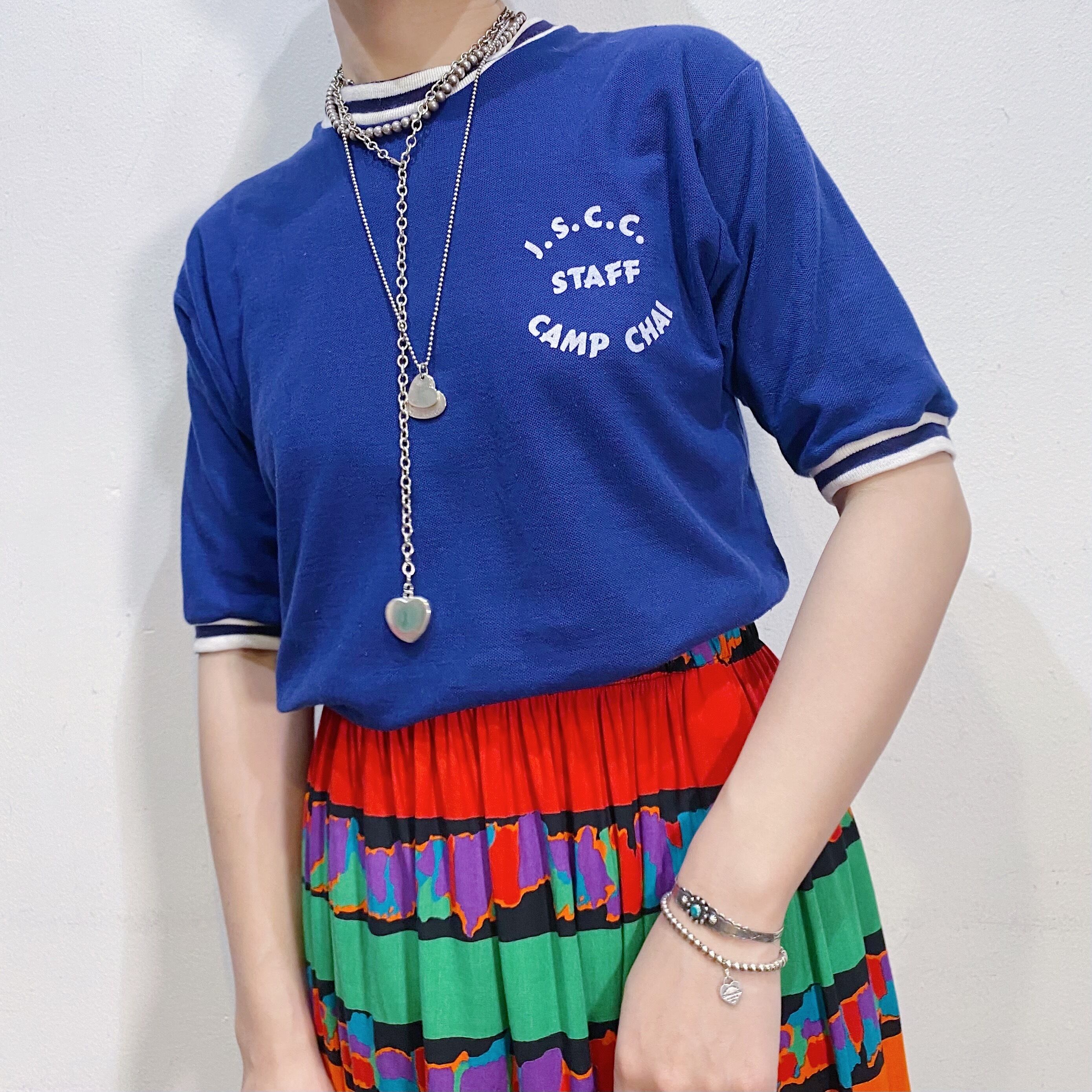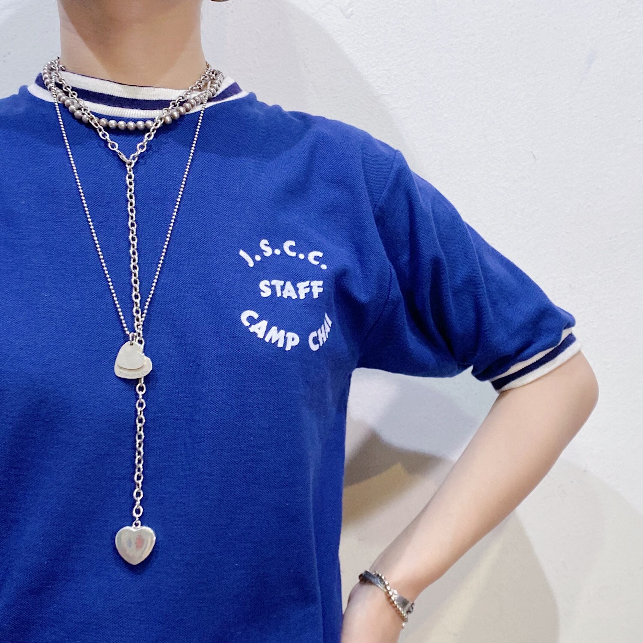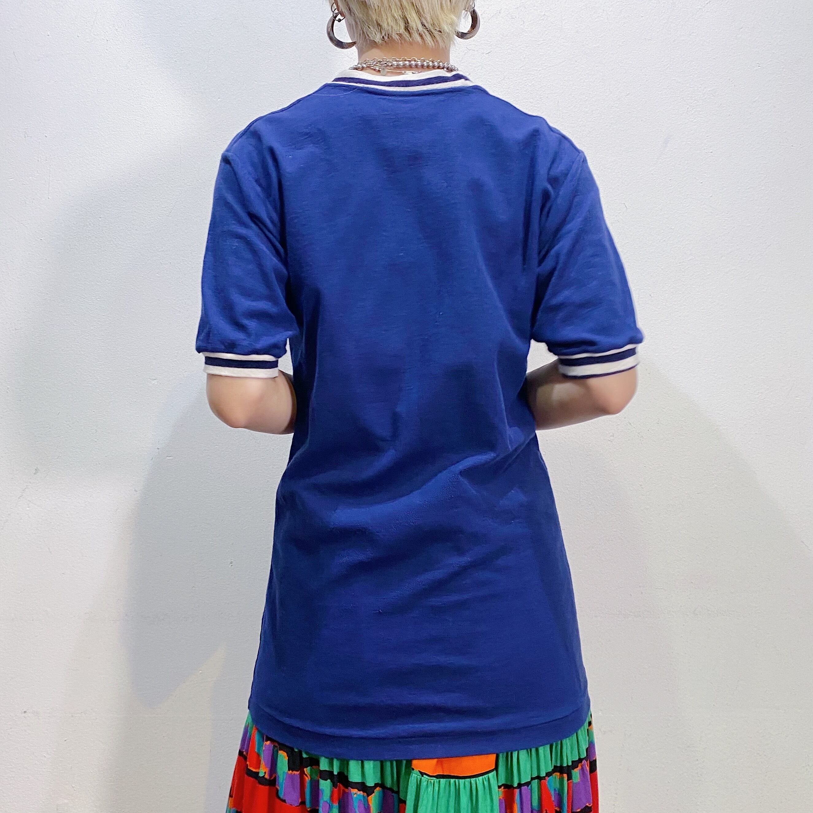 ネイビー×ホワイトの色合わせで着こなしやすい、70~80年代のTシャツです。