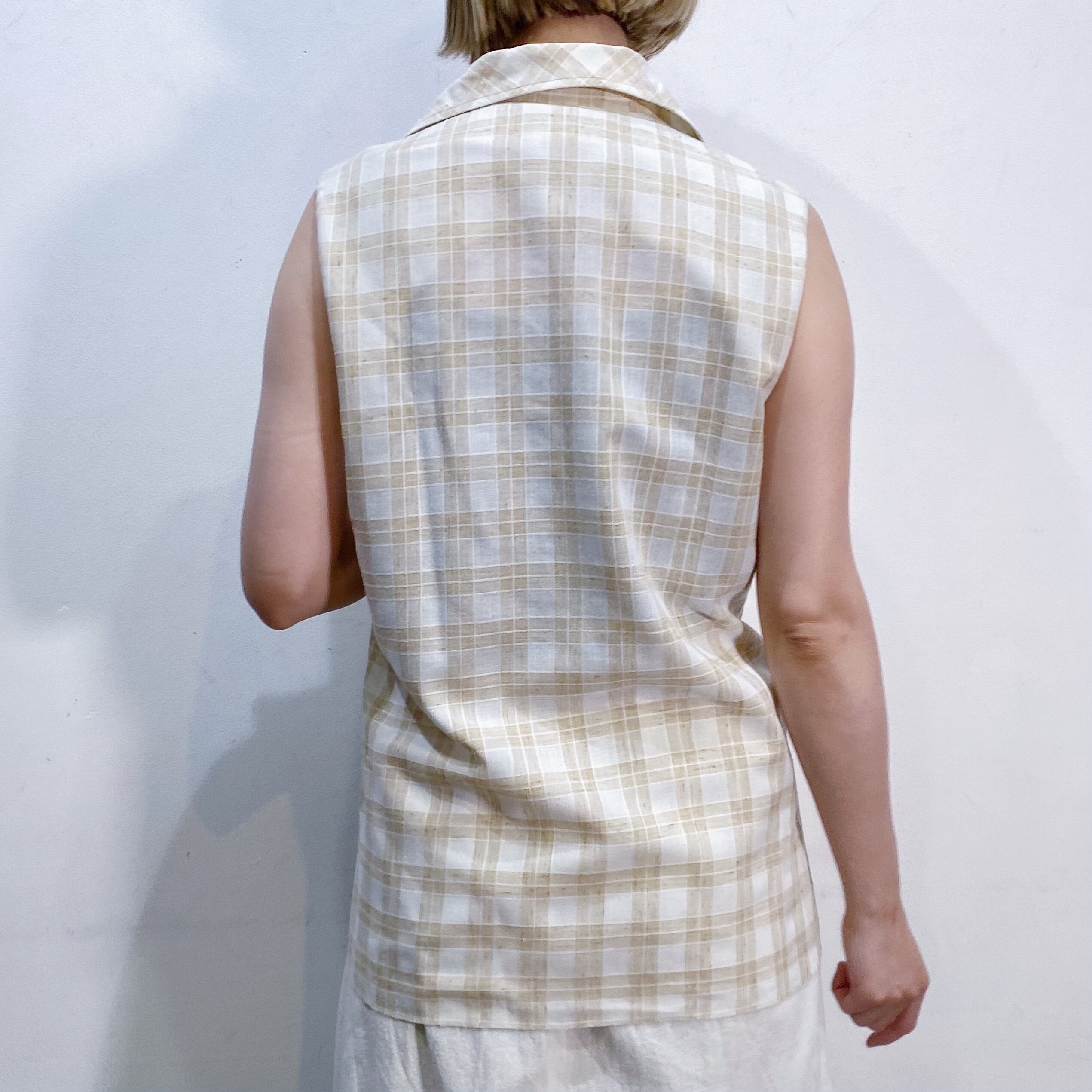 70s beige plaid sleeveless shirt
