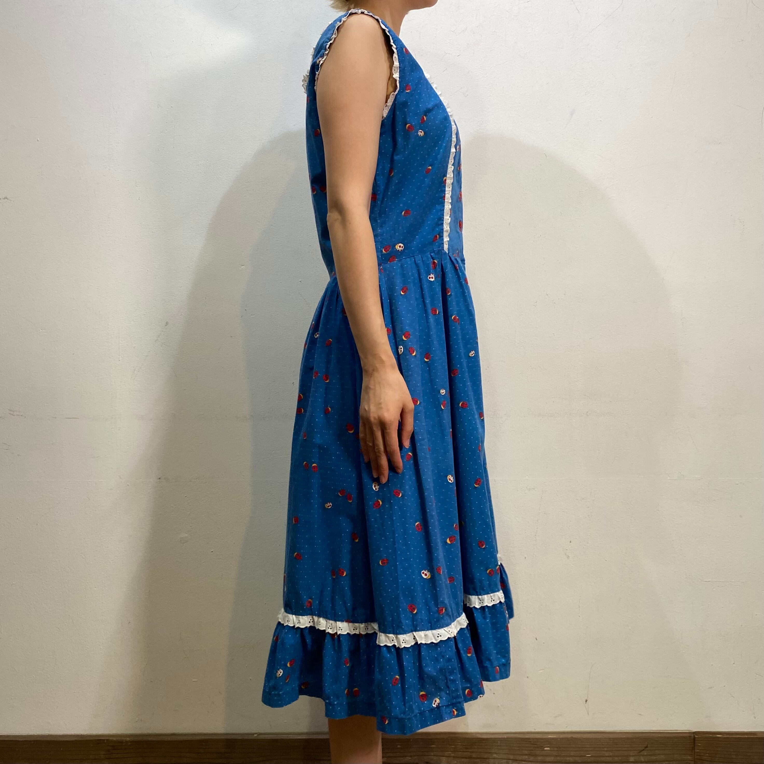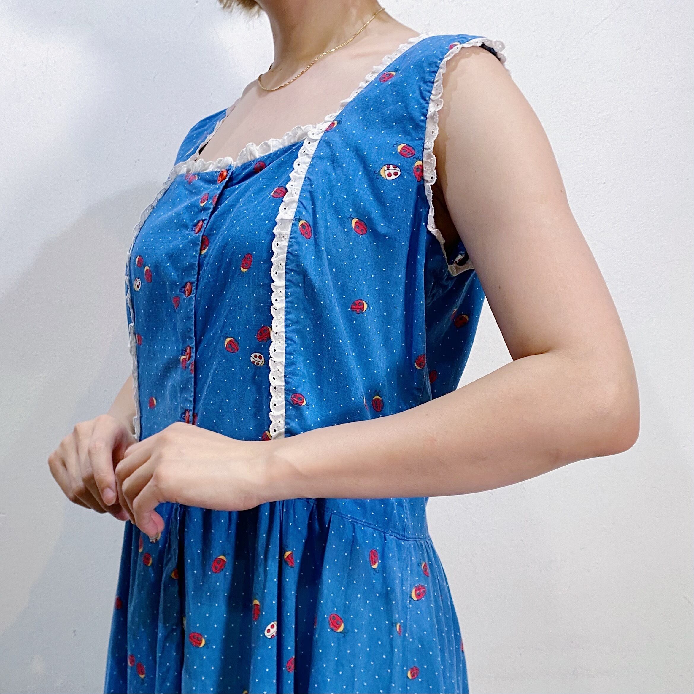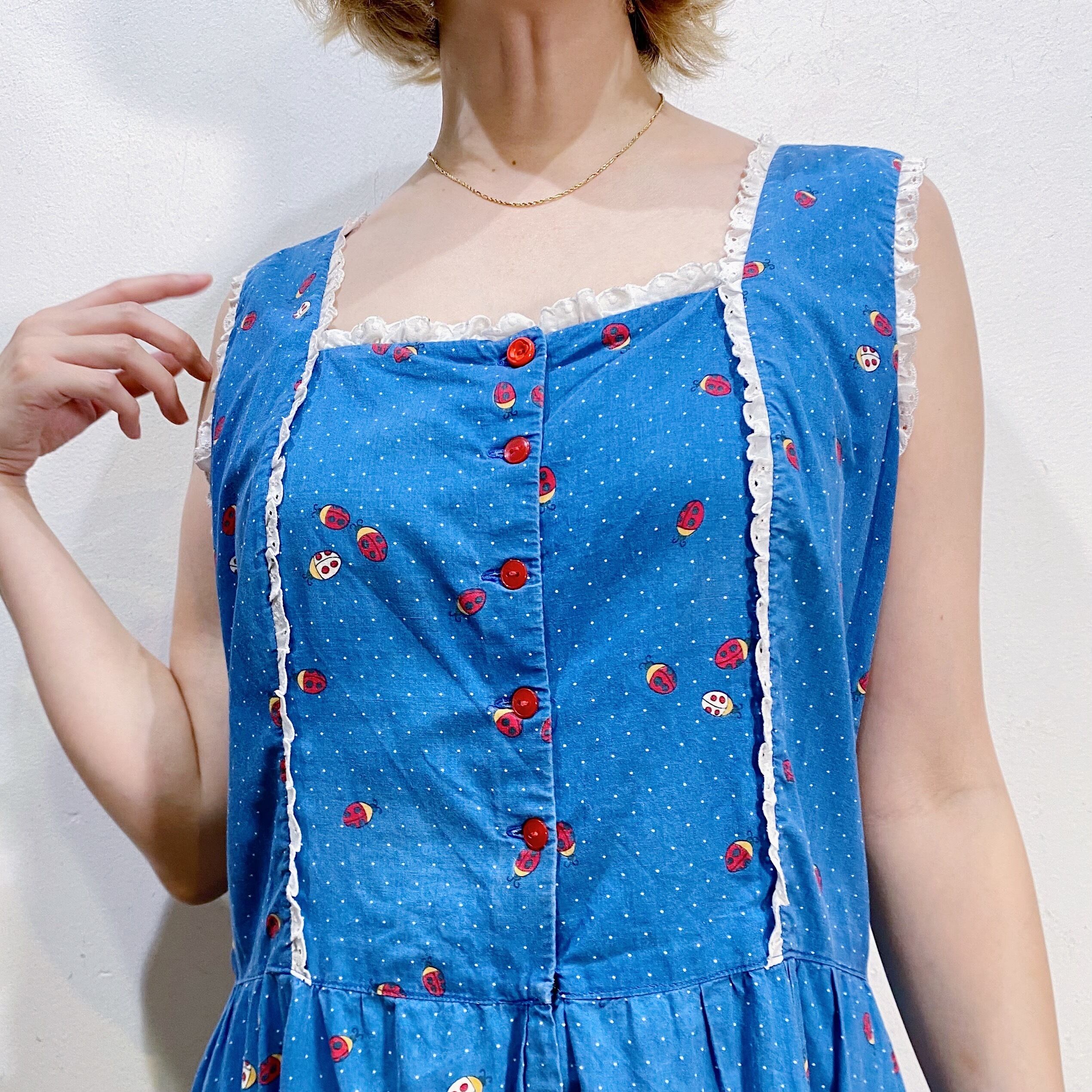 幸せを運ぶてんとう虫柄が可愛い、70年代のジャンパーワンピースです。