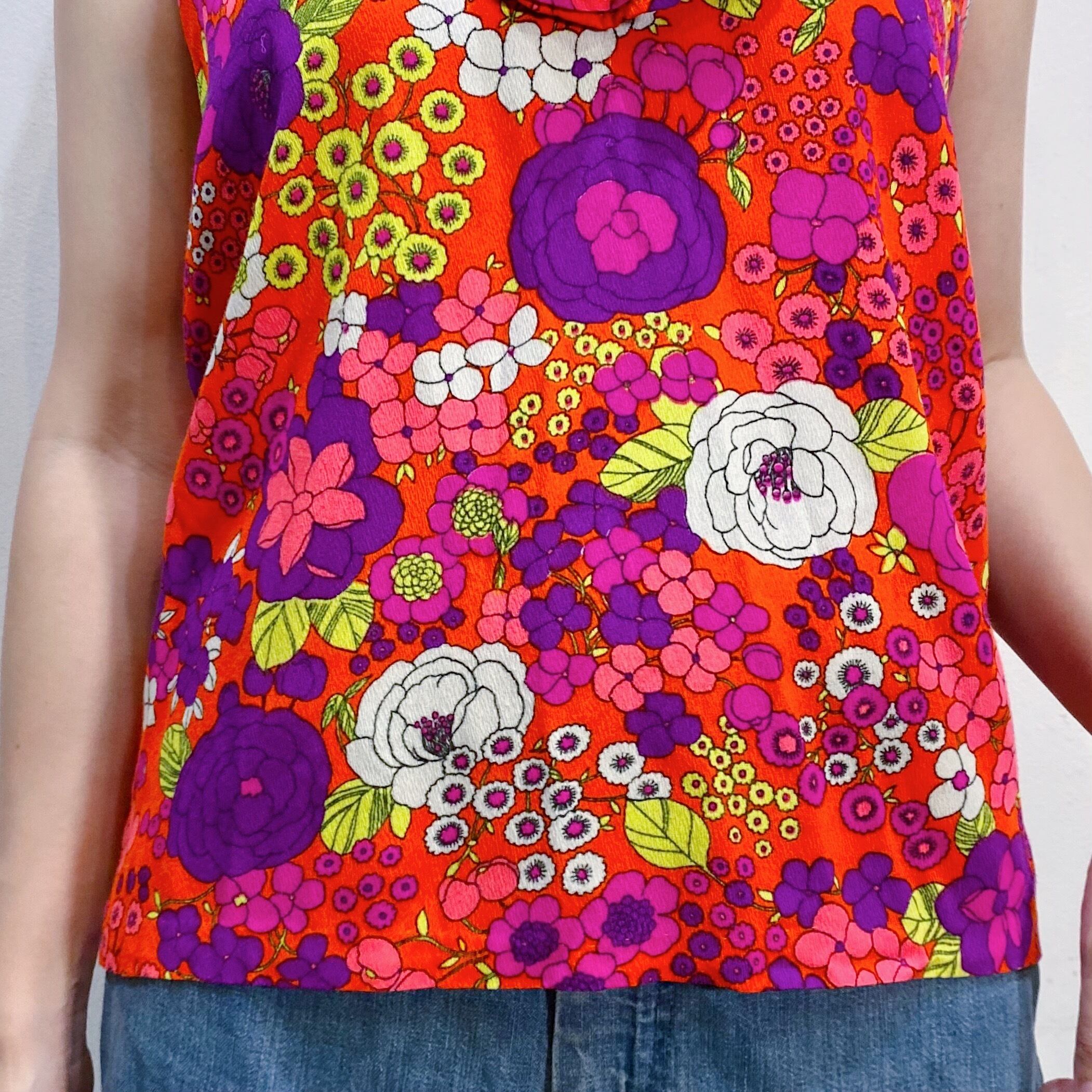 サイケデリックで華やかな色合いが可愛い、70年代のノースリーブトップスです。