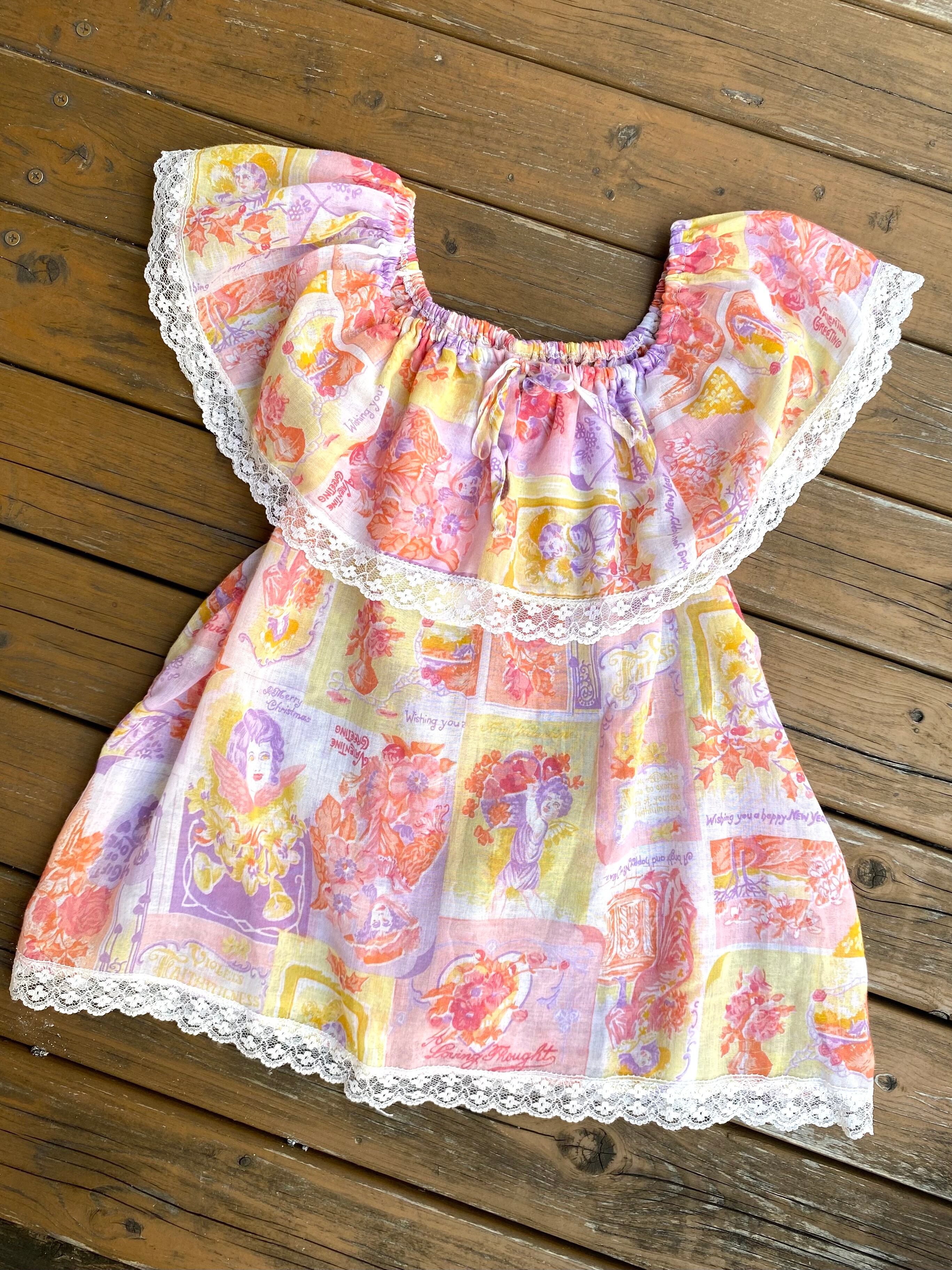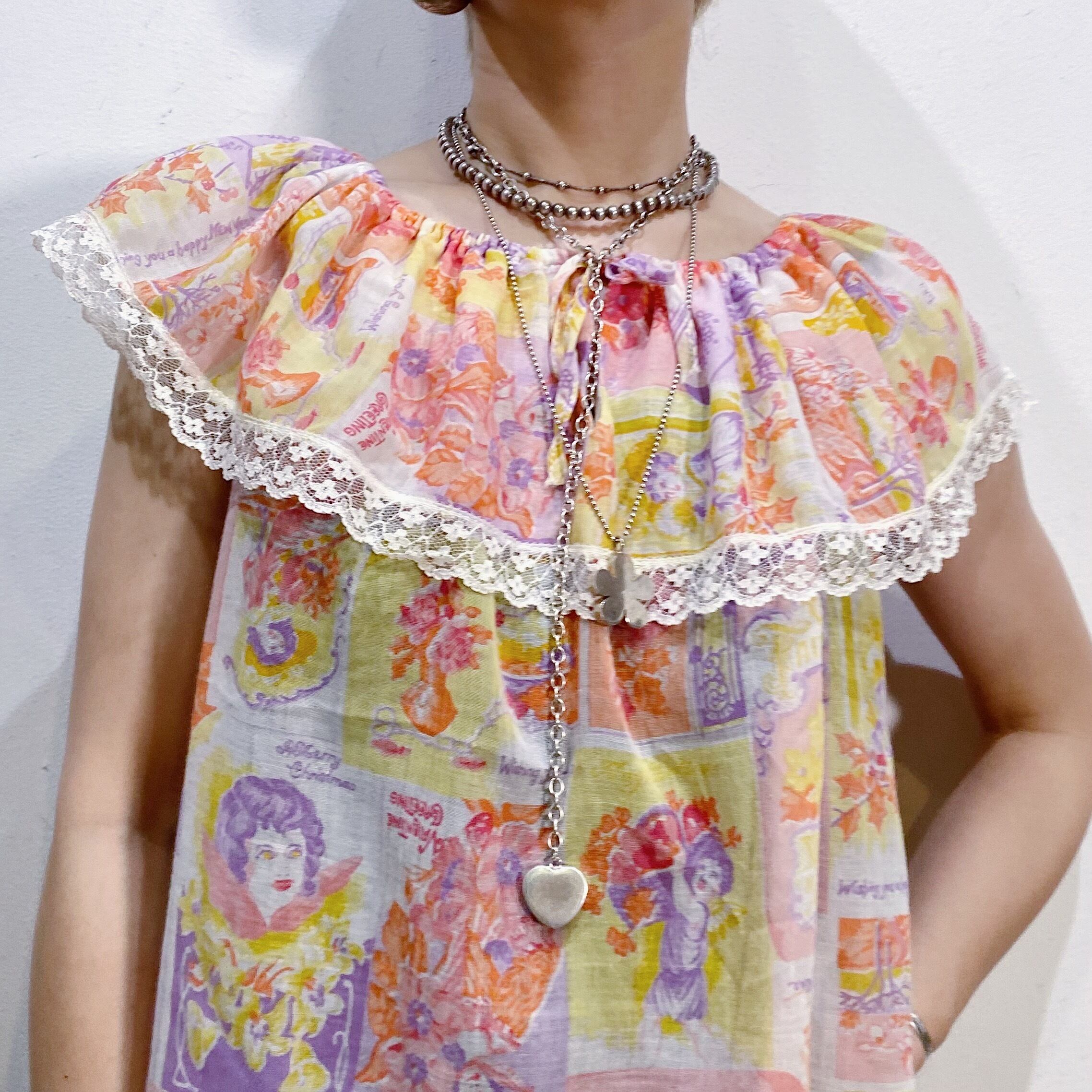 いろんな天使たちのプリント柄がとっても可愛い、70年代のトップスです。