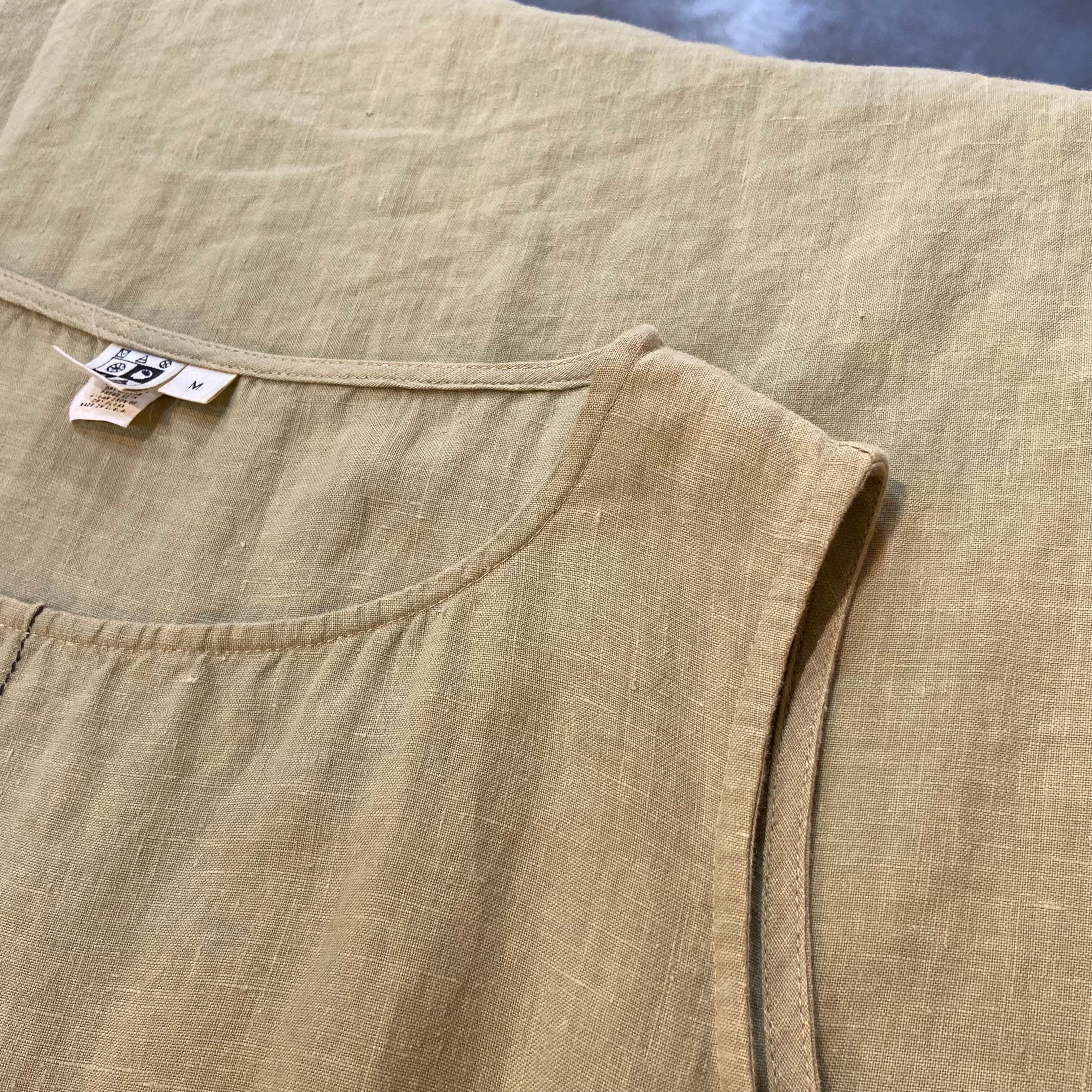 olive linen sleeveless long dress