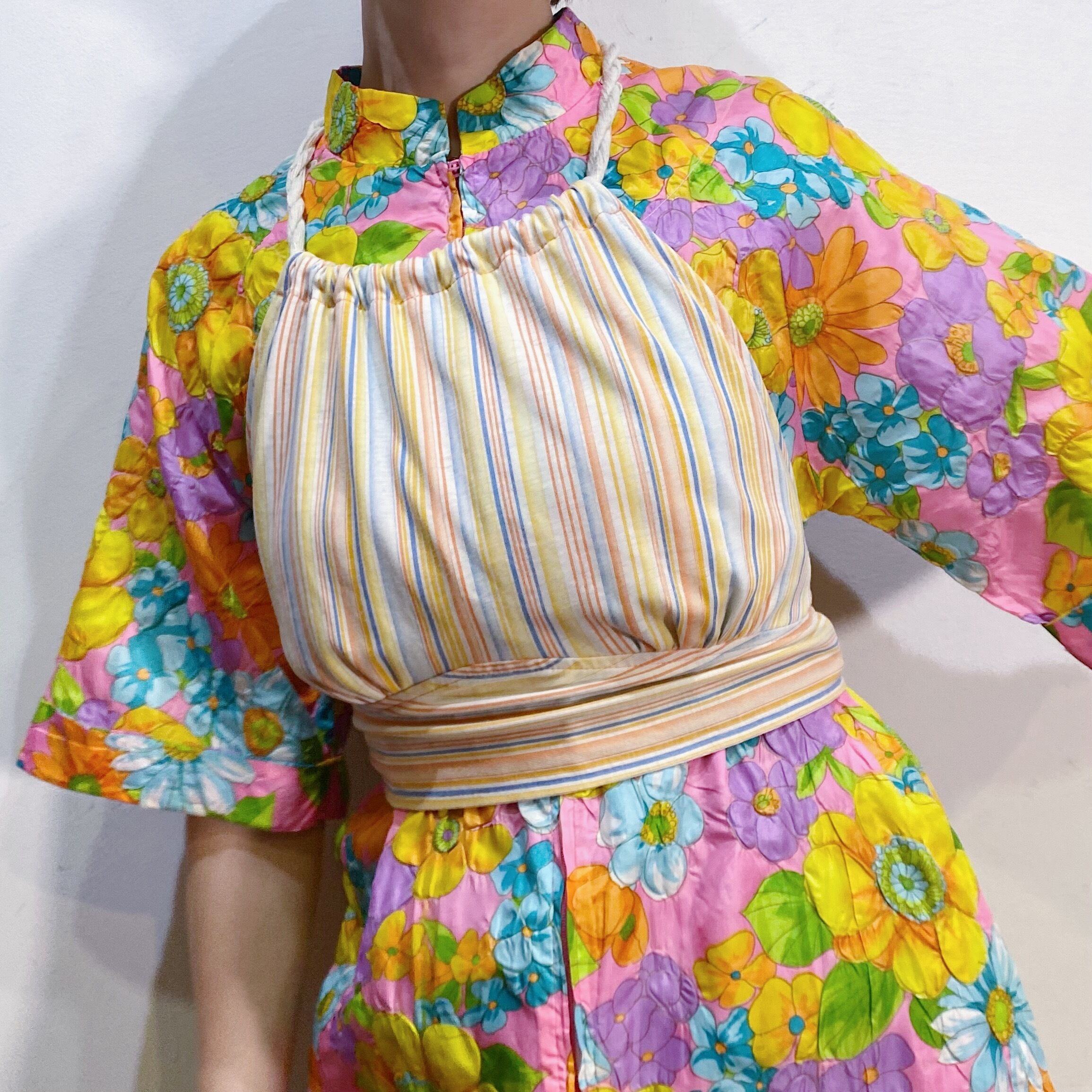 オレンジやイエロー、ブルーのストライプが可愛い、70年代のブラトップです。