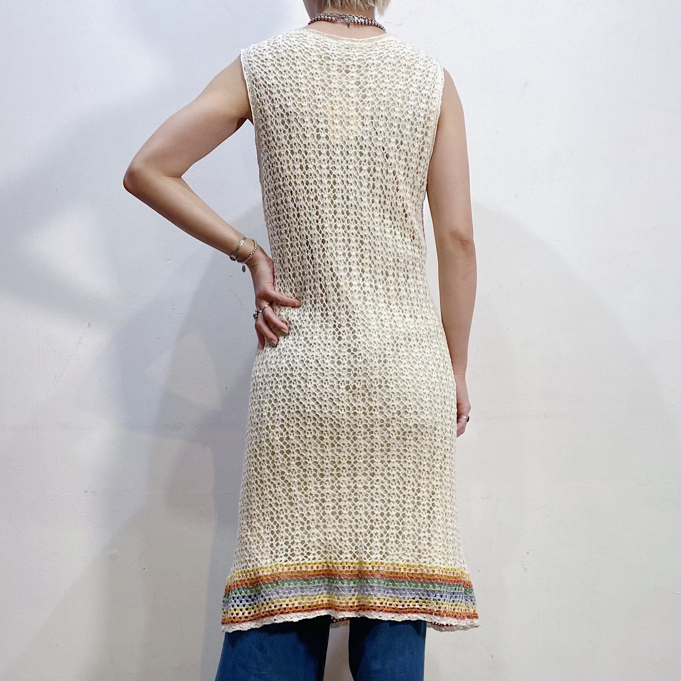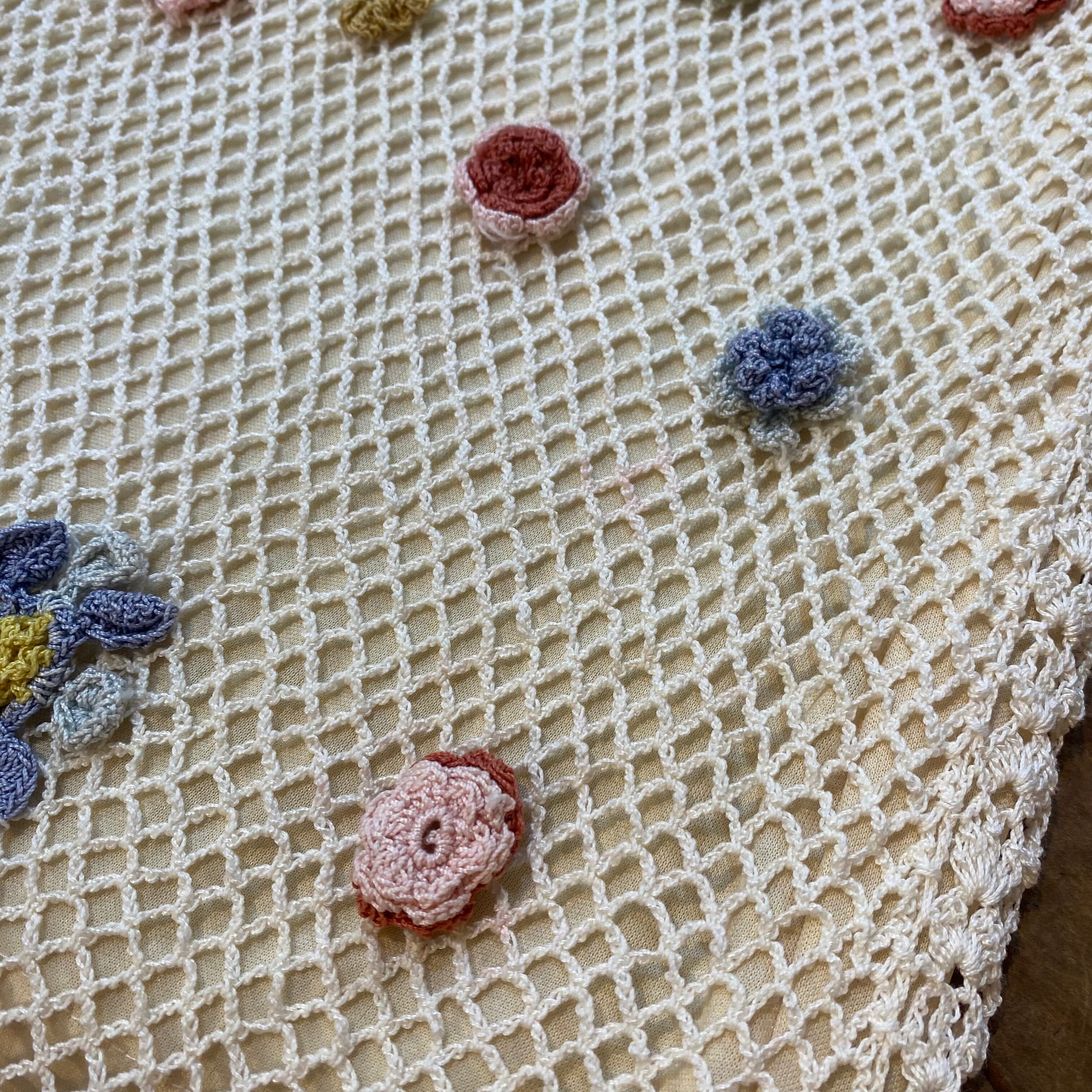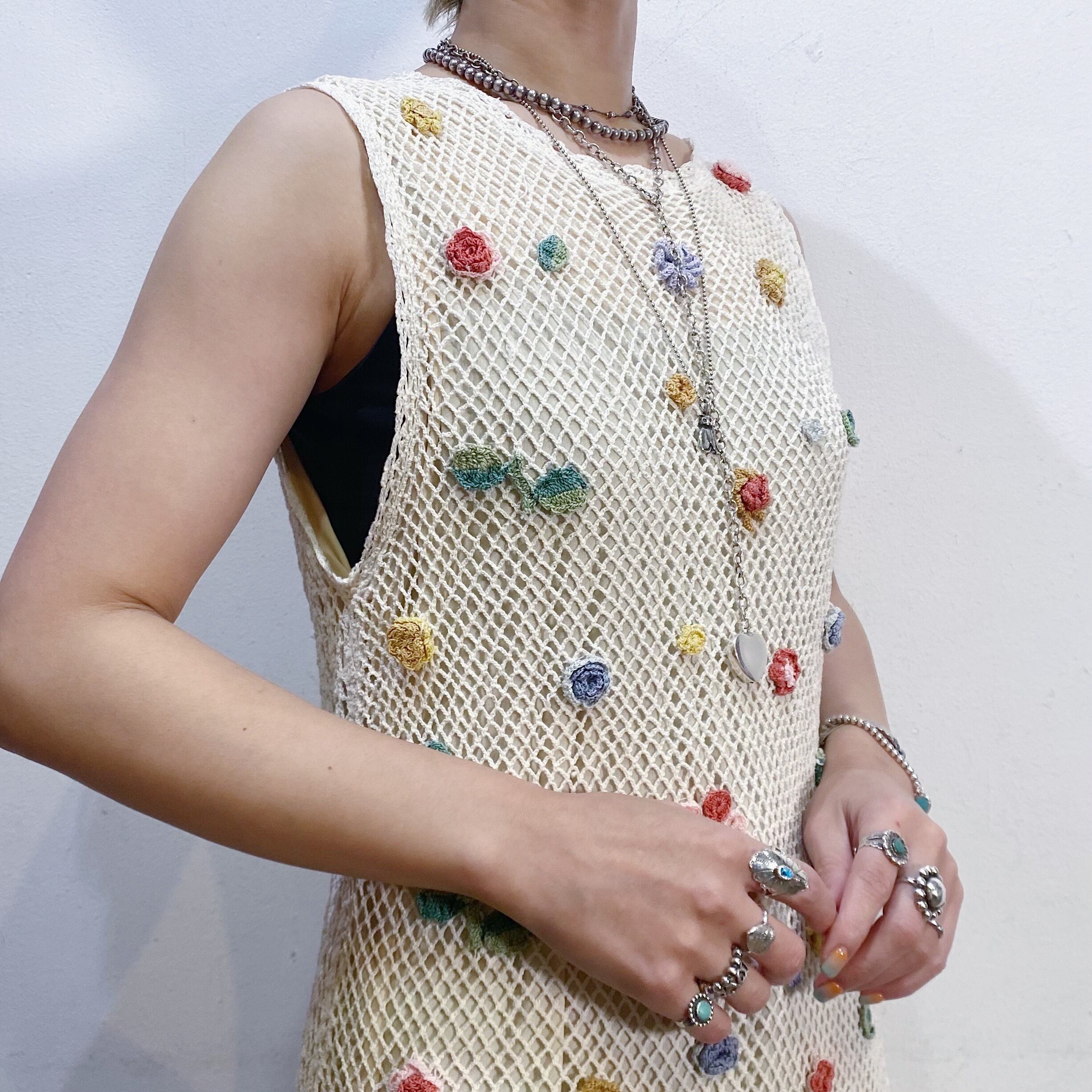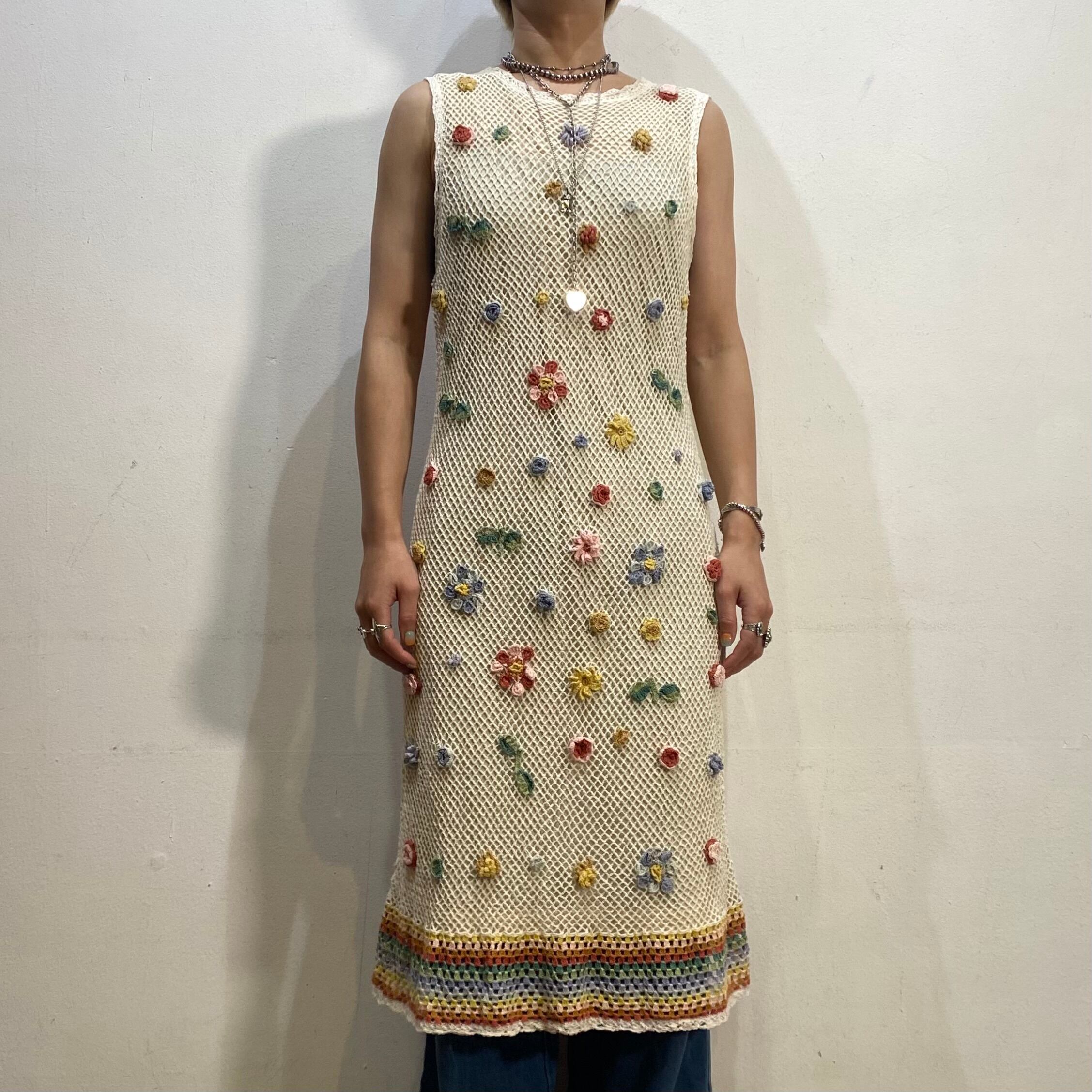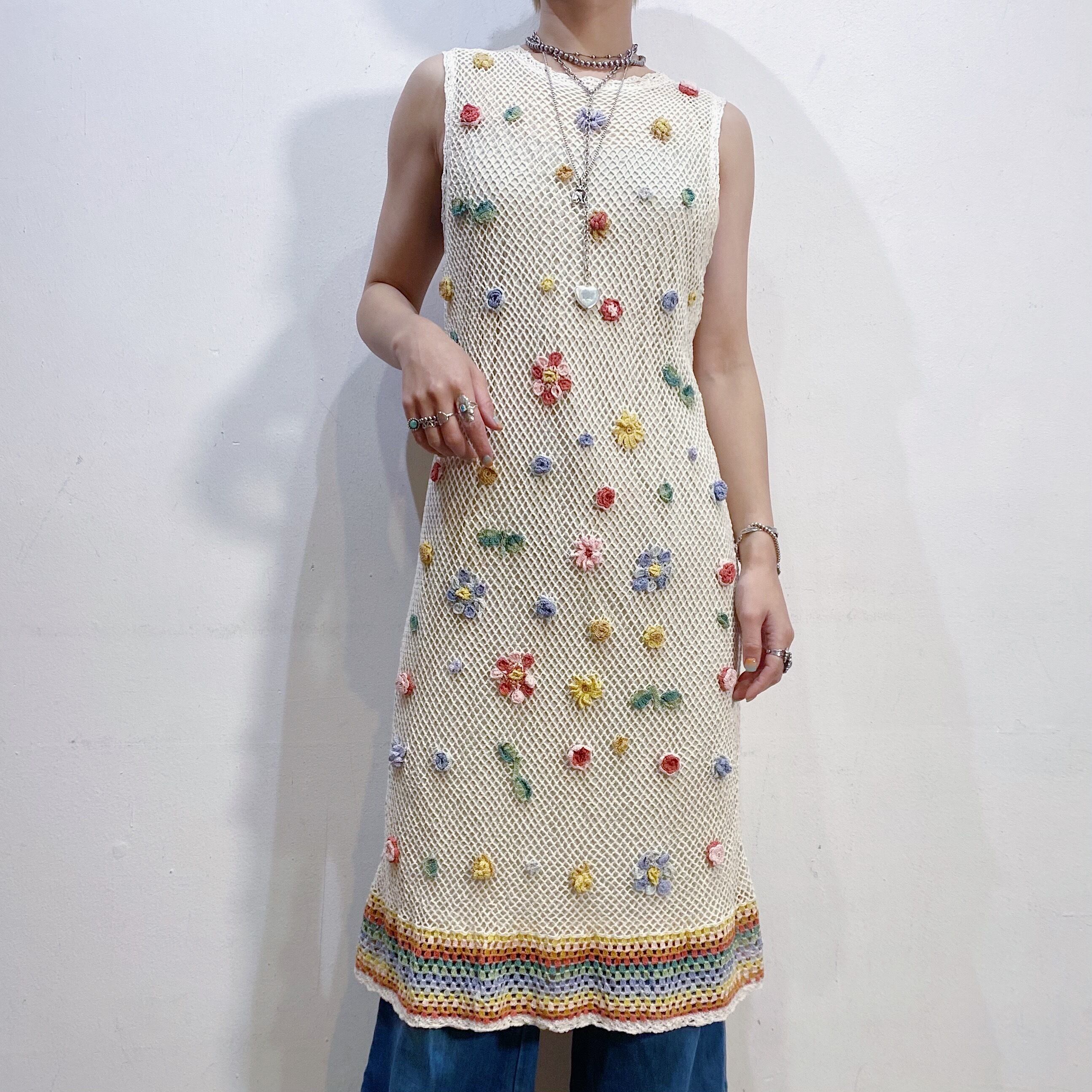 カラフルで立体的なお花モチーフが可愛い、クロシェワンピースです。
