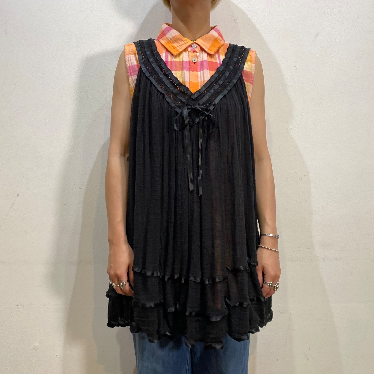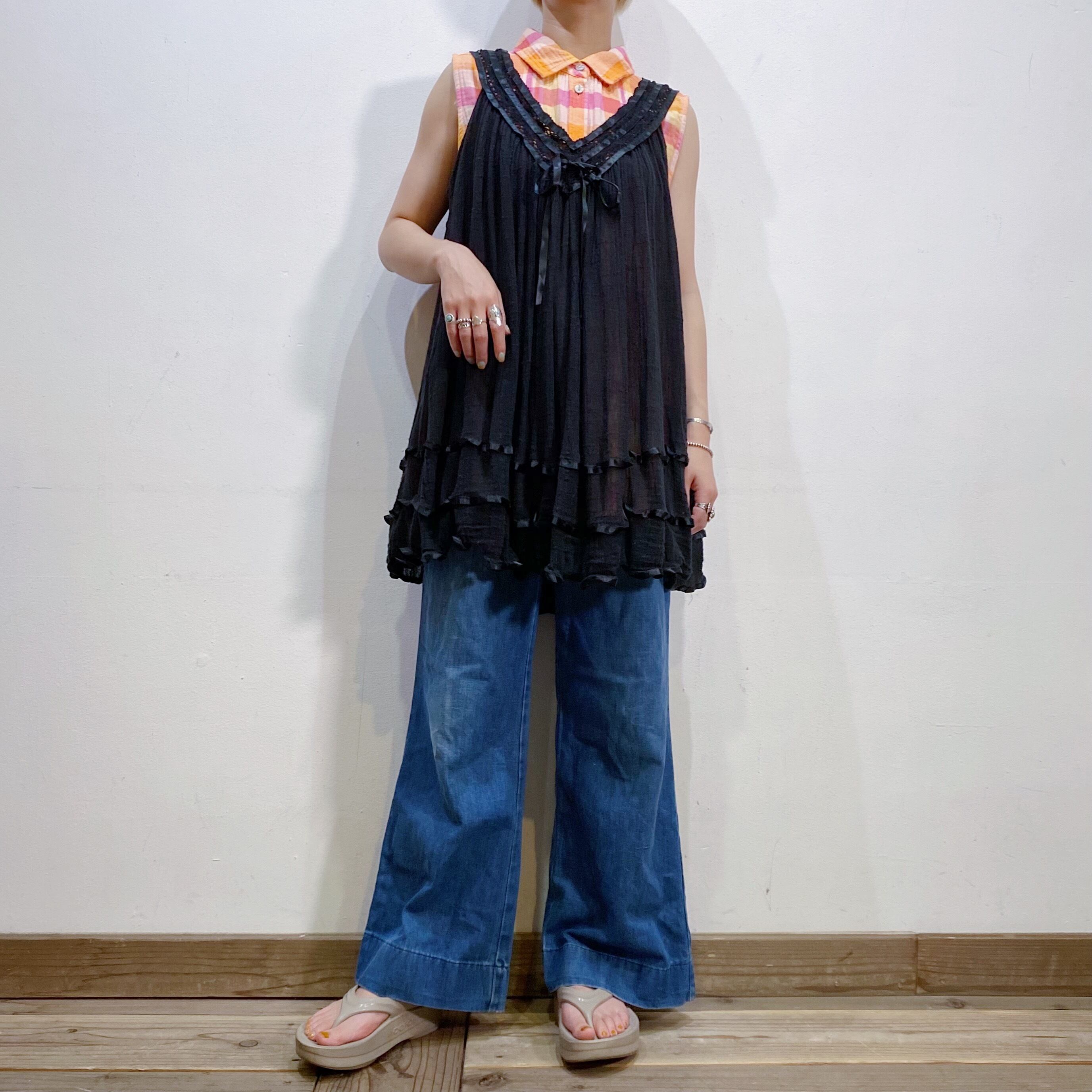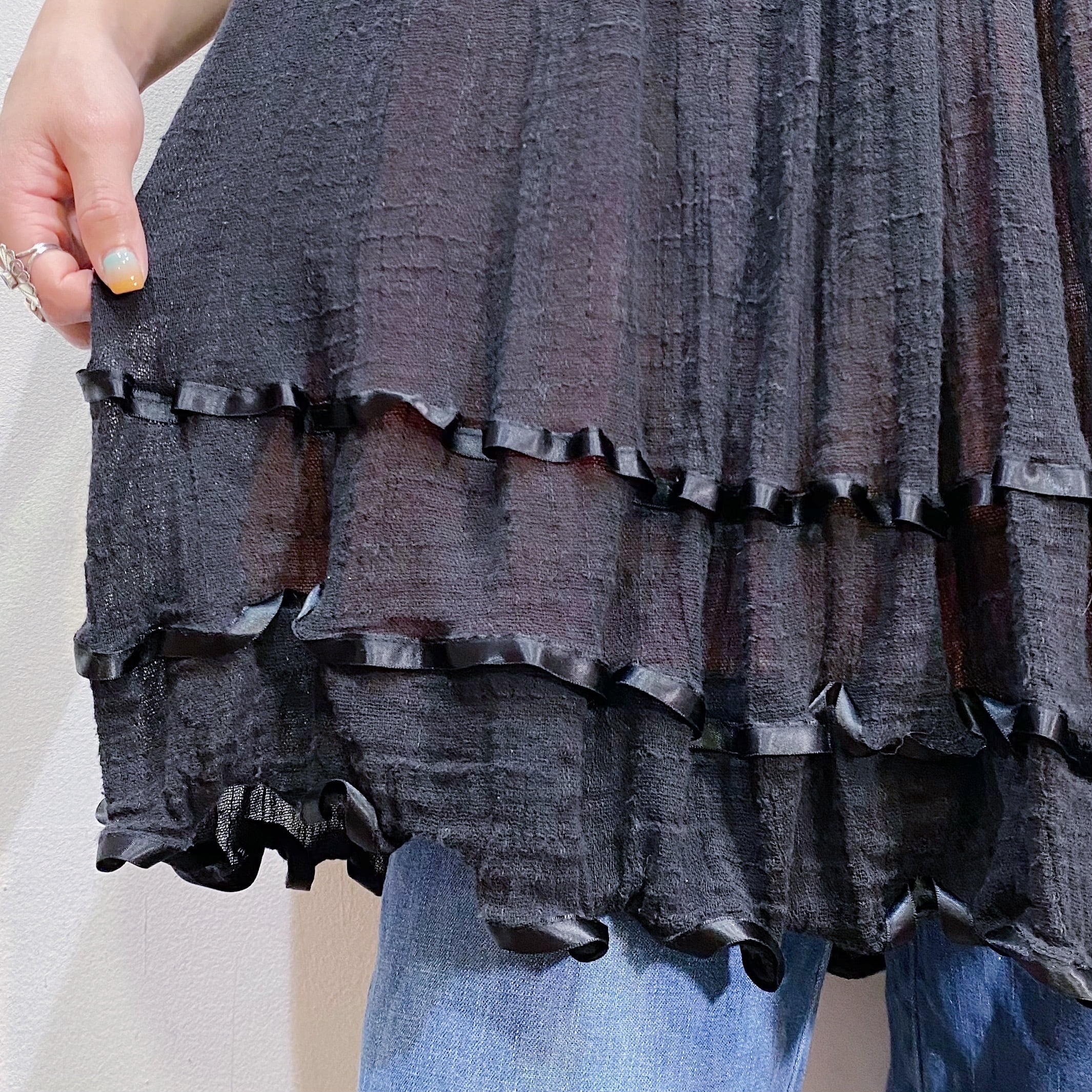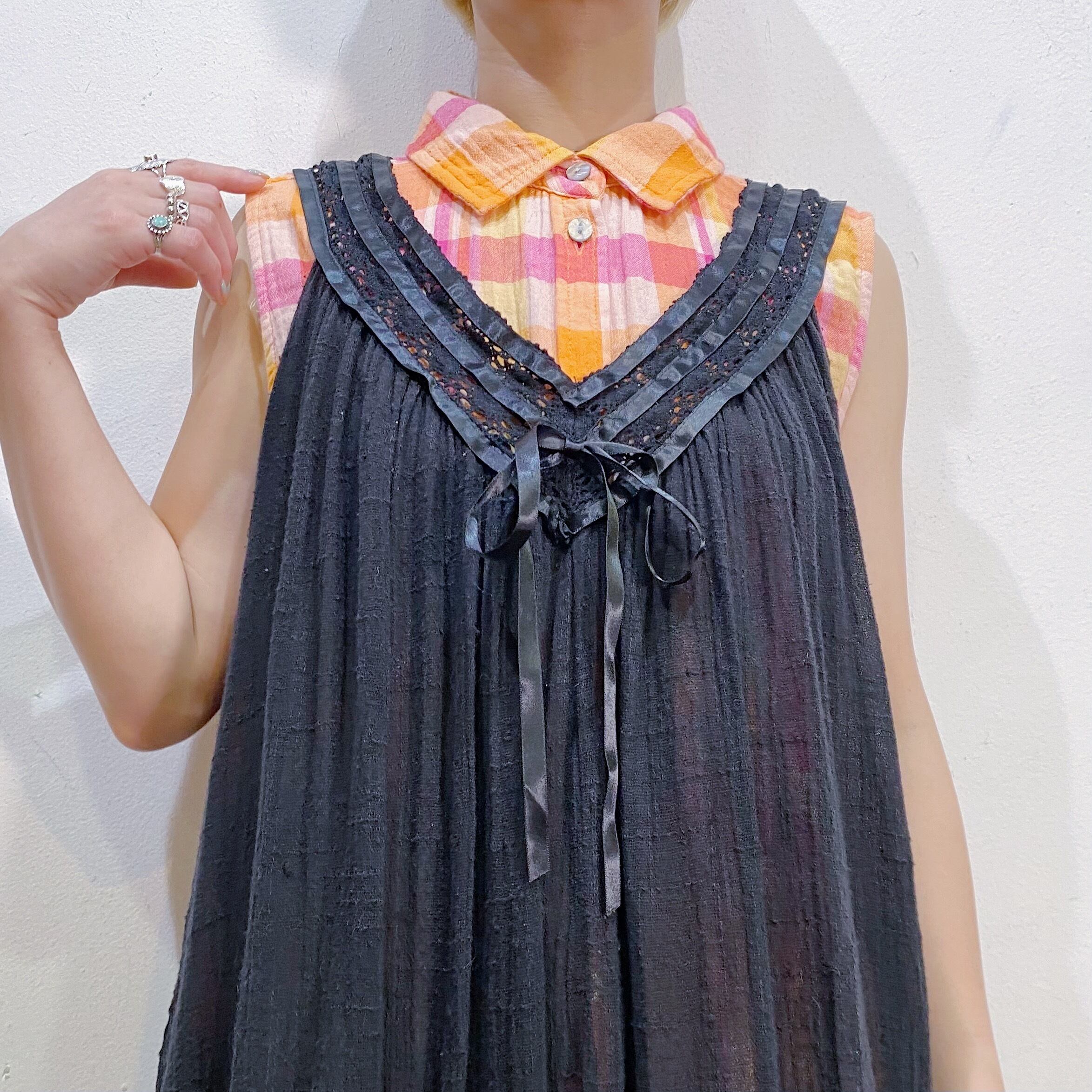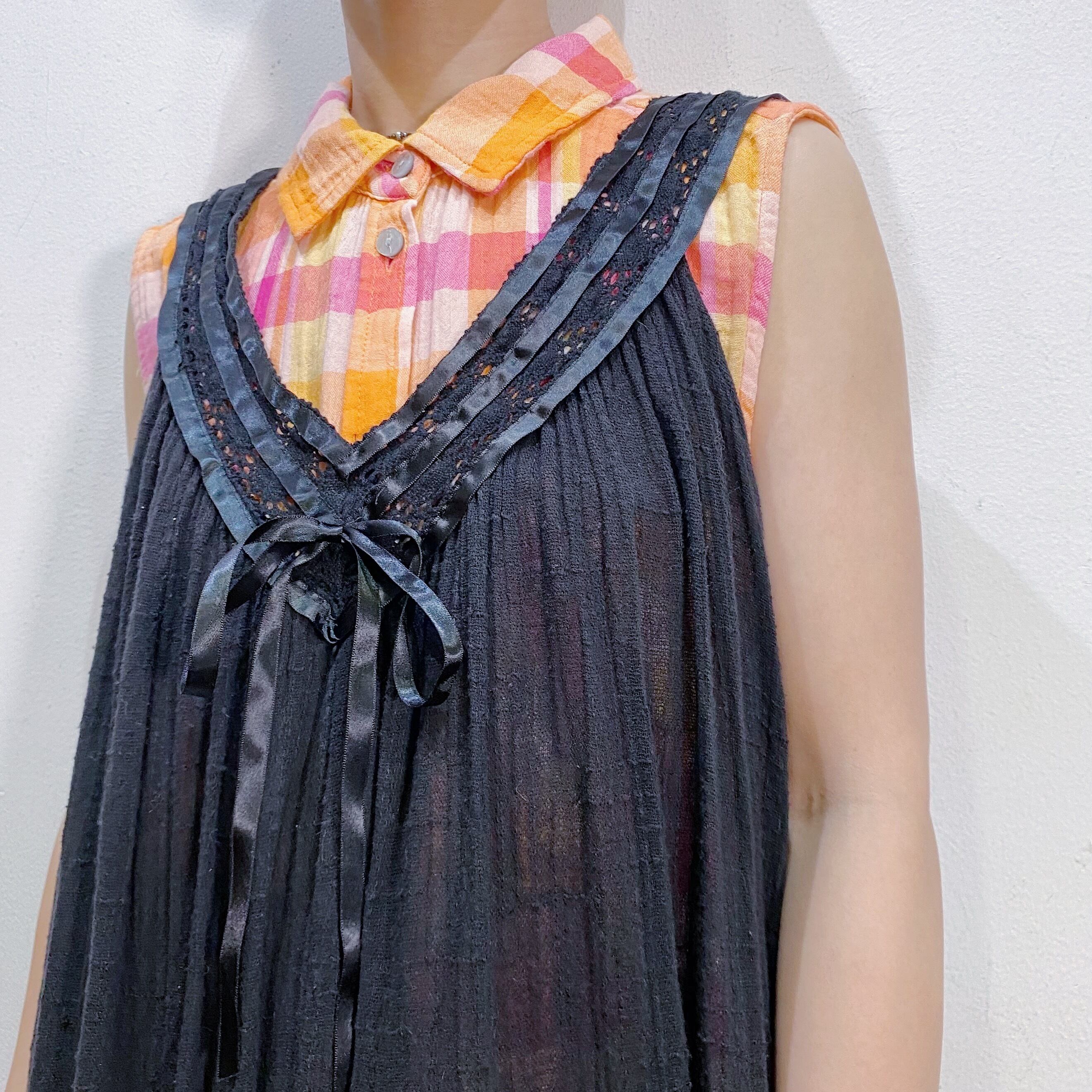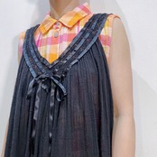 胸元のクロシェ編みにサテンのリボンテープデザインもとってもキュートな一枚。