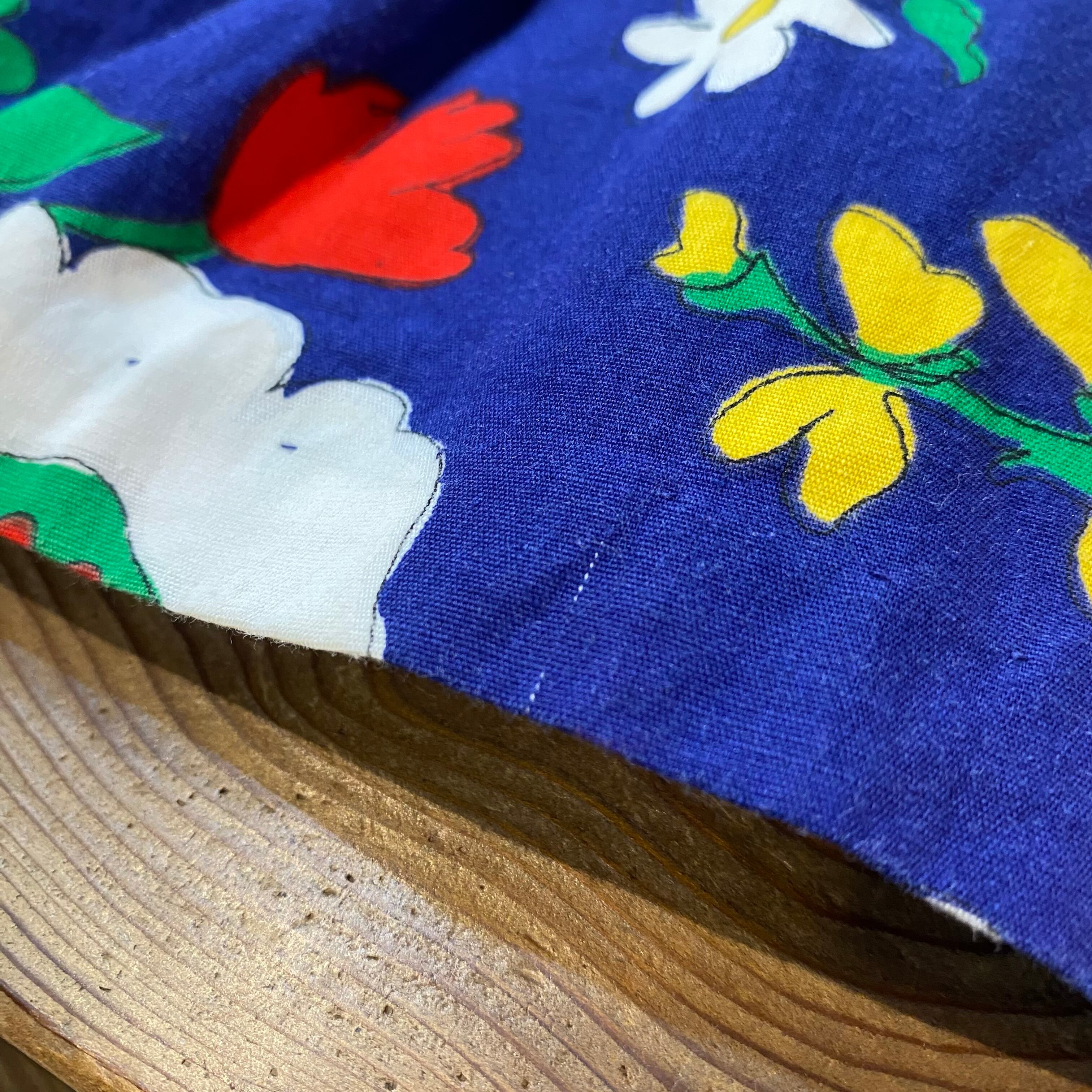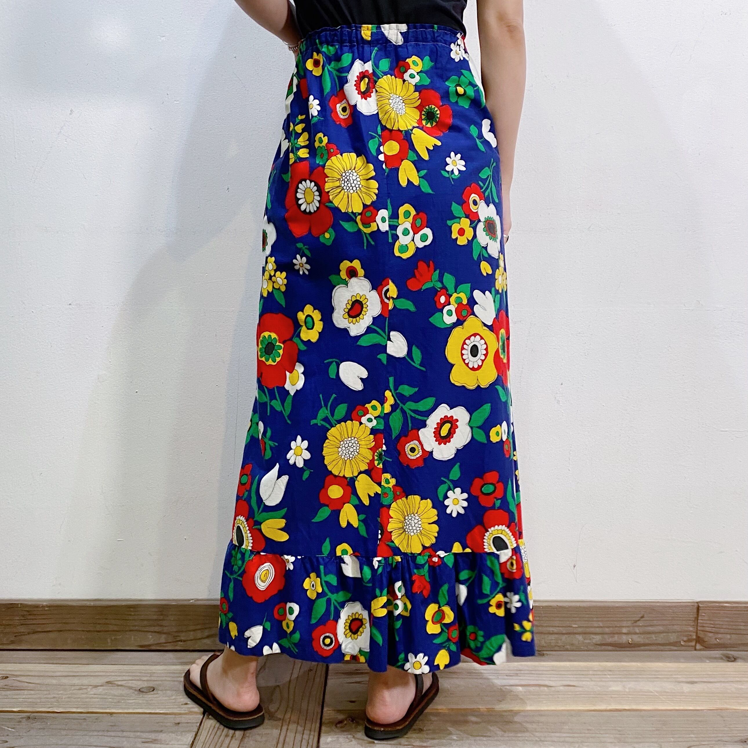 ブルーベースに赤や黄色の花柄が可愛い、70年代のスカートです。
