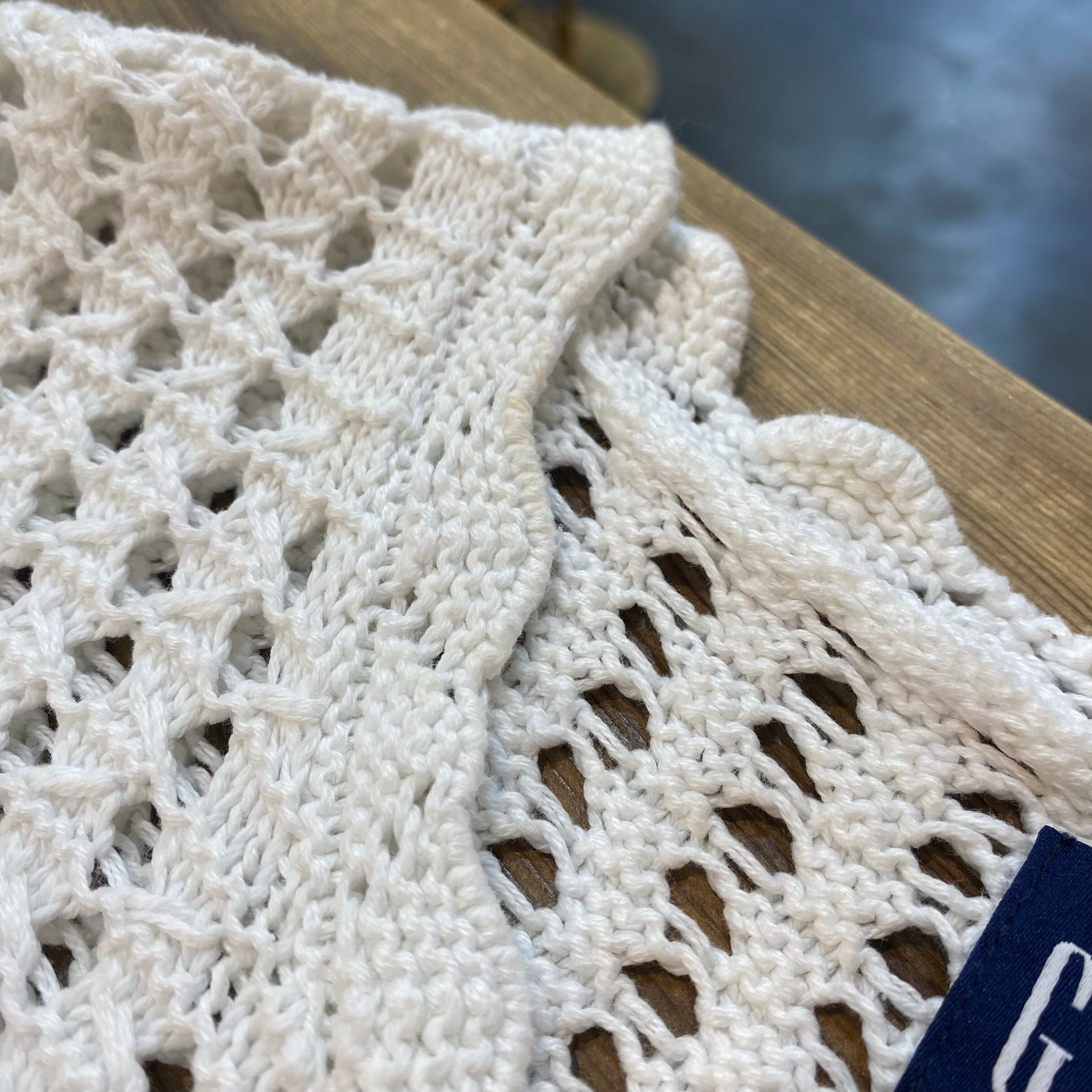 白で使い勝手の良さそうな、GAPのクロシェトップスです。