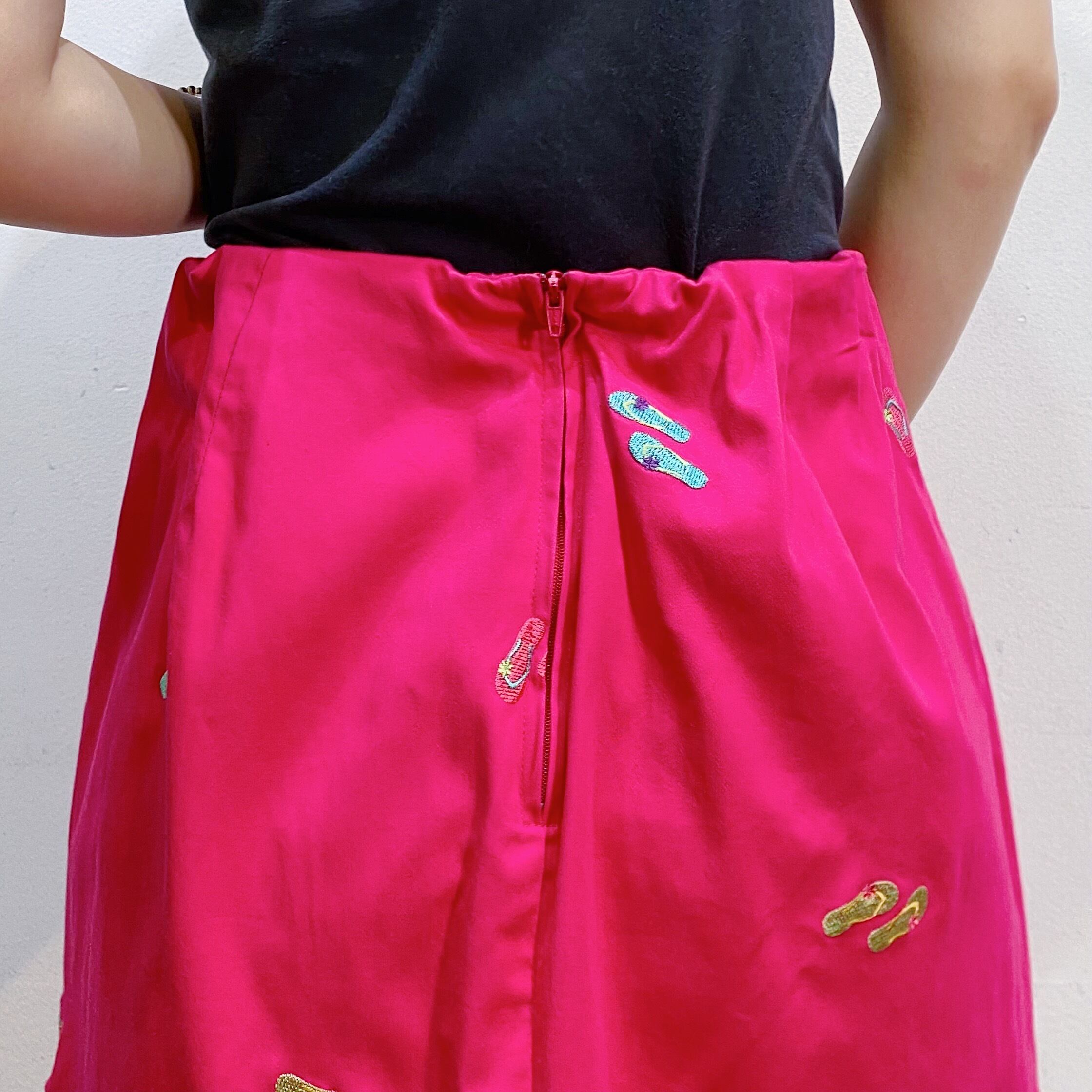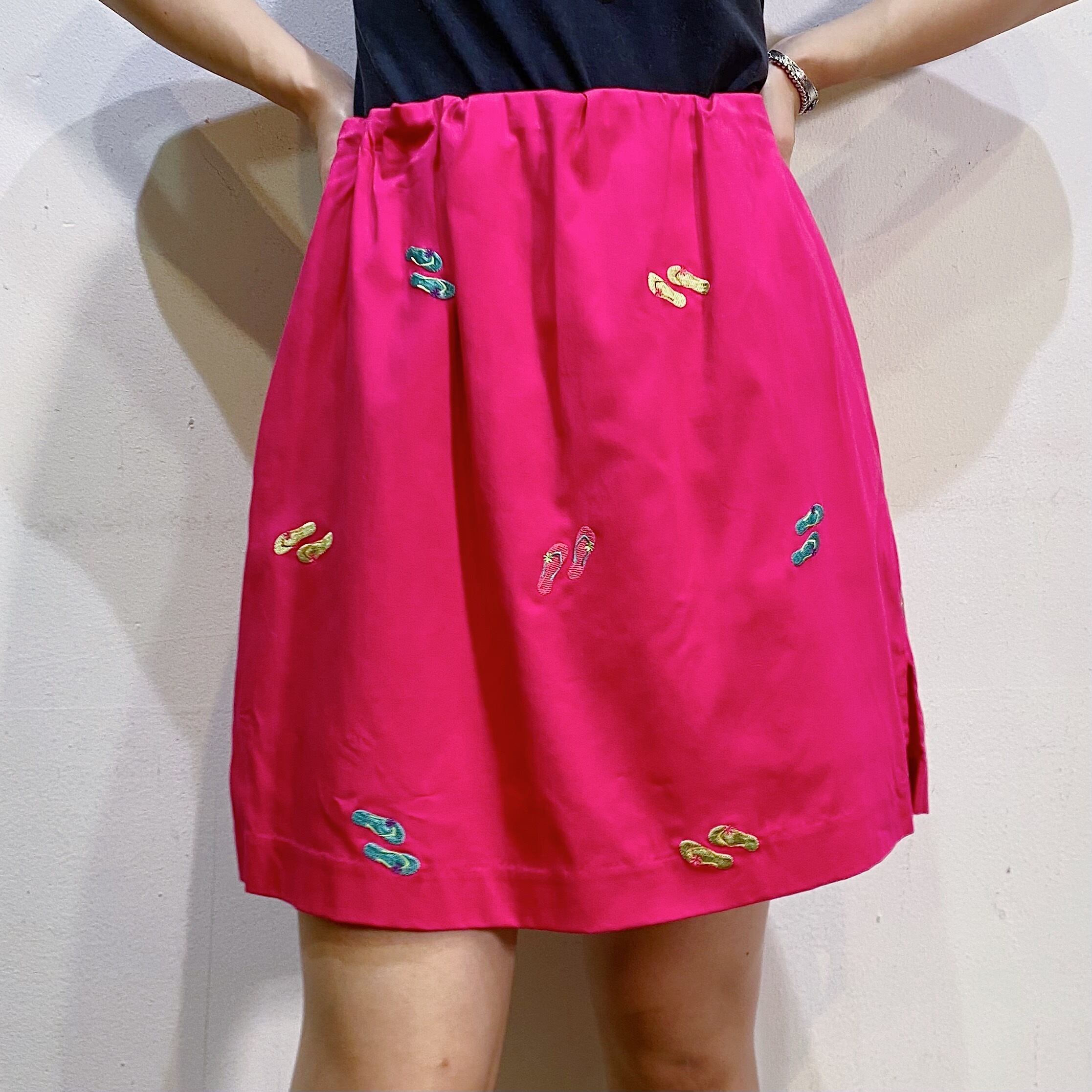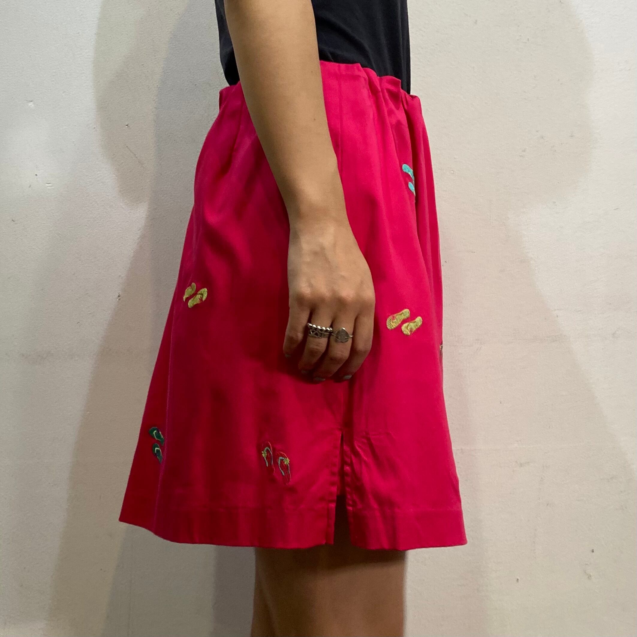 カラフルなビーチサンダルの刺繍がユニークで可愛い、キュロットです。