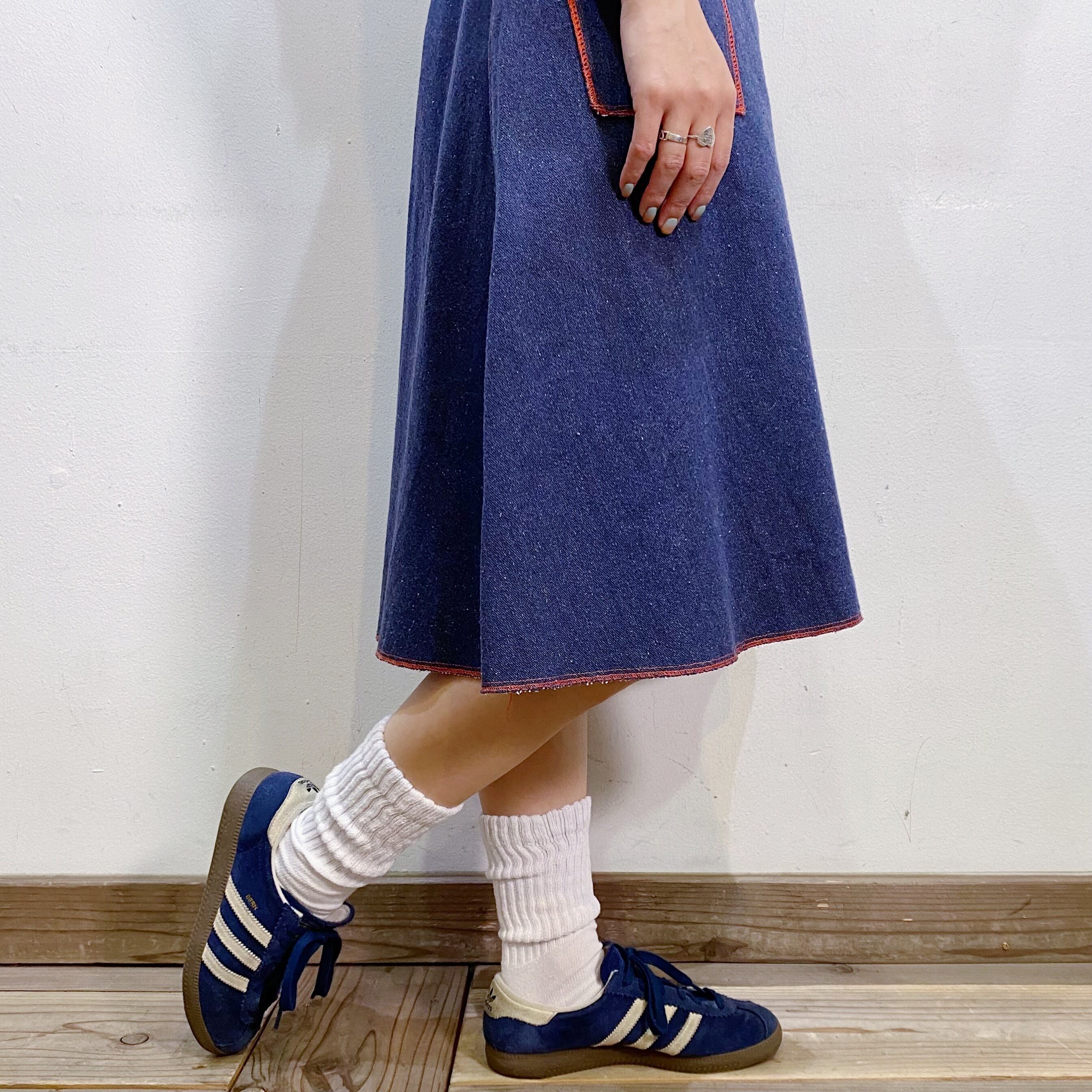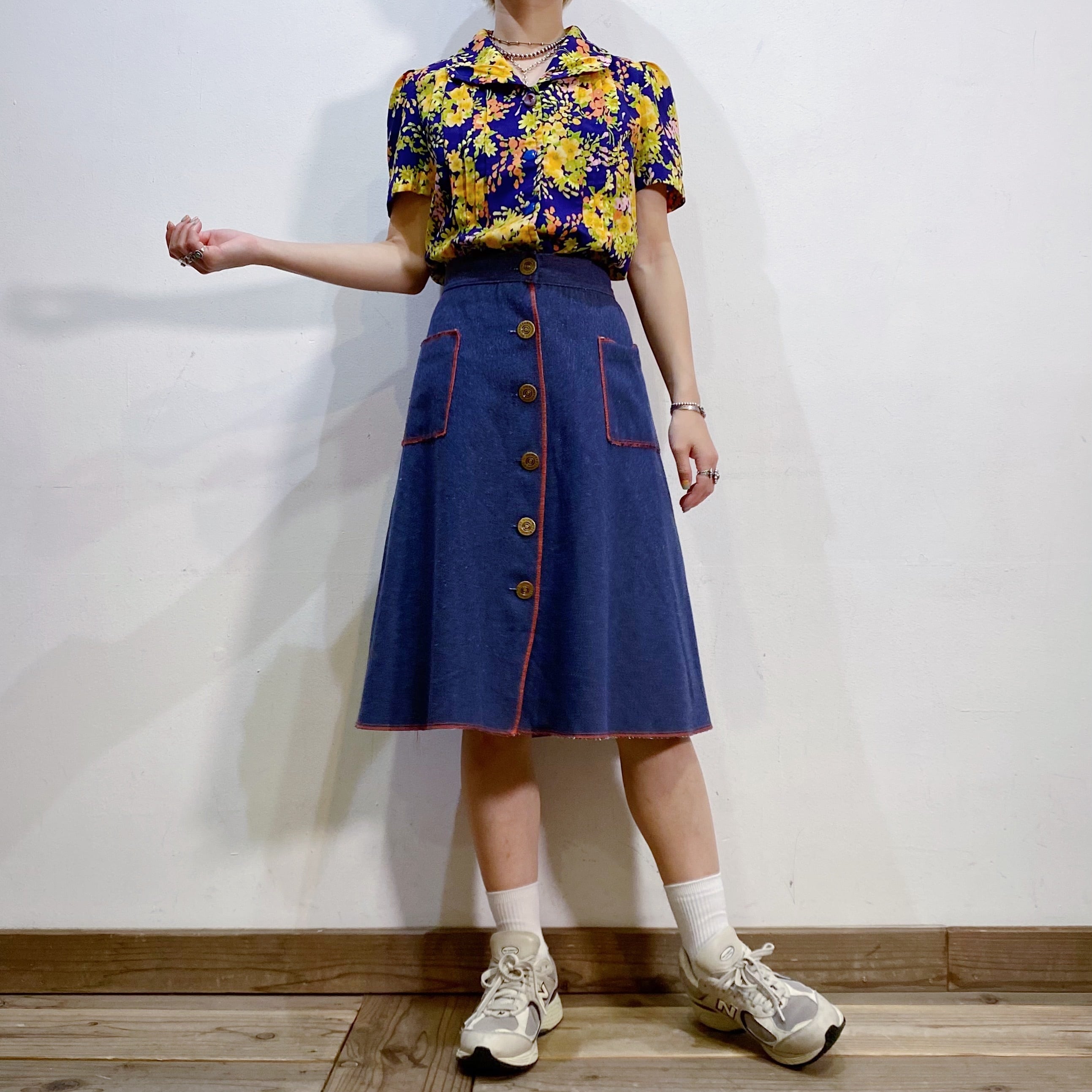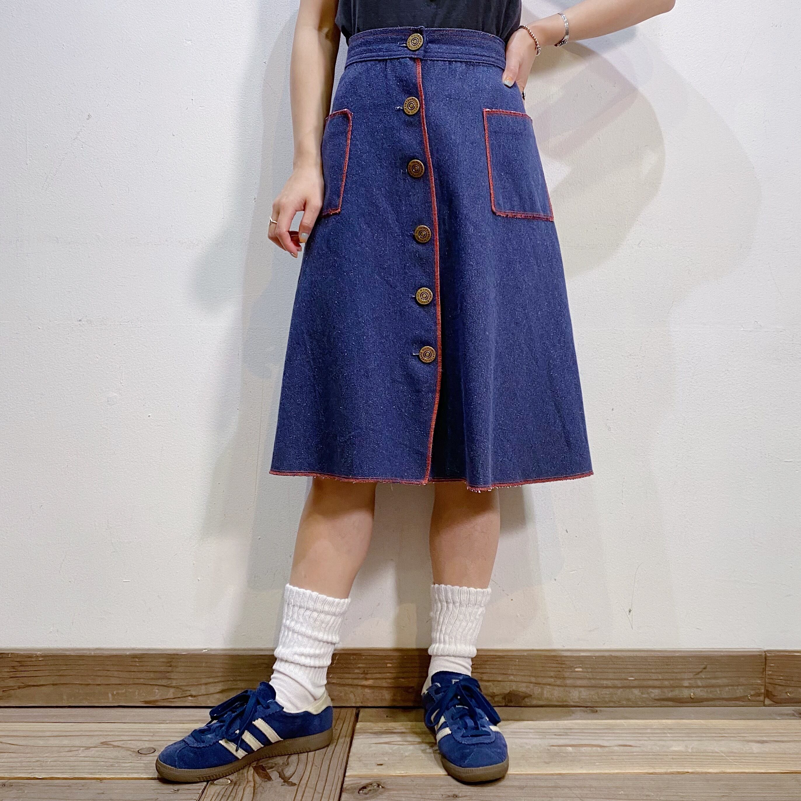 赤のステッチが映えて可愛い80年代頃のデニムスカートです。
