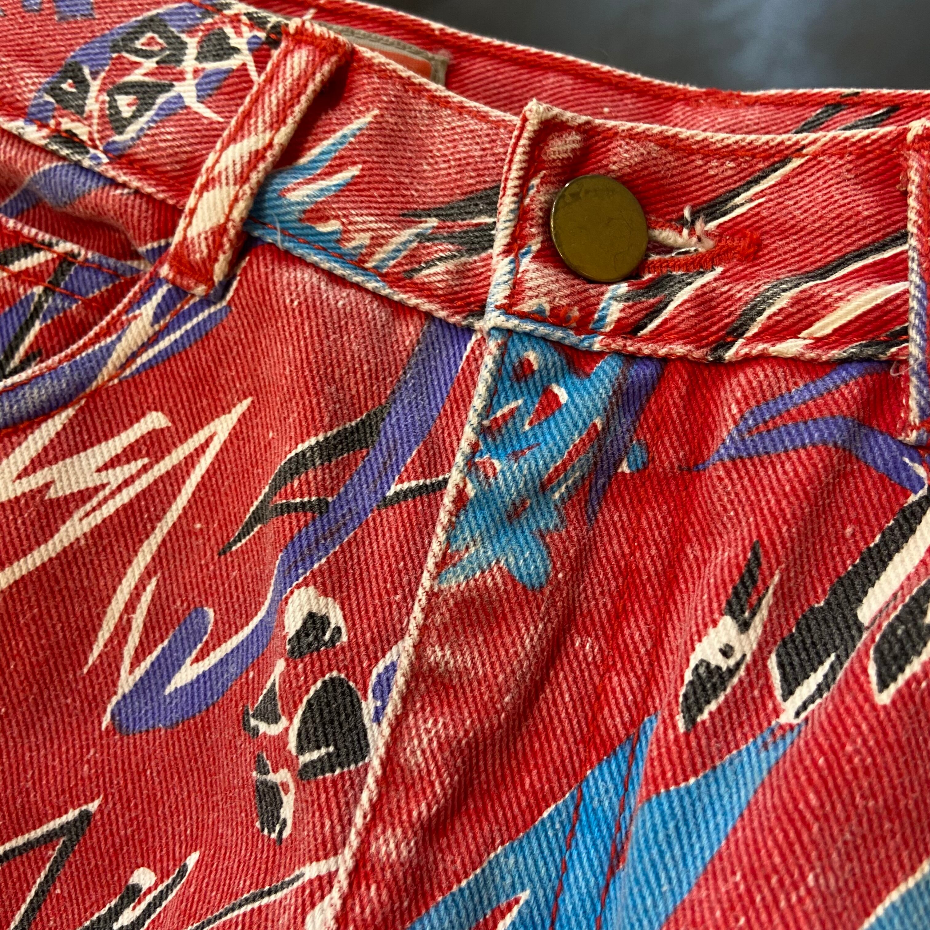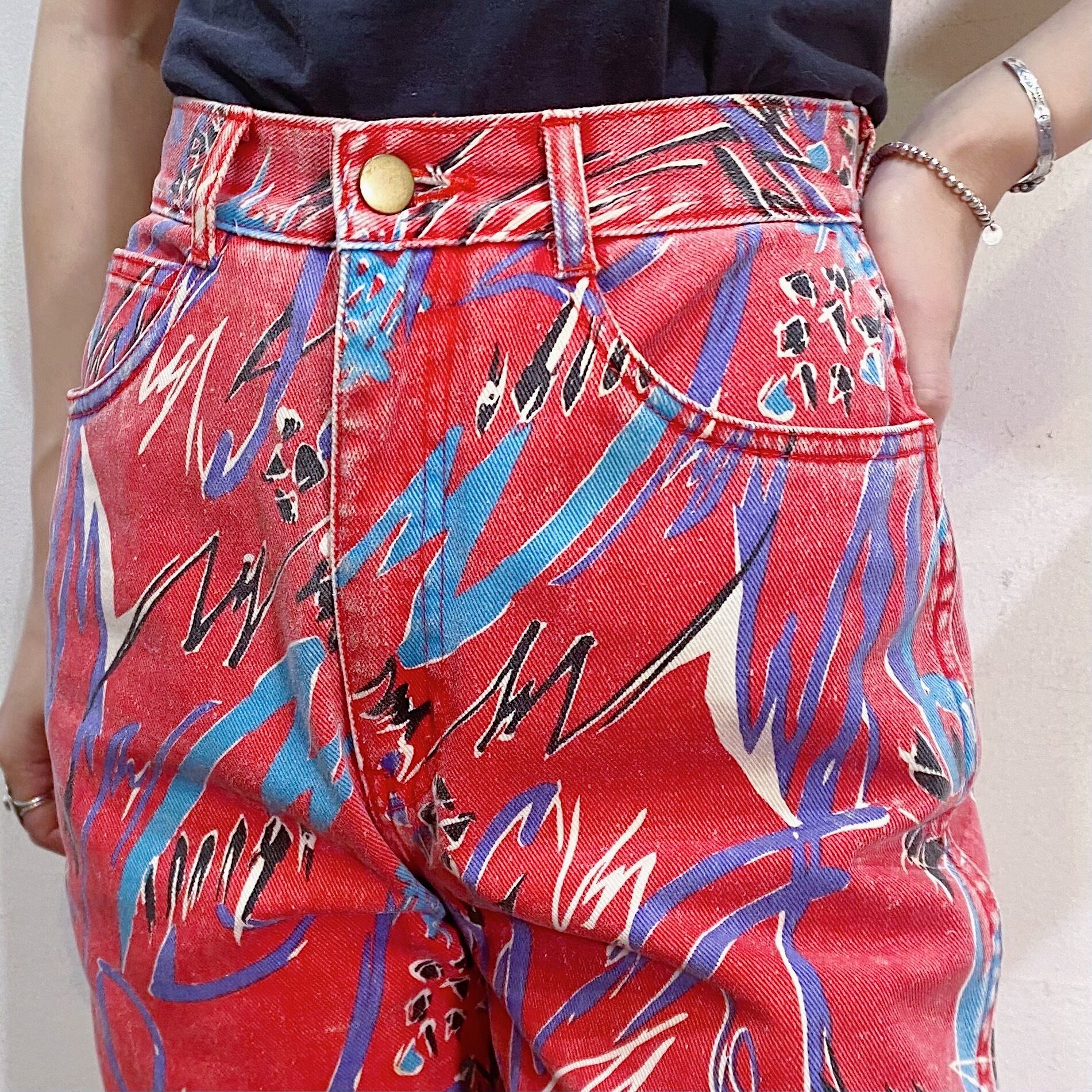 80sらしいアートなテキスタイルが可愛いデニムパンツです。