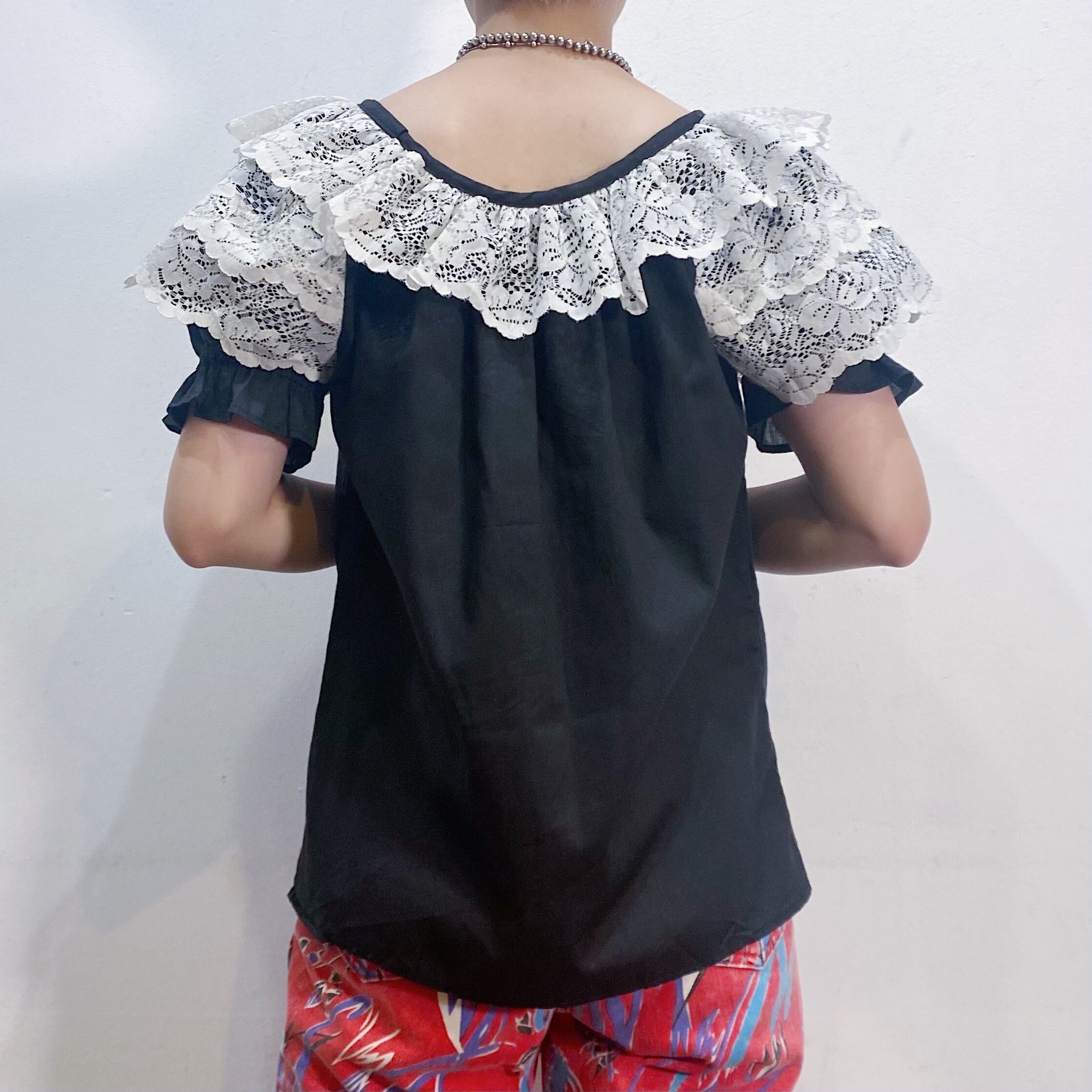 ふりふりとした白いレースデザインがとっても可愛い、80年代のチュニックトップです。