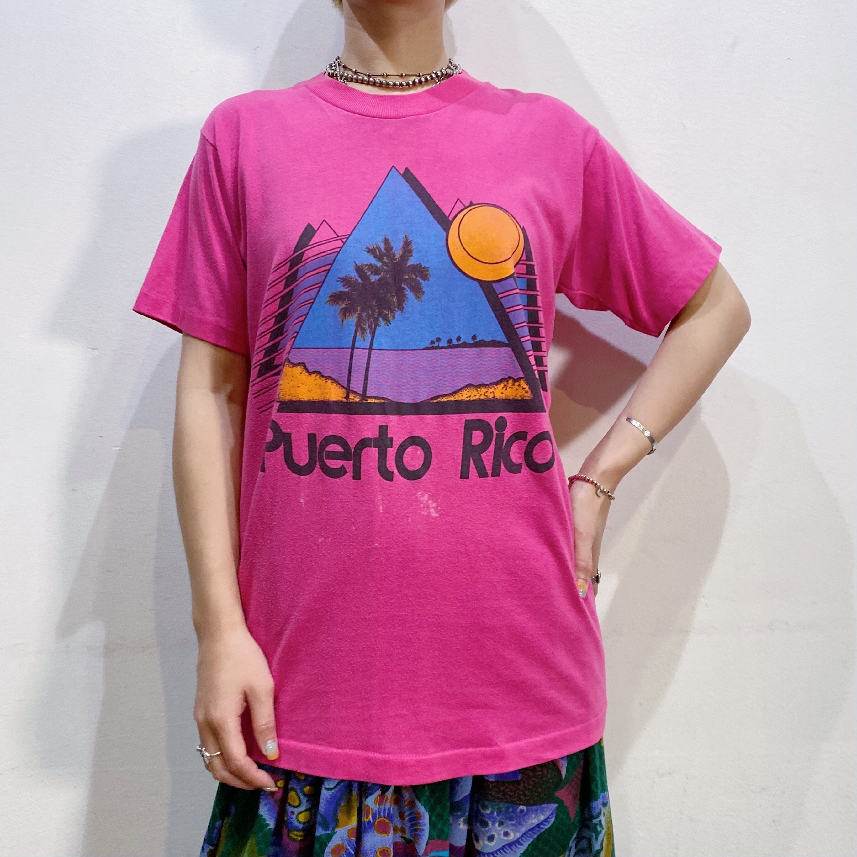 プエルトリコの風景が描かれた80年代のスーベニアTシャツです。