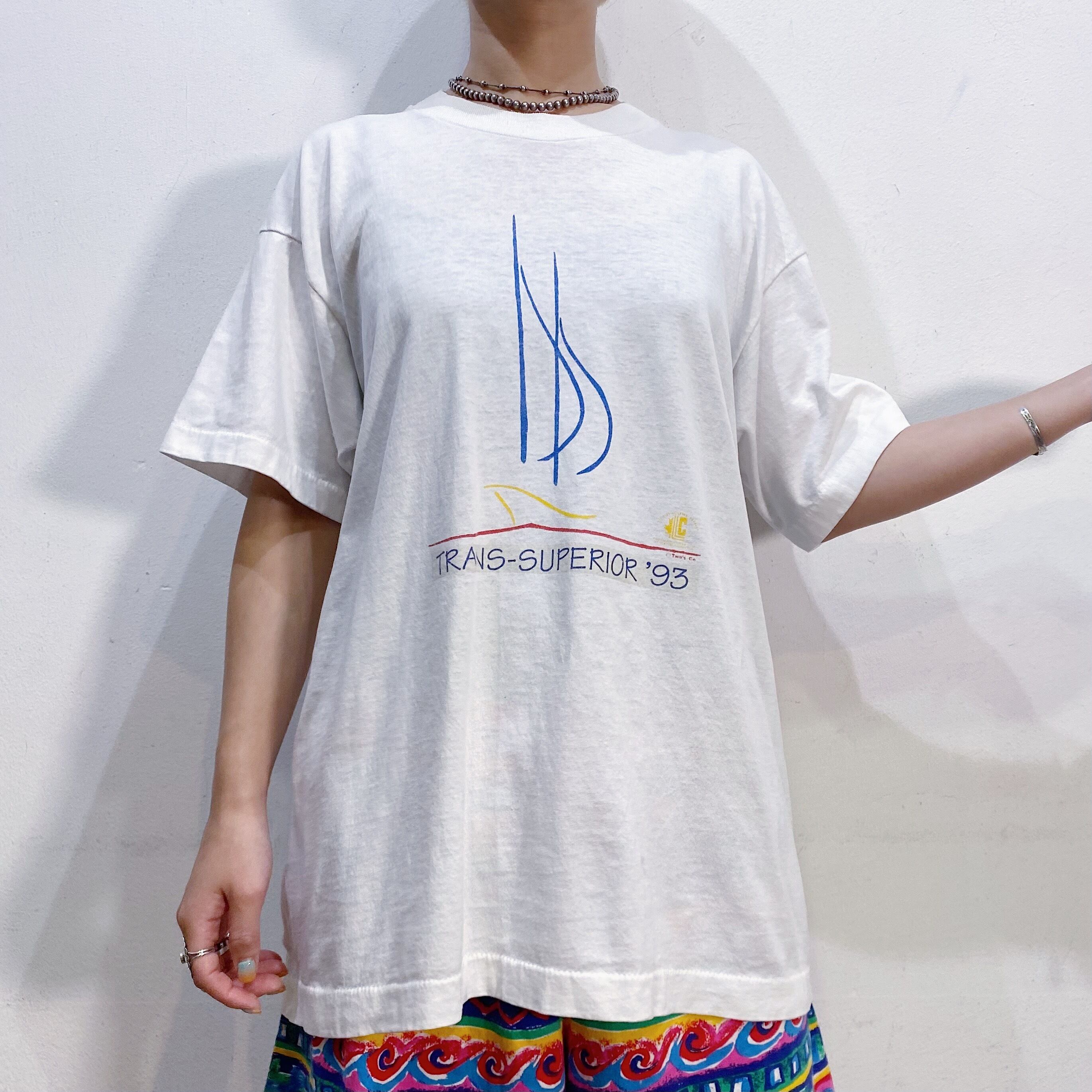 恐らくヨットであろうゆるいタッチのイラストが可愛い、90年代のTシャツです。