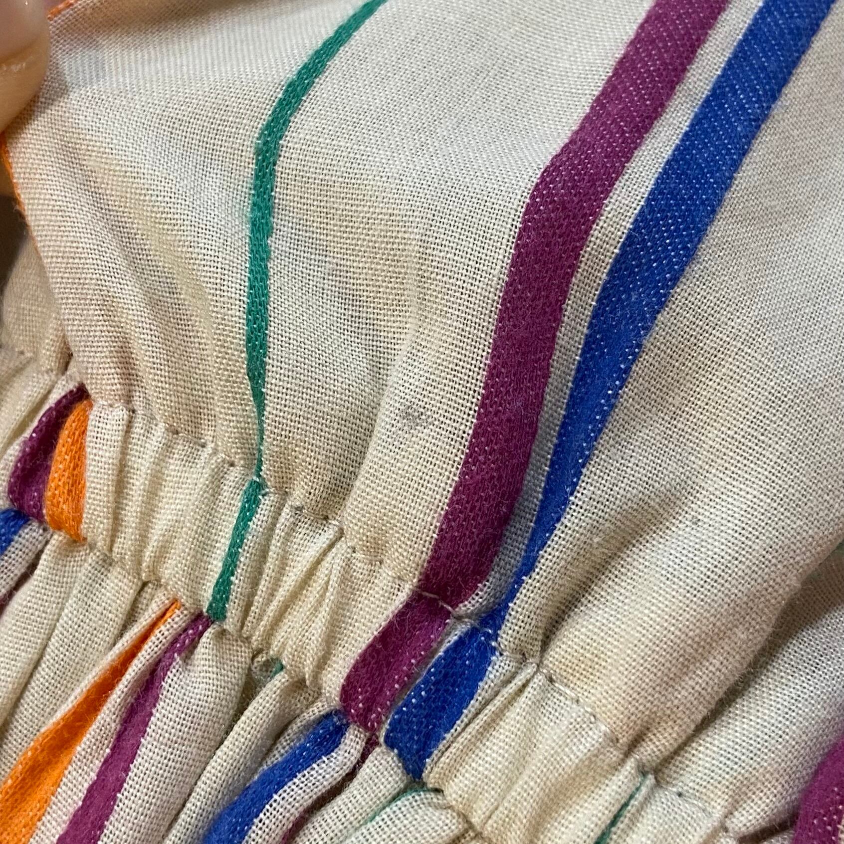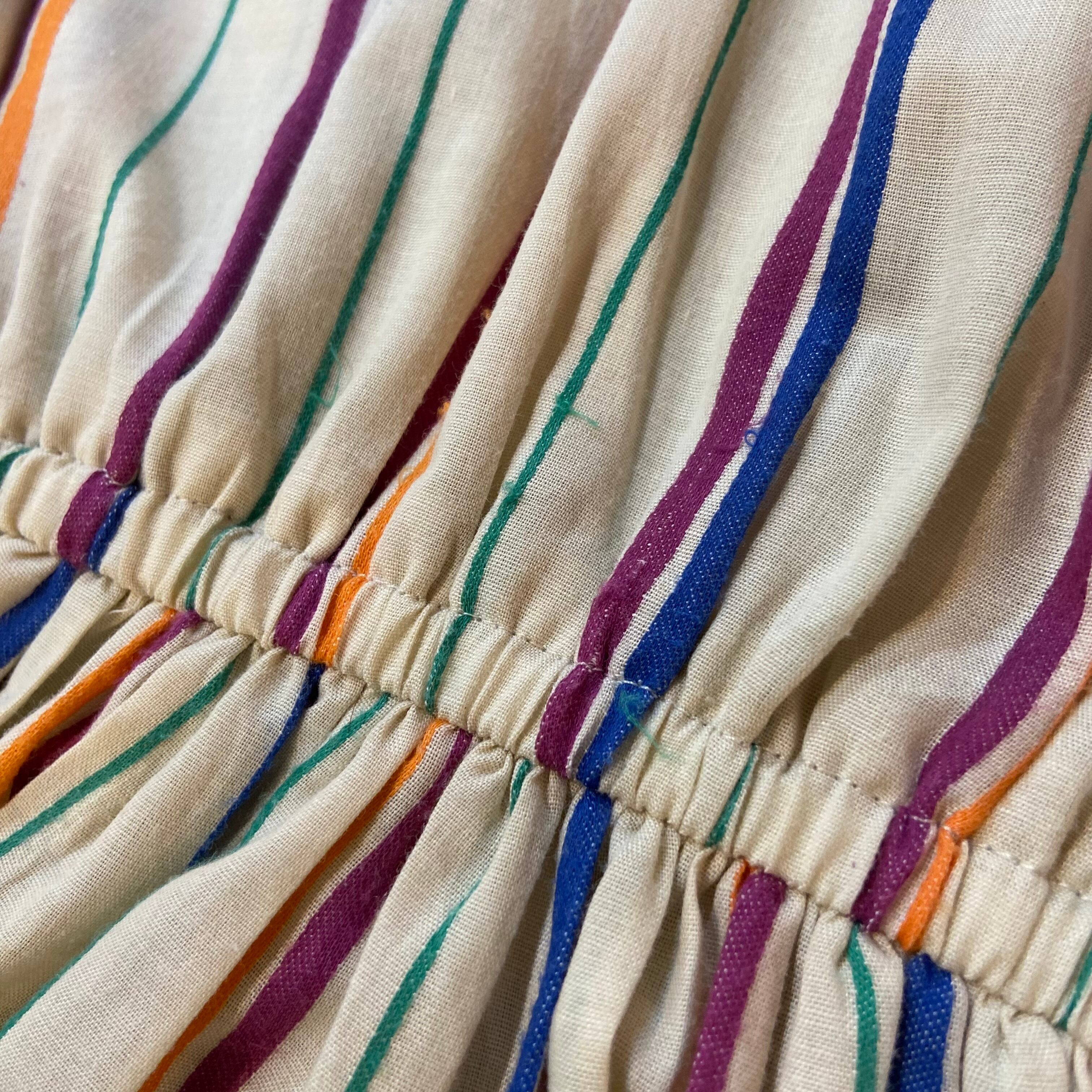 ベージュカラーにマルチストライプカラーが可愛い、80年代のシャツワンピースです。