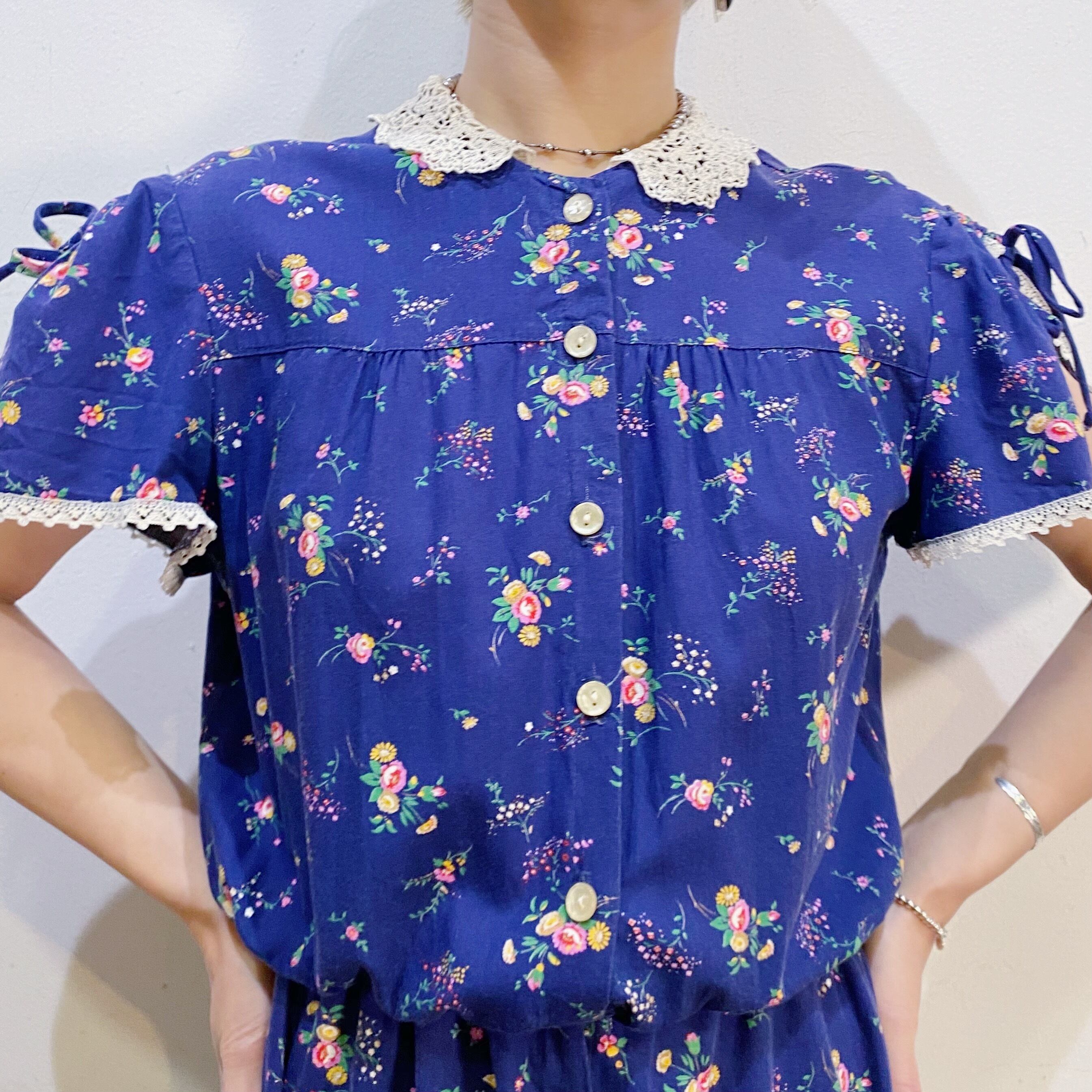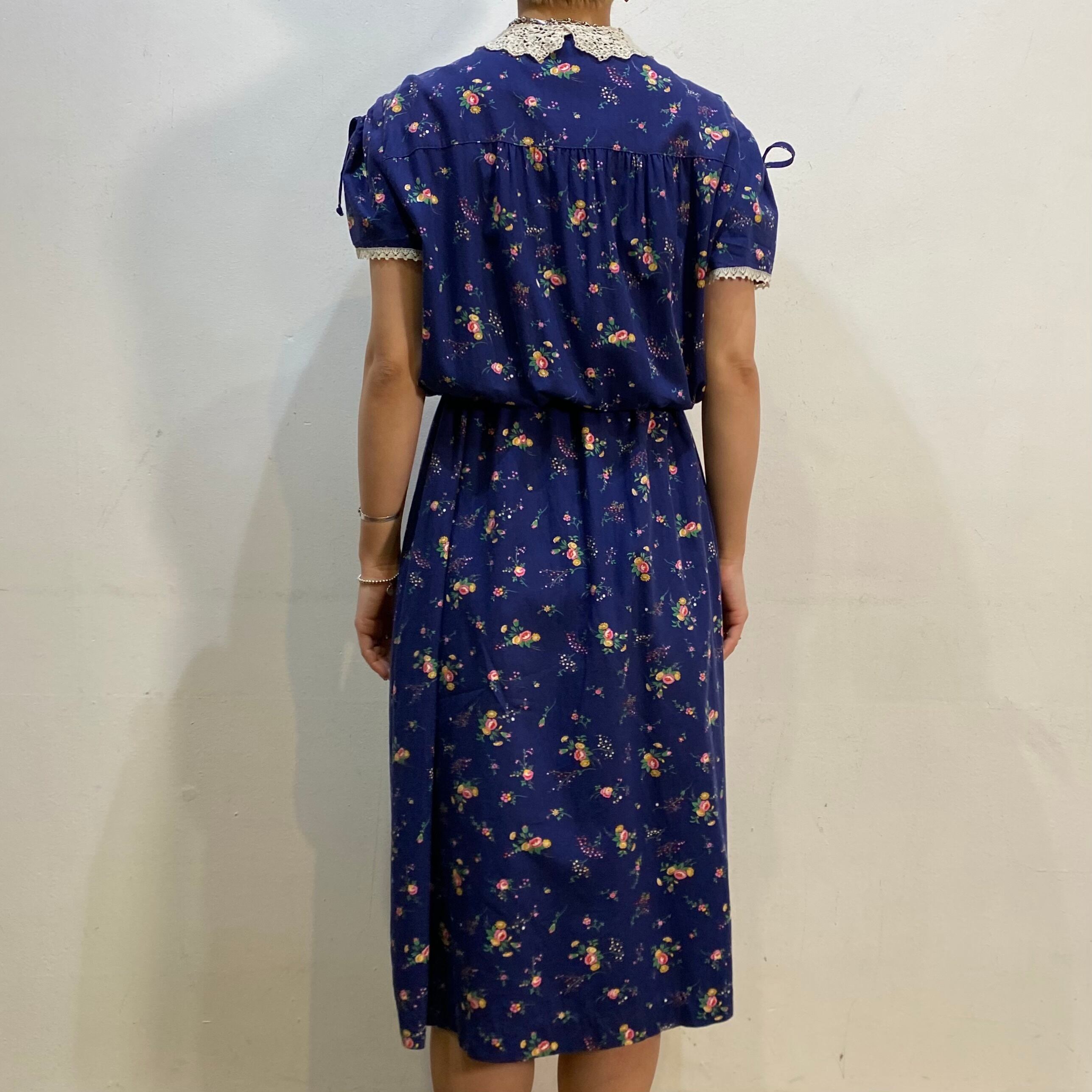お袖のデザインとクロシェレースの襟がとっても可愛い、70年代のワンピースです。