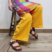 オレンジとイエローの中間のような絶妙な色合いが可愛い、70年代のパンツです。
