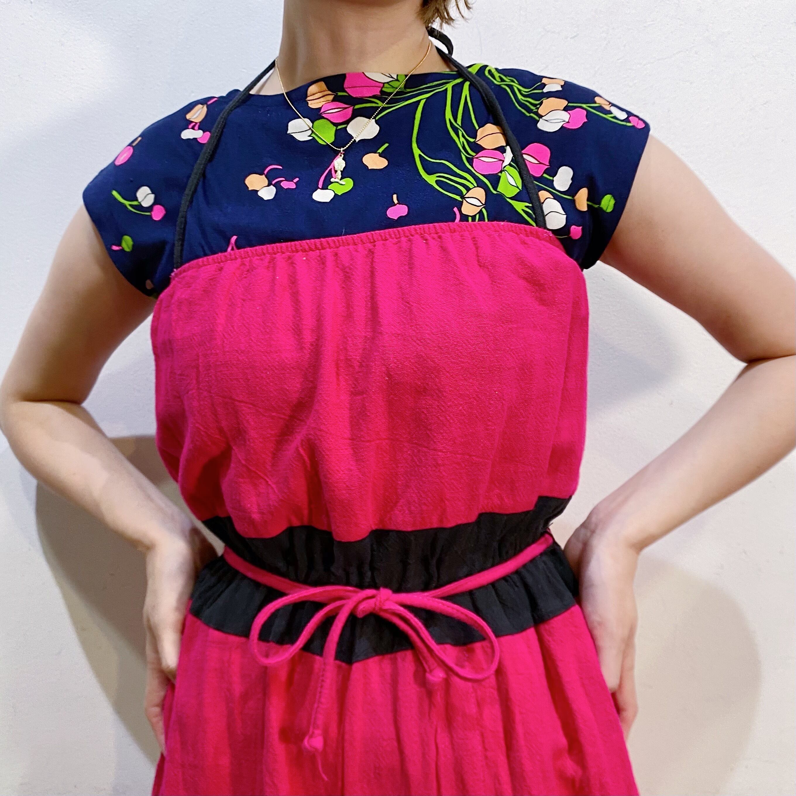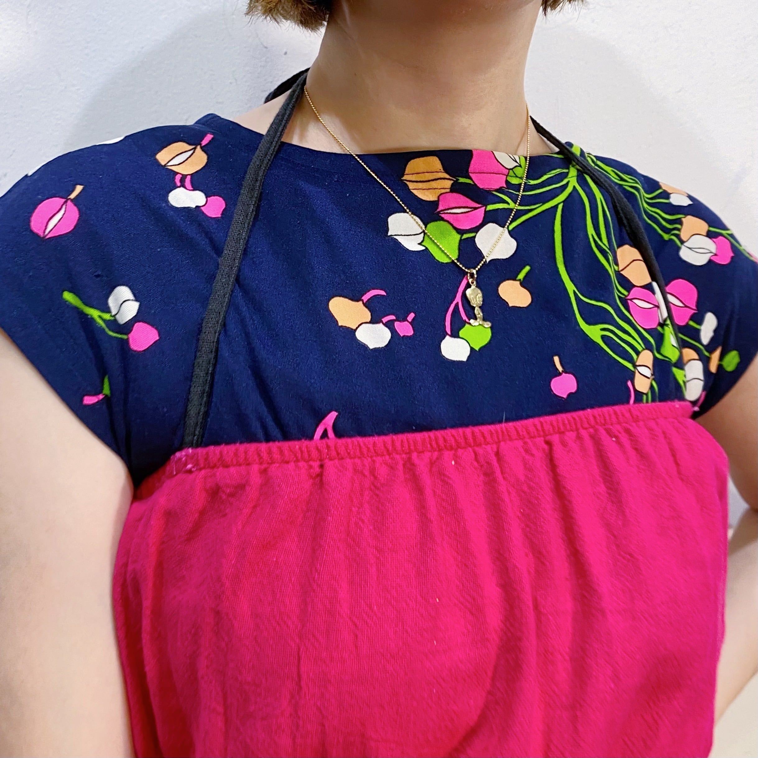 胸上とウエストにはゴムが入っており、楽ちんに着ていただけますよ。