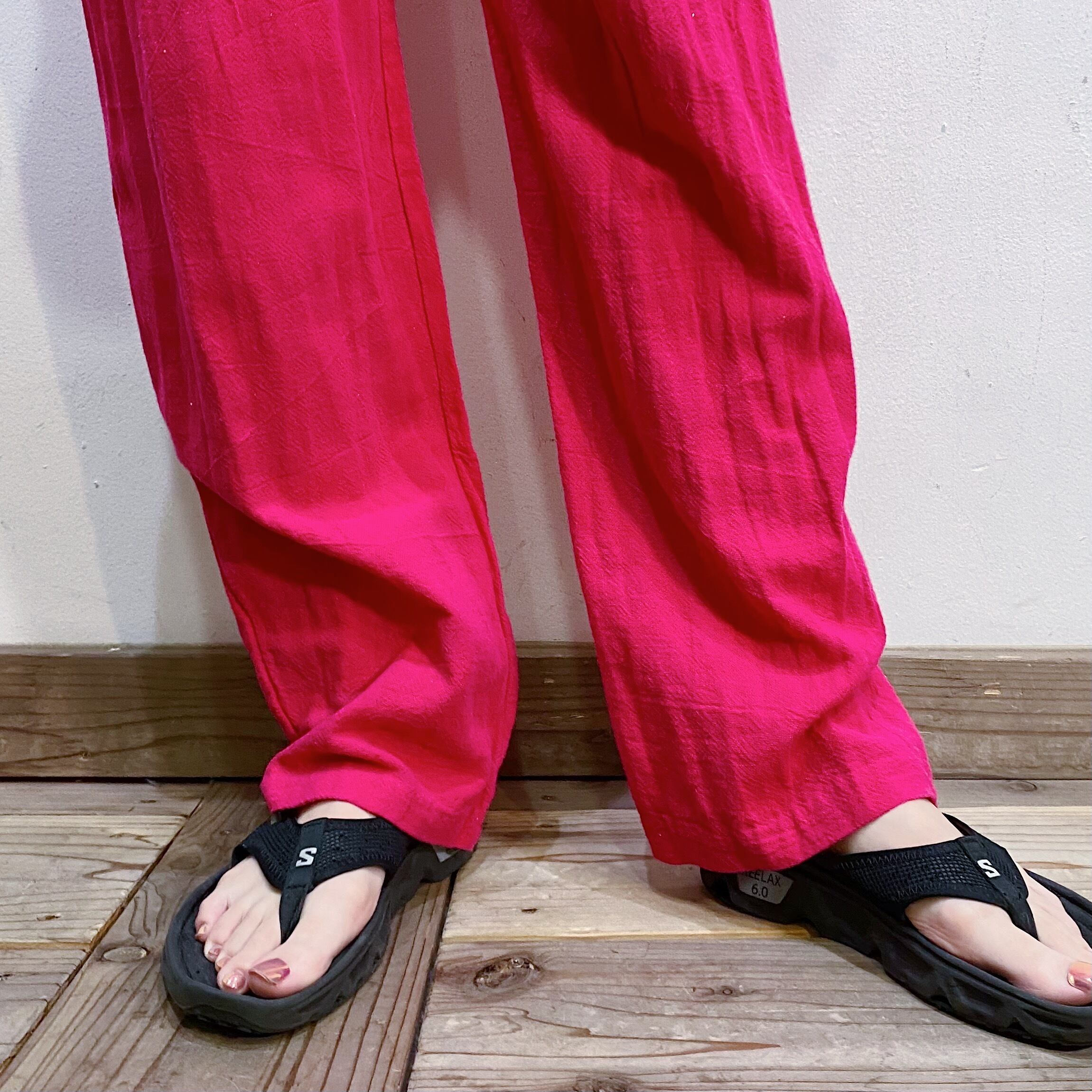 ピンクとブラックのバイカラーが可愛い、ホルターネックのジャンプスーツです。