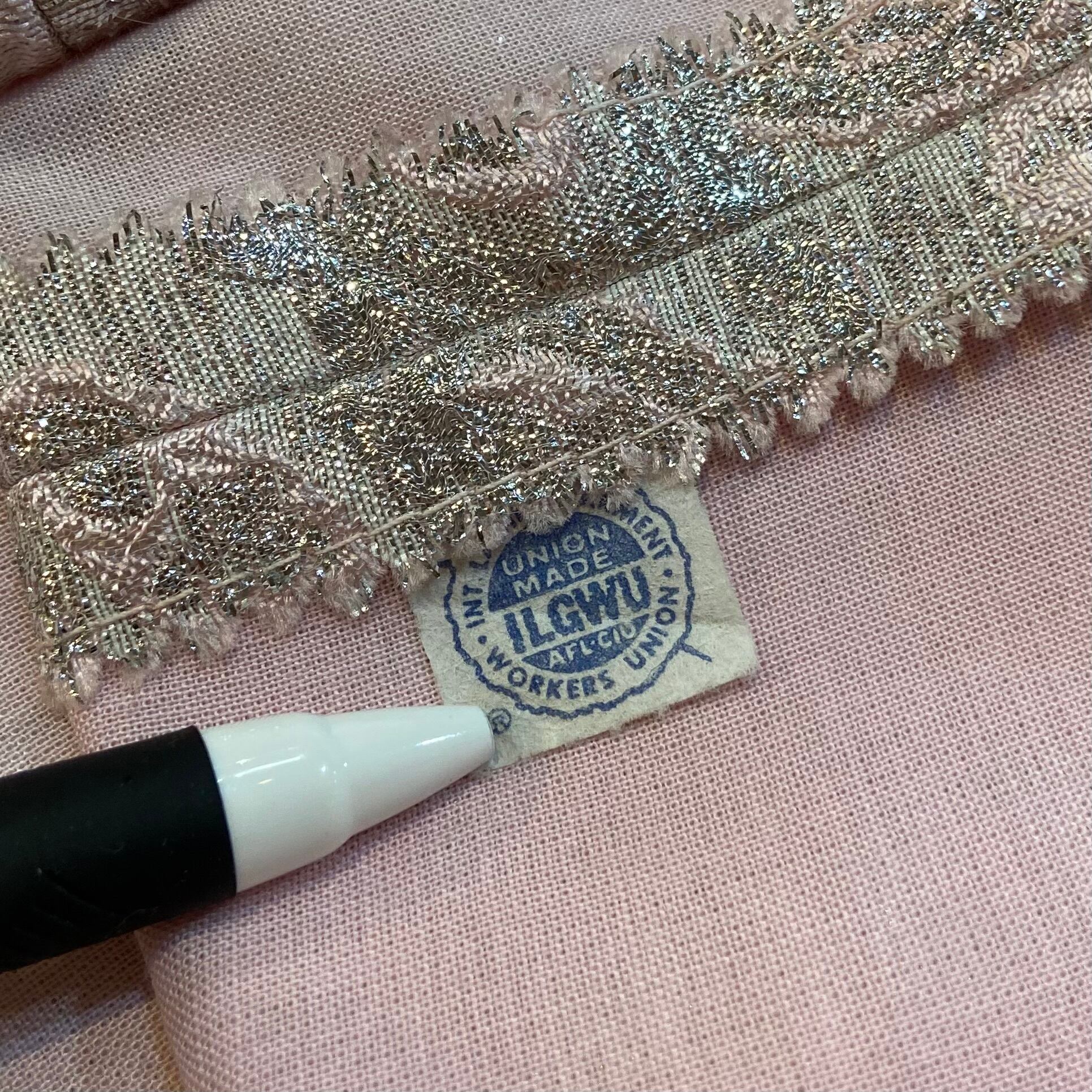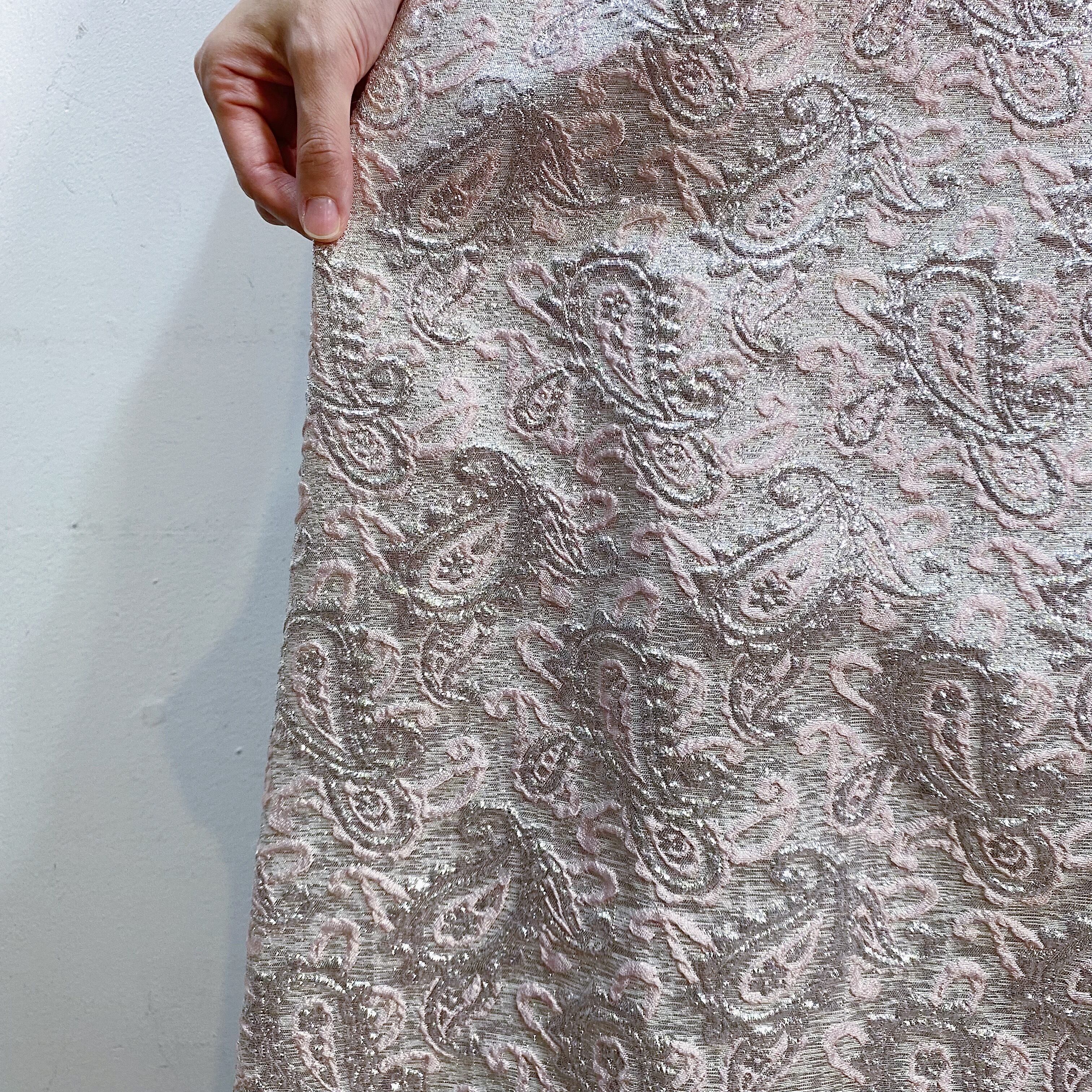 ピンクとシルバーのガーリーな色合いで可愛らしいですが、柄はペイズリーなので甘くなりすぎずに着れそう。