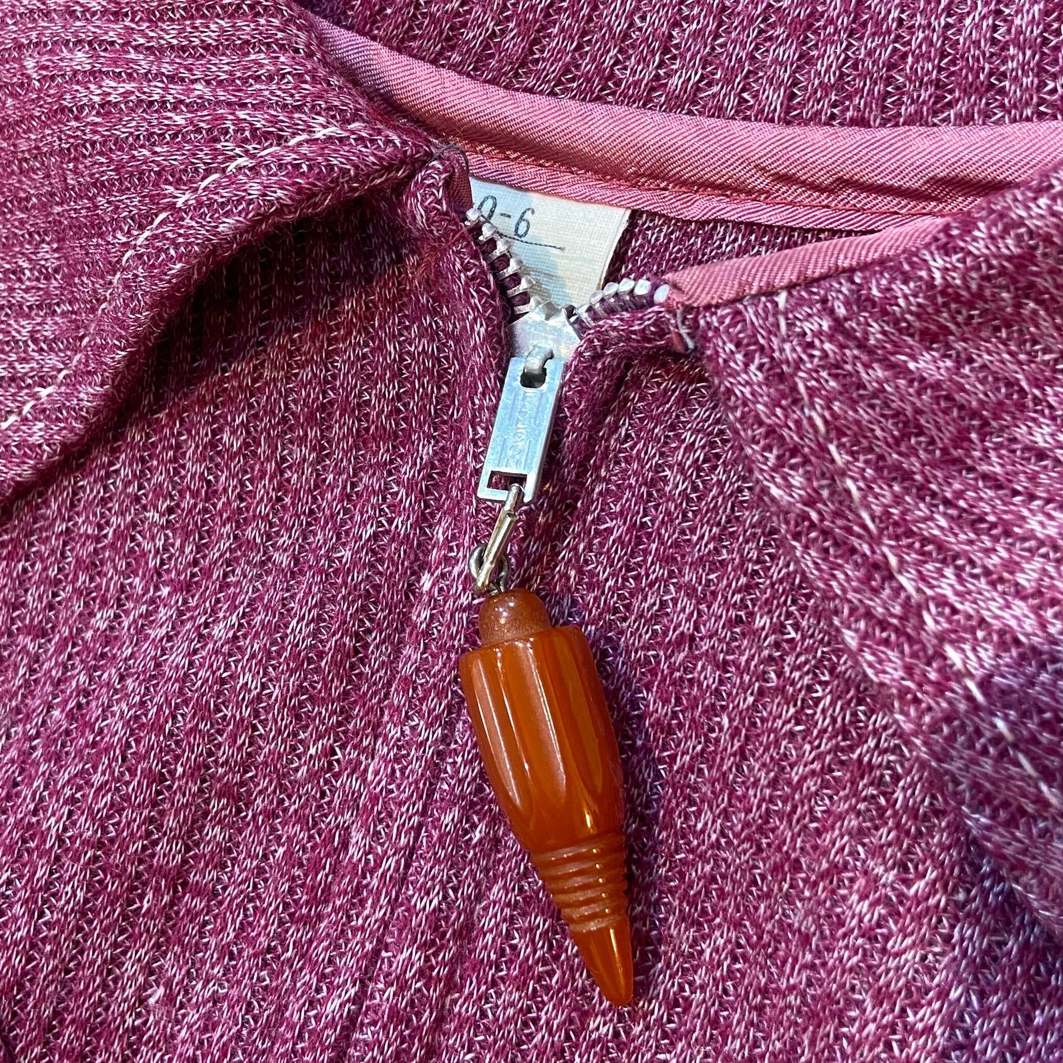 ジップの持ち手にはオールドプラスチックが付いており、ヴィンテージの雰囲気のある一枚。